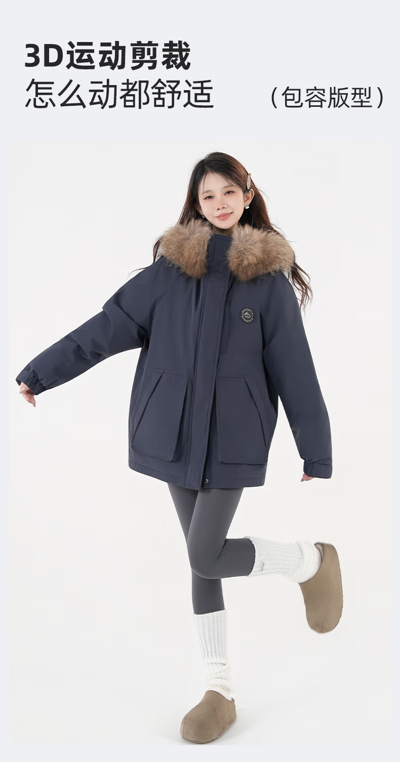 雪中飞25新款羽绒服秋冬工装派克服冬季宽松加厚大毛领外套35330 深蓝色 L 170/92A 130-150斤