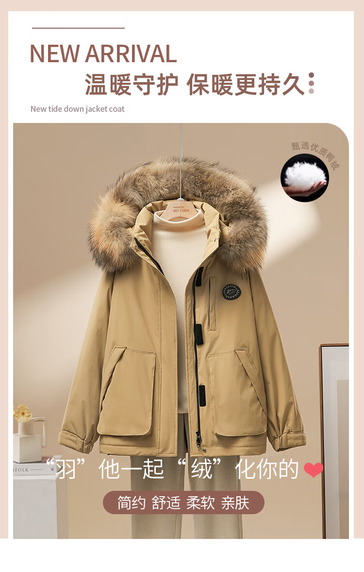 古迪企鹅【时尚简约】可拆卸帽短款保暖羽绒服百搭甄选高品质鸭绒通勤日常 樱花粉 XL (170)