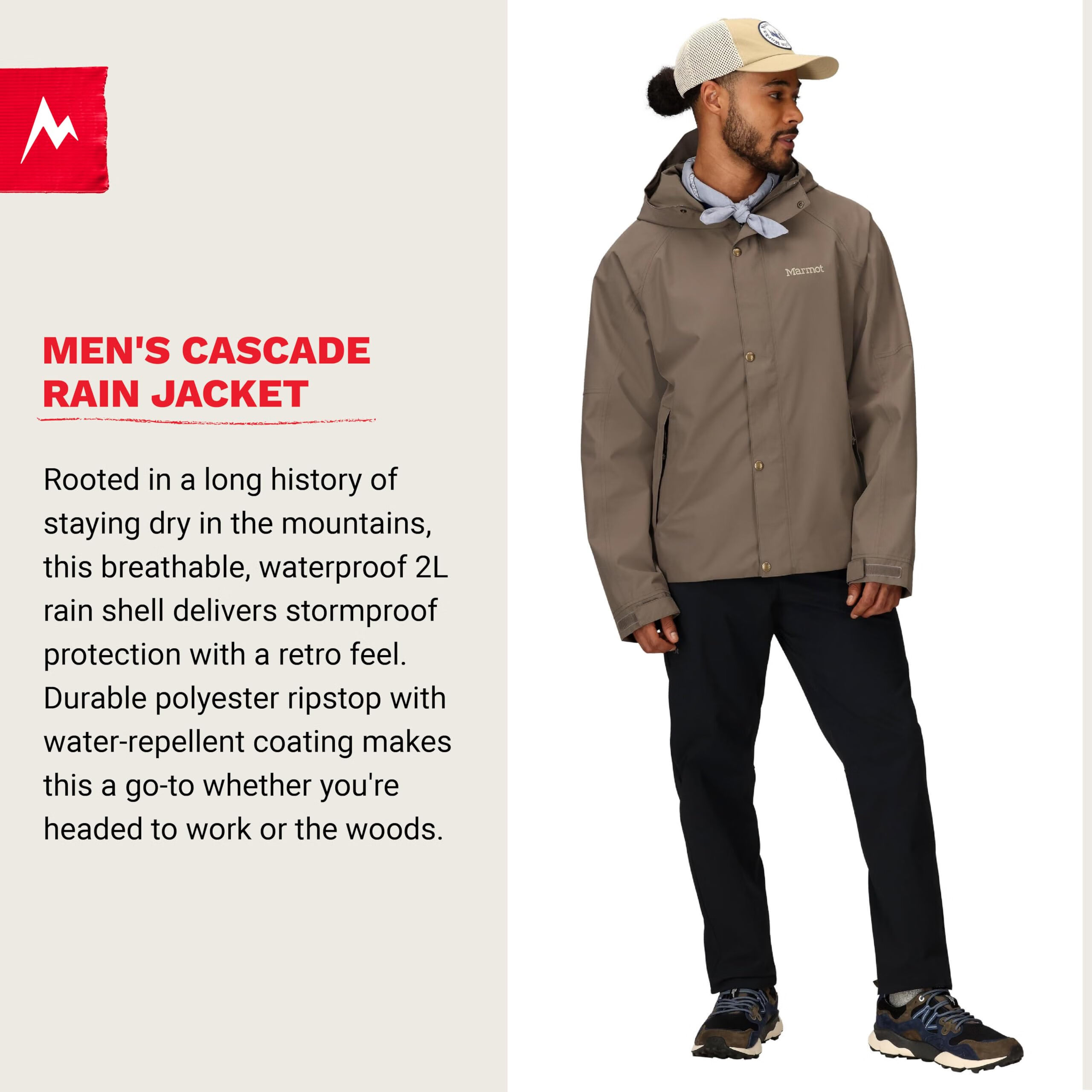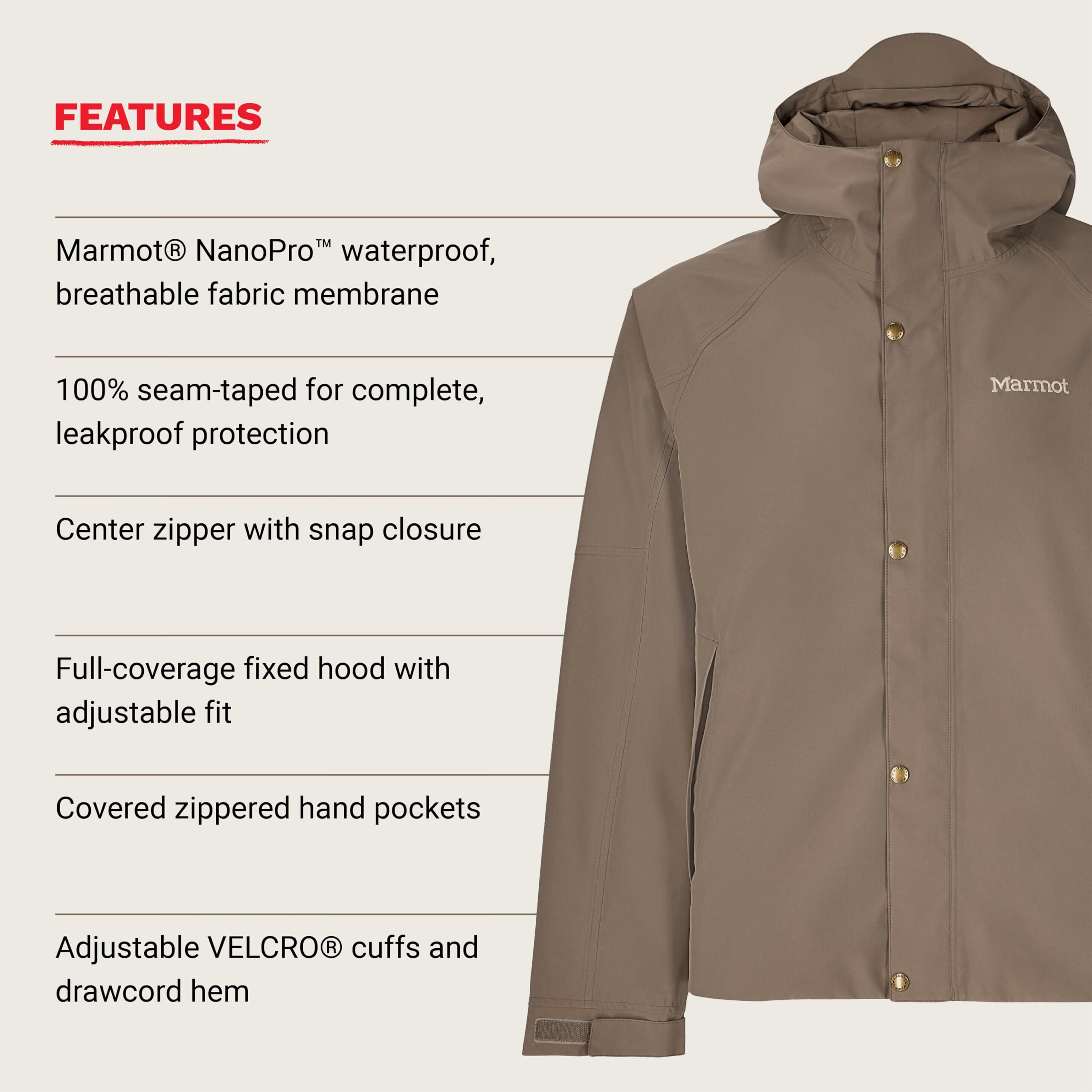 土拨鼠MARMOT 男式层叠耐用防水防雨夹克, 粘土石, L 粘土石 L