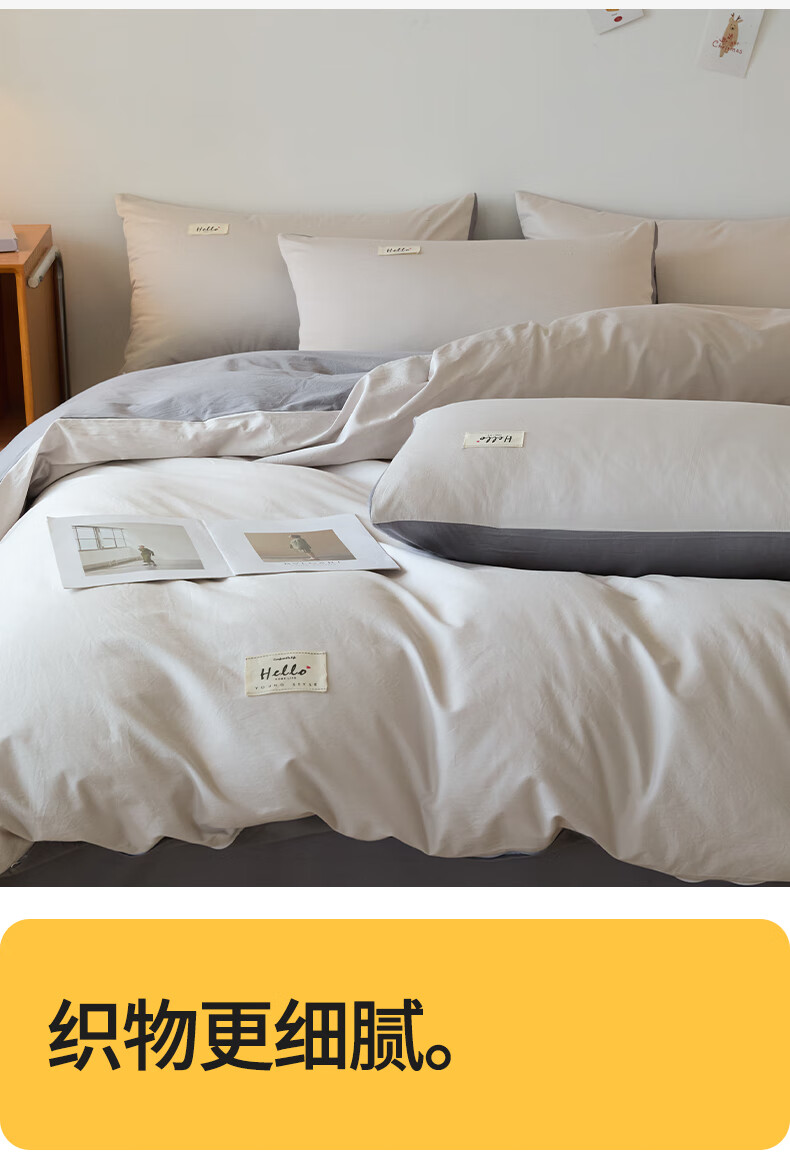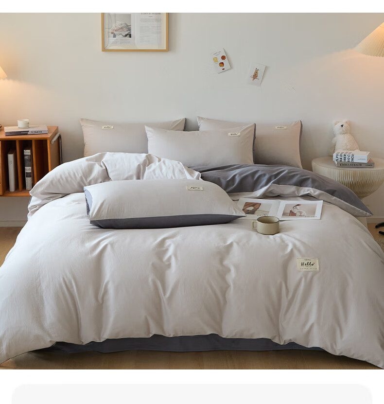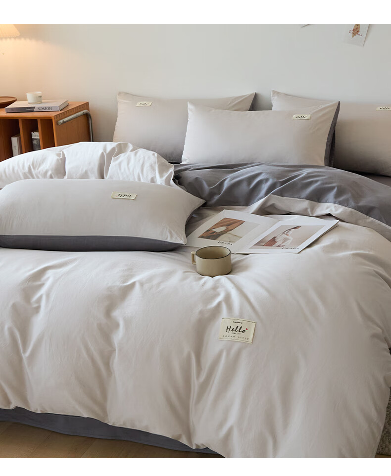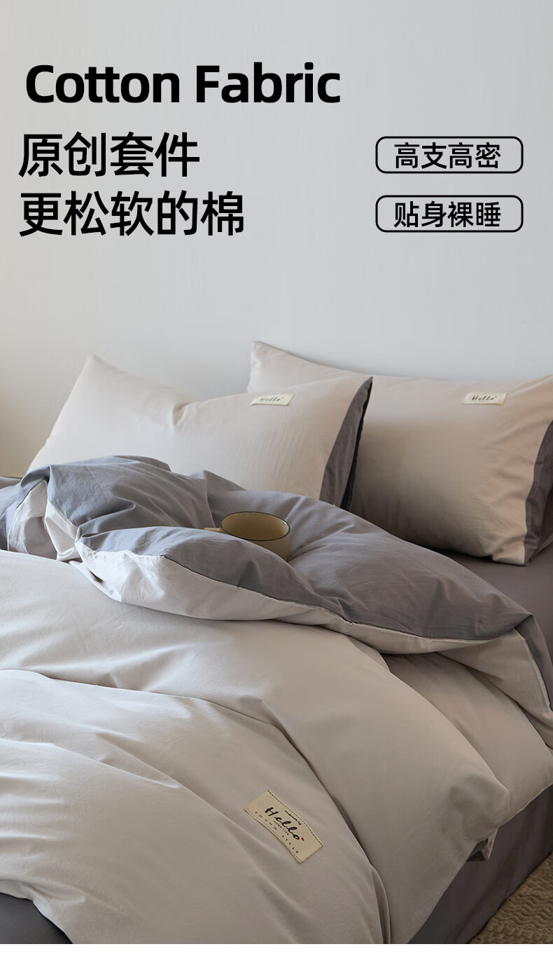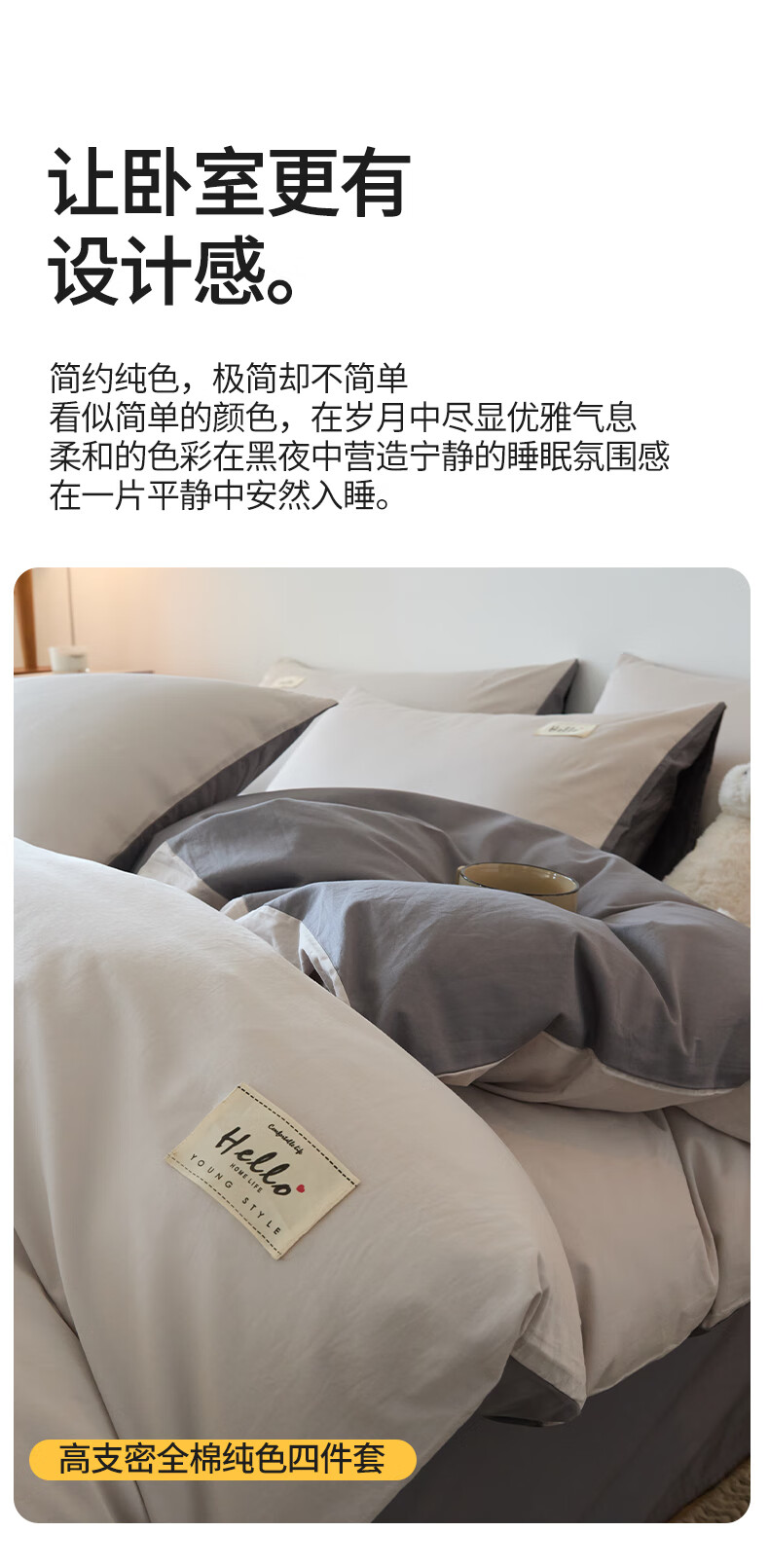 VJE床上四件套纯棉全棉2025新款床品床笠宿舍床单被罩三件套四季通用 中灰+山灰【100%全棉高支高密 亲肤透气】 四件套1.5-1.8m 床单款 -被套2*2.3m