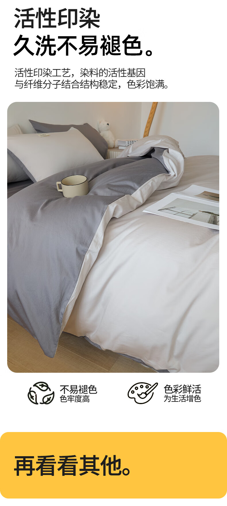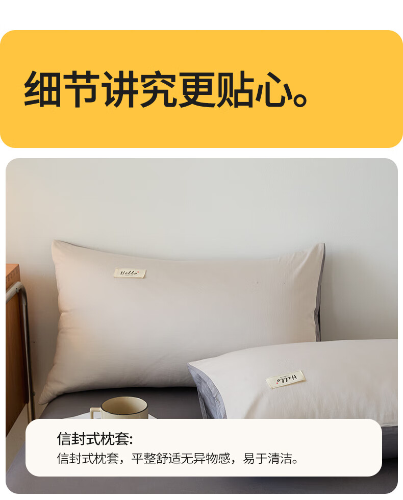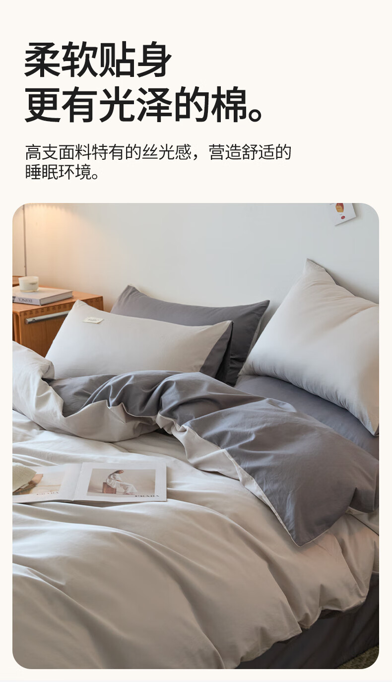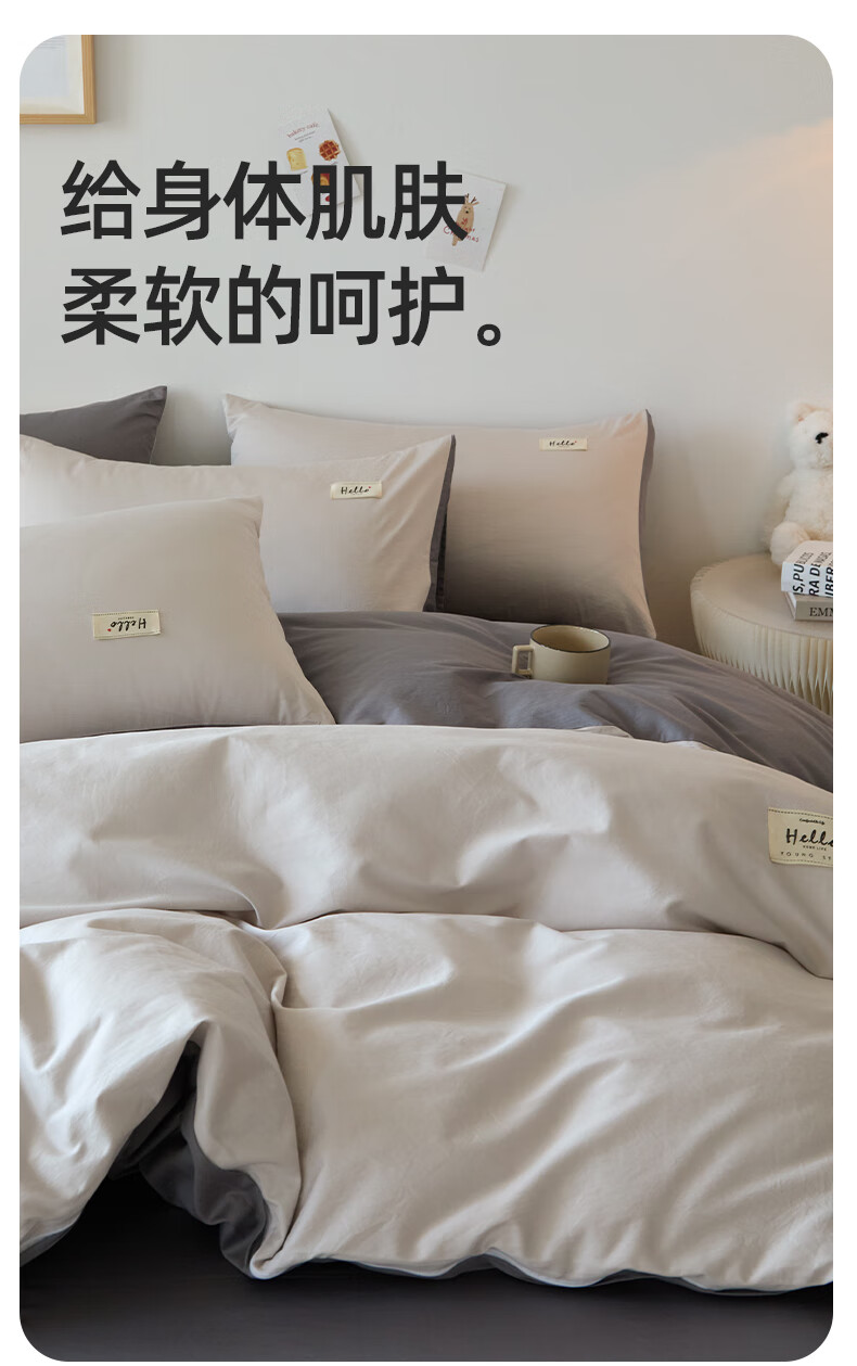 VJE床上四件套纯棉全棉2025新款床品床笠宿舍床单被罩三件套四季通用 中灰+山灰【100%全棉高支高密 亲肤透气】 四件套1.5-1.8m 床单款 -被套2*2.3m