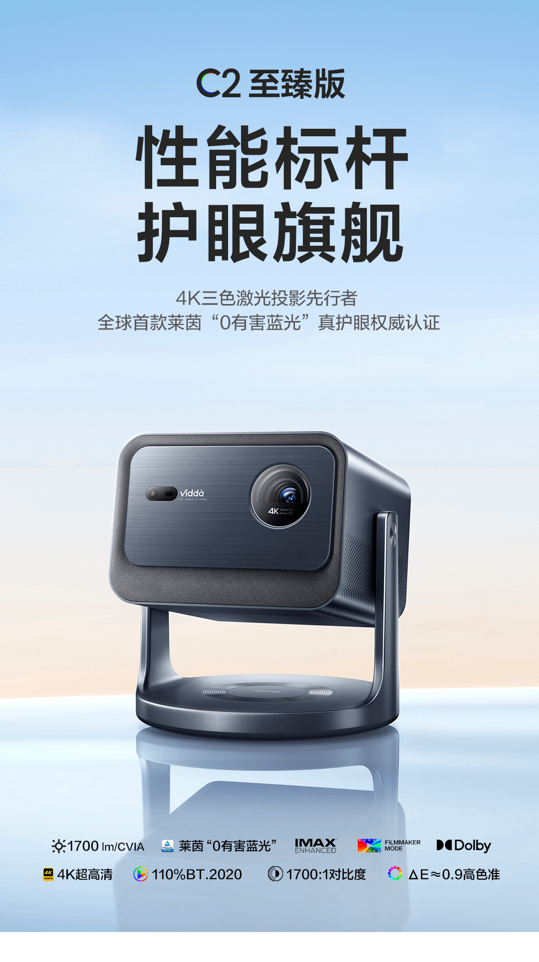 Vidda C2至臻版 海信4K超高清三色激光云台投影仪家用100吋家庭影院电视(莱茵0有害蓝光)国家补贴