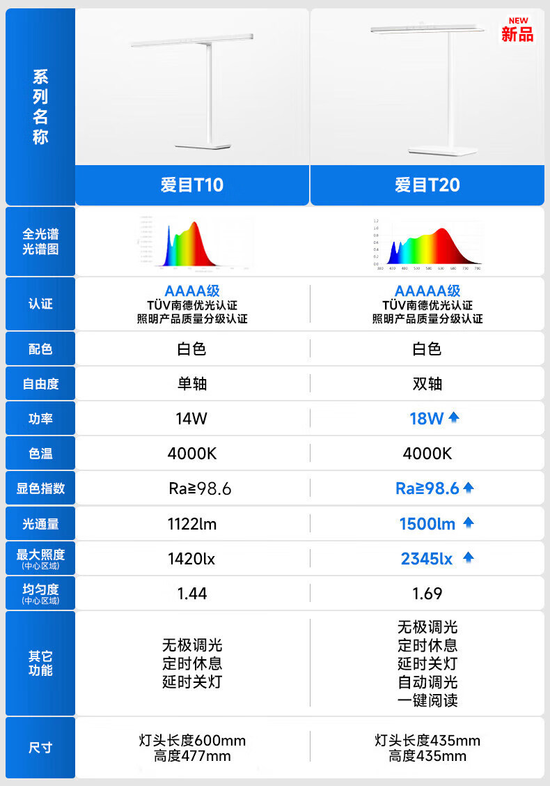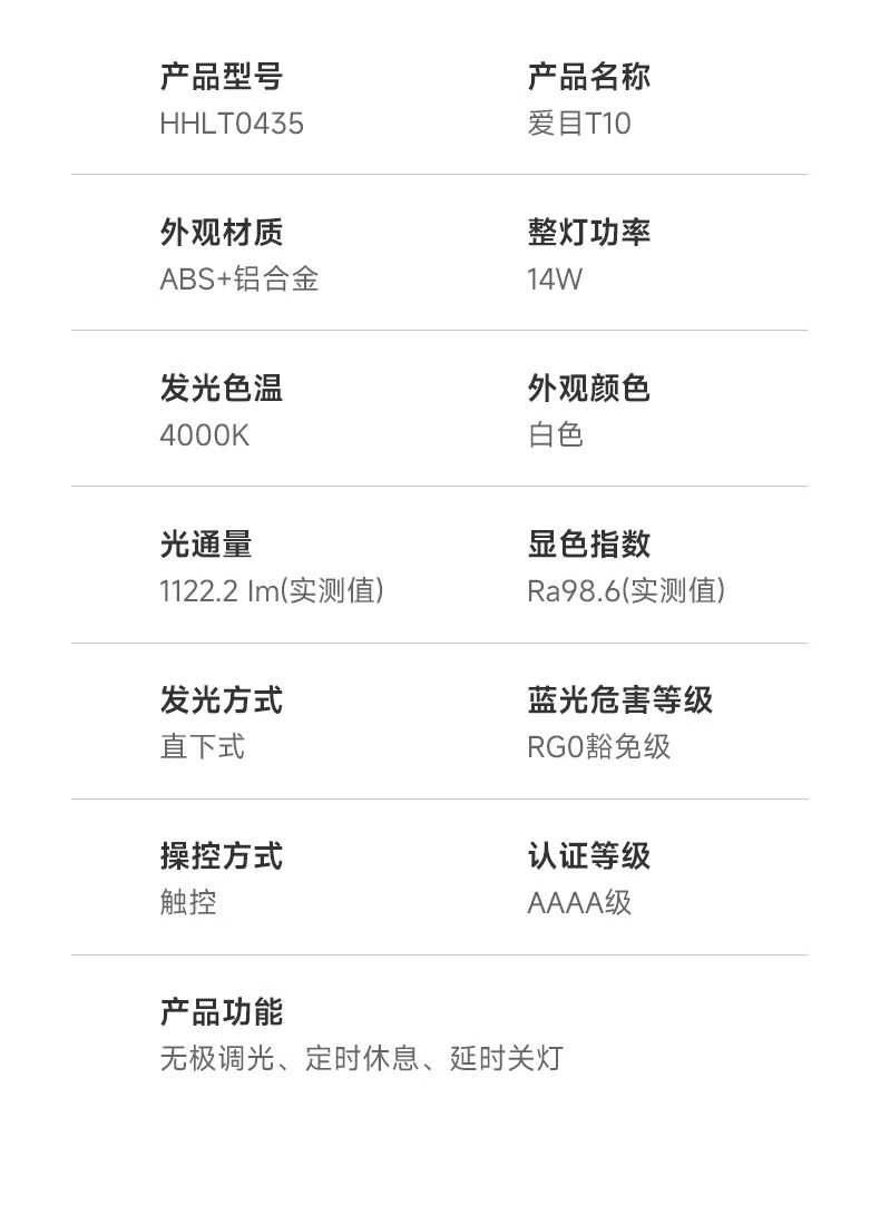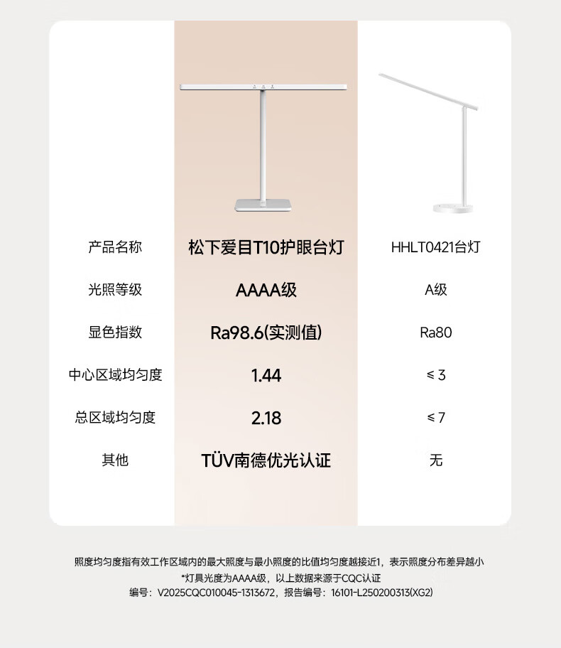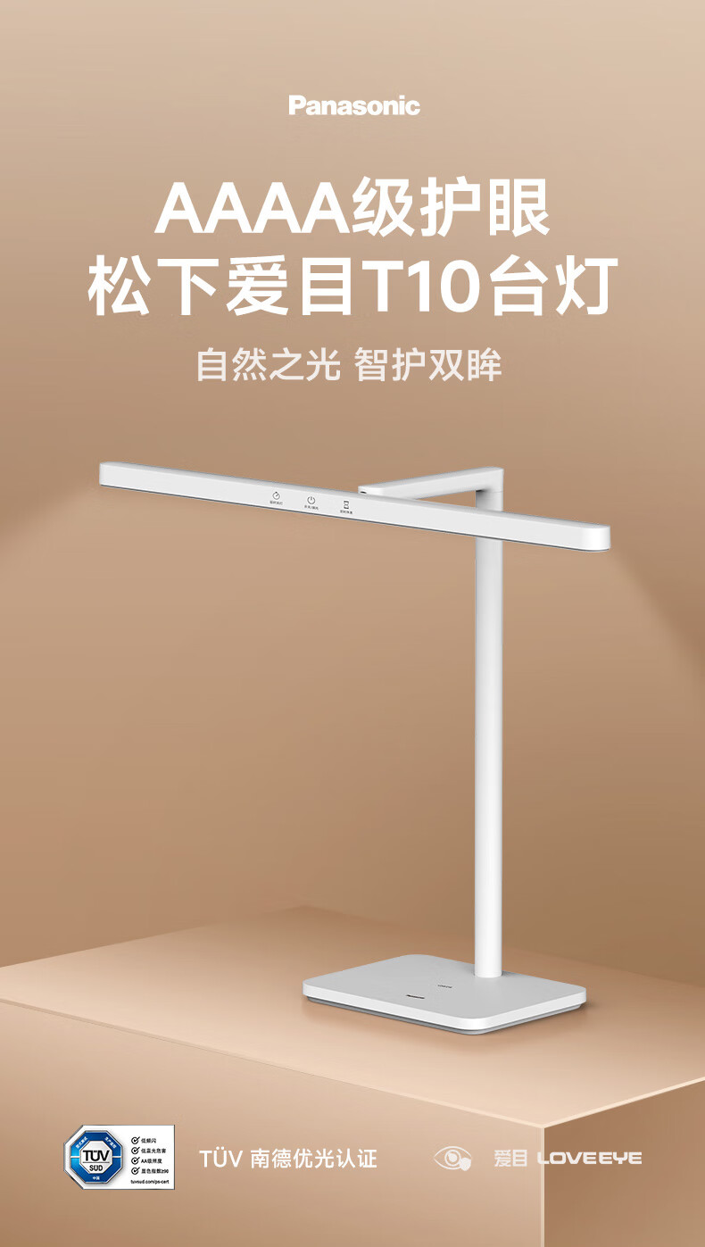 松下(Panasonic)阅读台灯(护眼灯)AAAA级护眼全光谱儿童学习横灯头 爱目T10