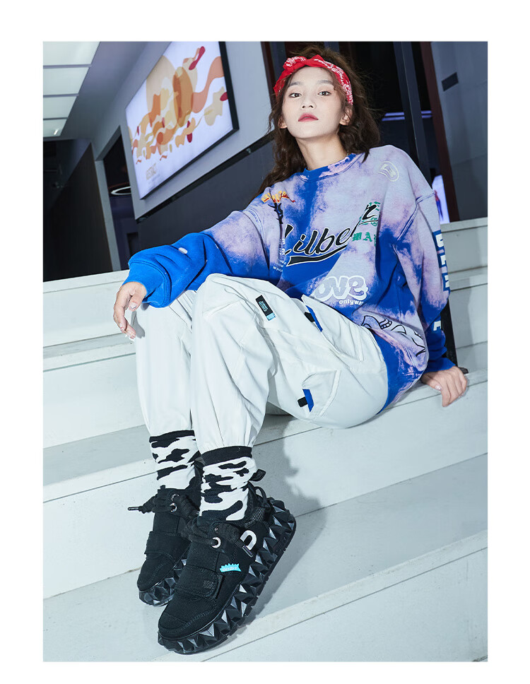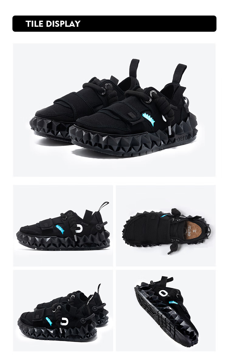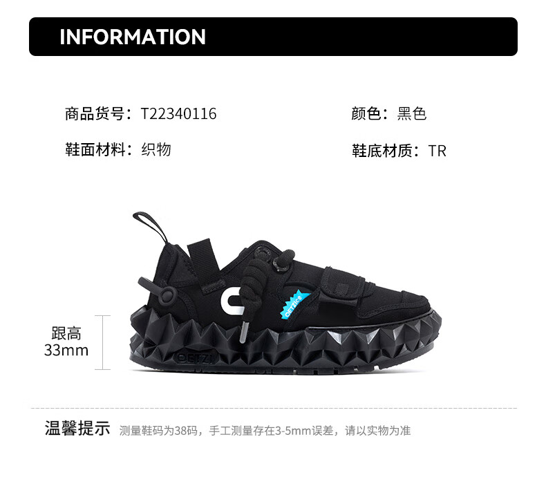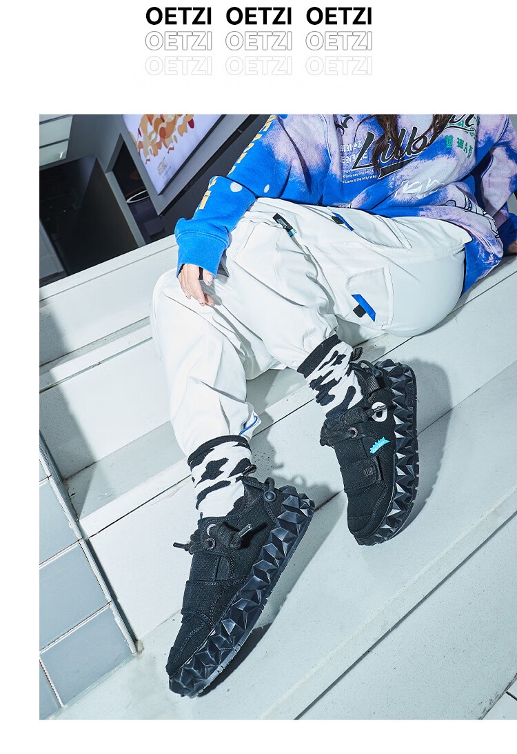 OETZI奥兹 冰山果冻丑萌鞋低帮透气帆布鞋百搭情侣潮鞋 黑色T22340116 38