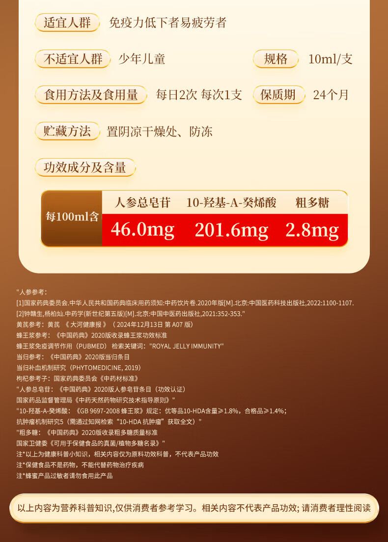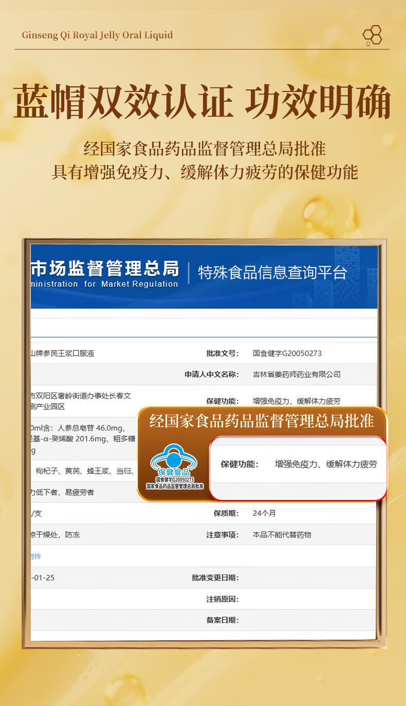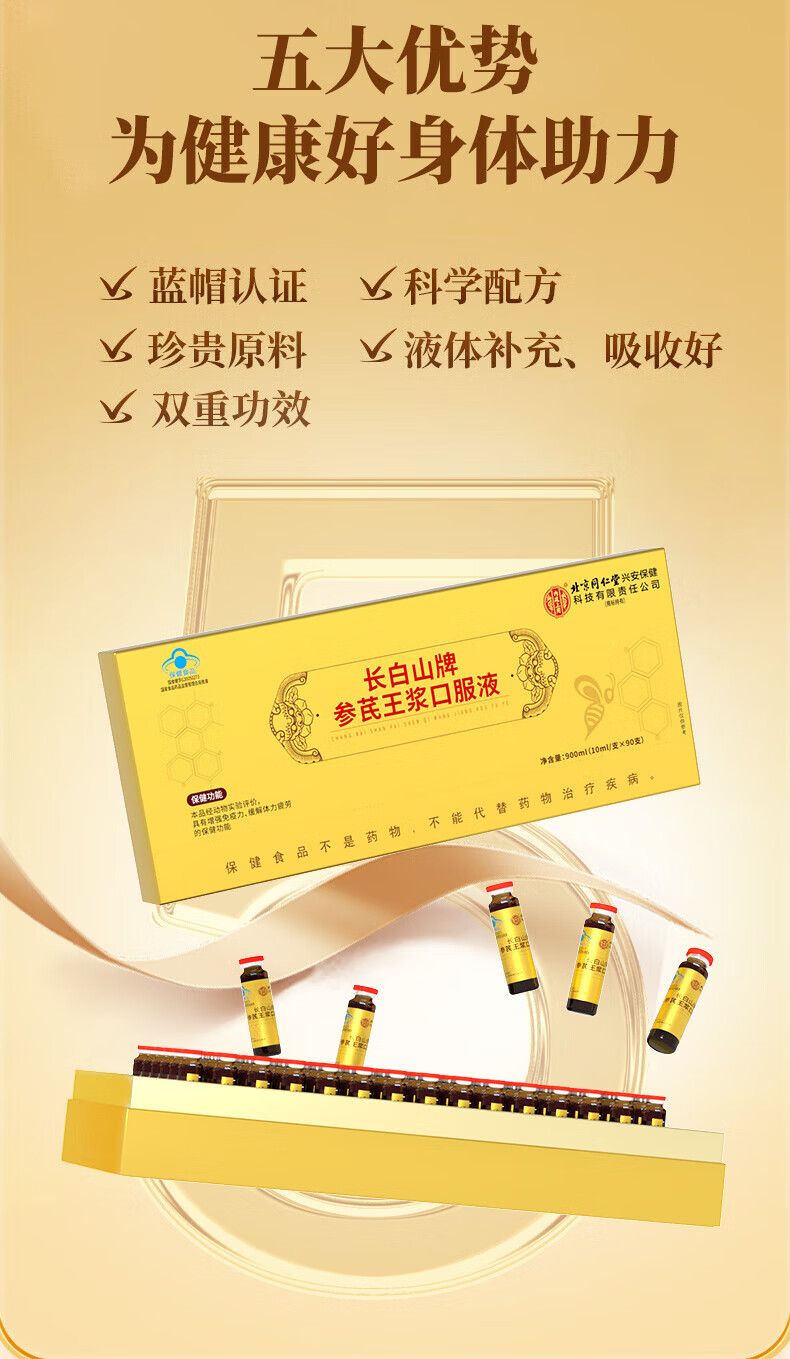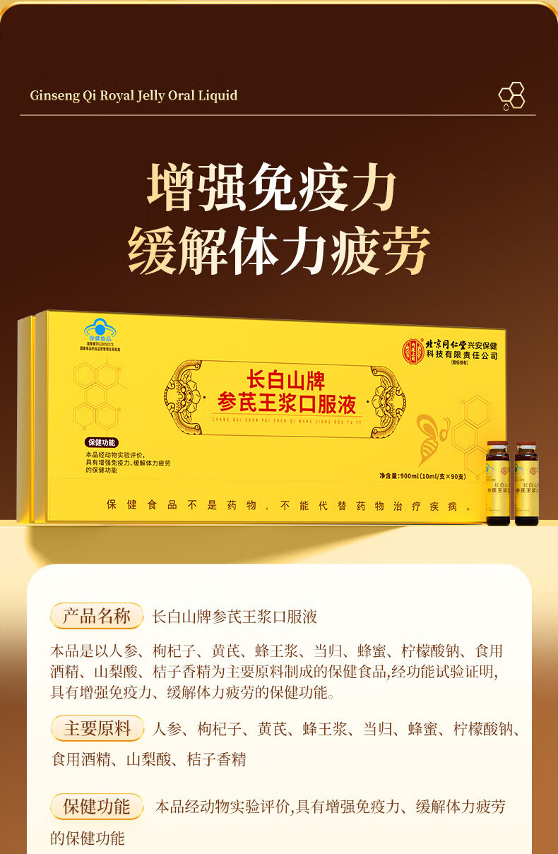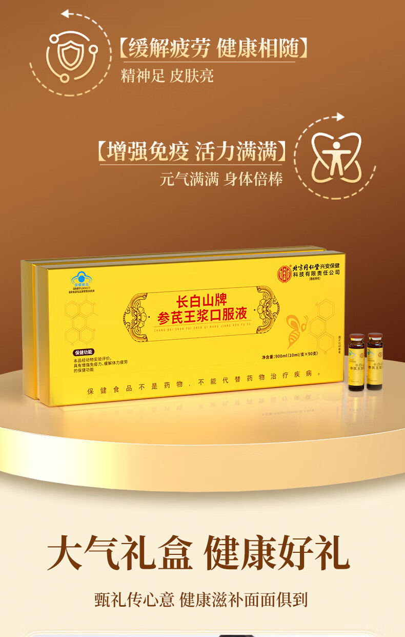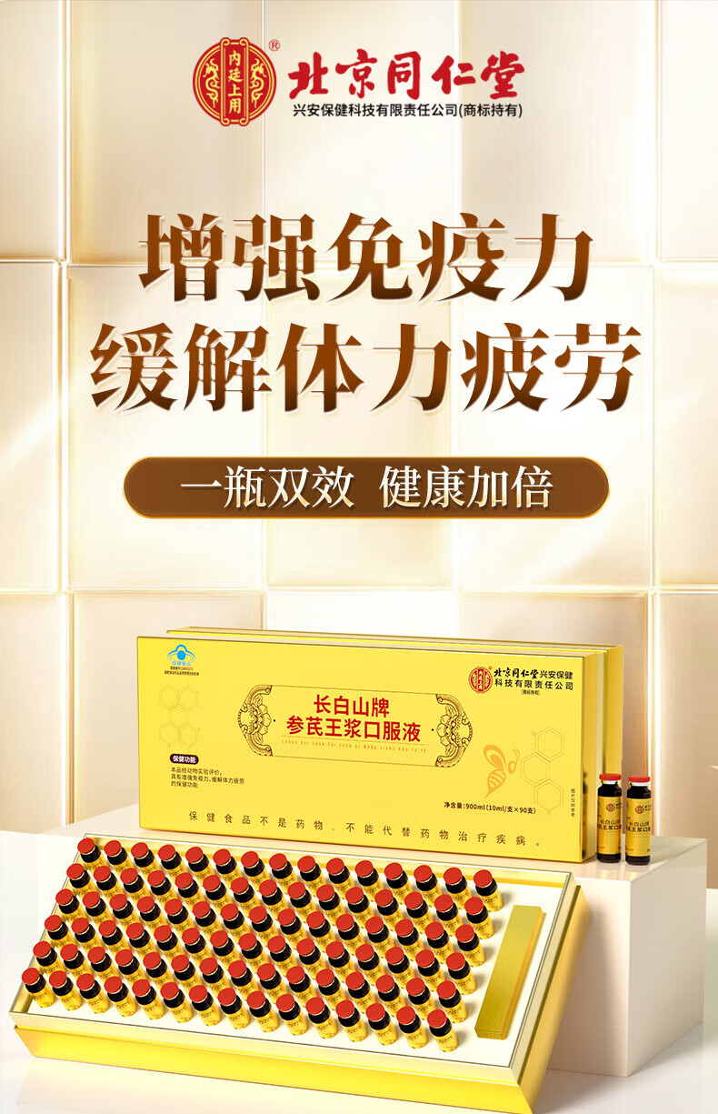 内廷上用北京同仁堂人参黄芪蜂王浆口服液90支 送长辈中老年人 营养品礼盒 90支*1盒