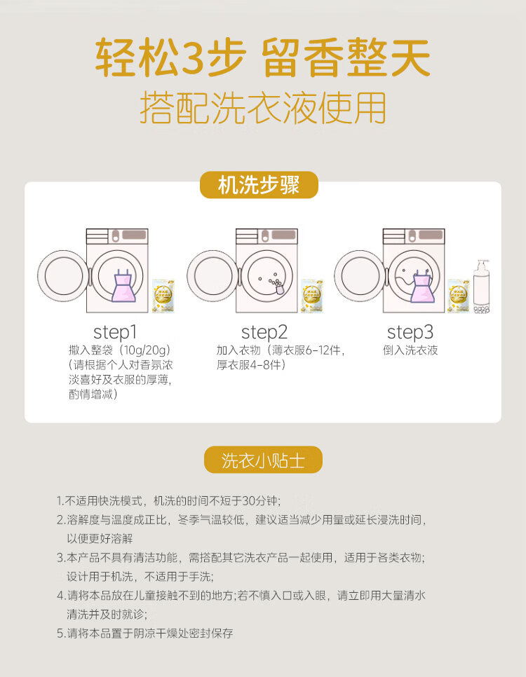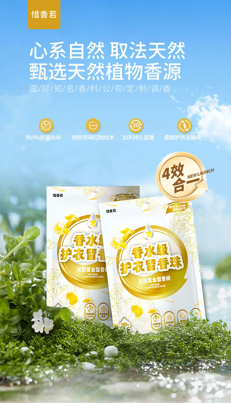 惜香若 留香珠洗衣香珠柔顺剂持久留香护衣香水防静电衣物香氛除菌除螨 【囤货】馥郁花香(共600g)
