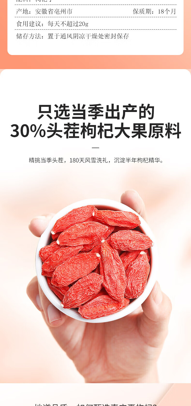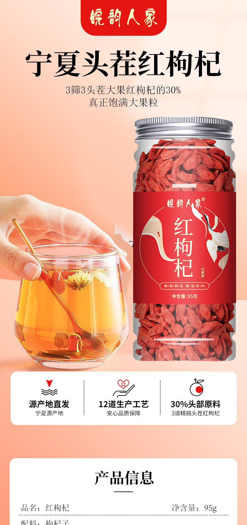弘盈堂宁夏枸杞子红枸杞罐装头茬新货免洗大果干净批发泡茶泡酒 皖韵人家【红枸杞370粒】95g/瓶