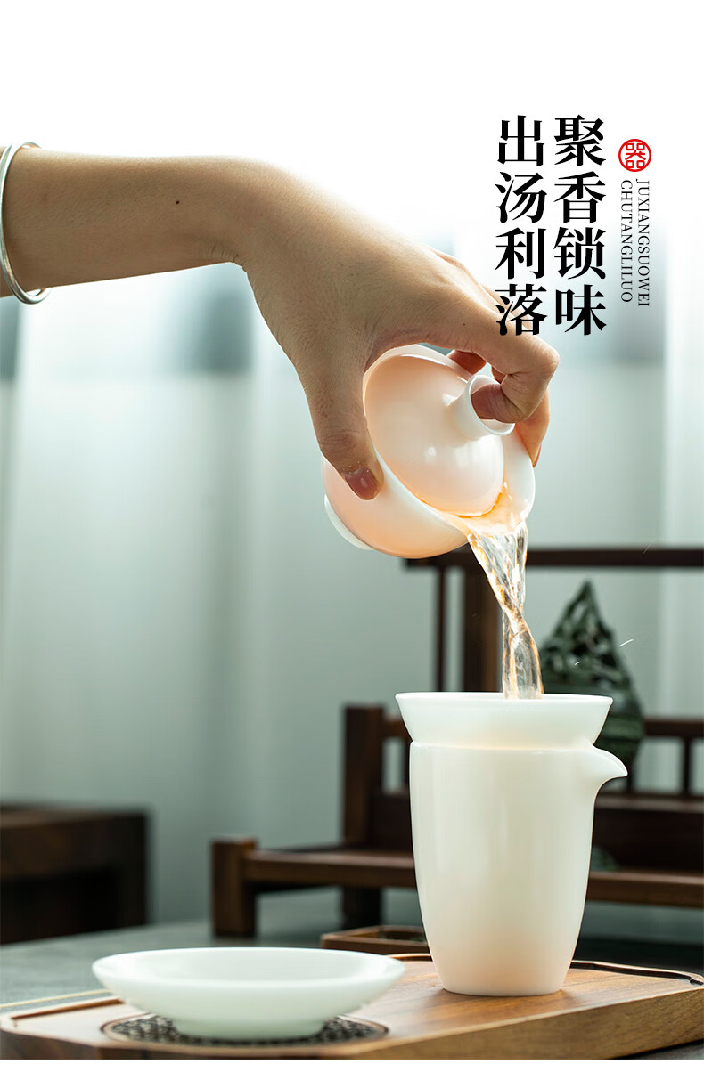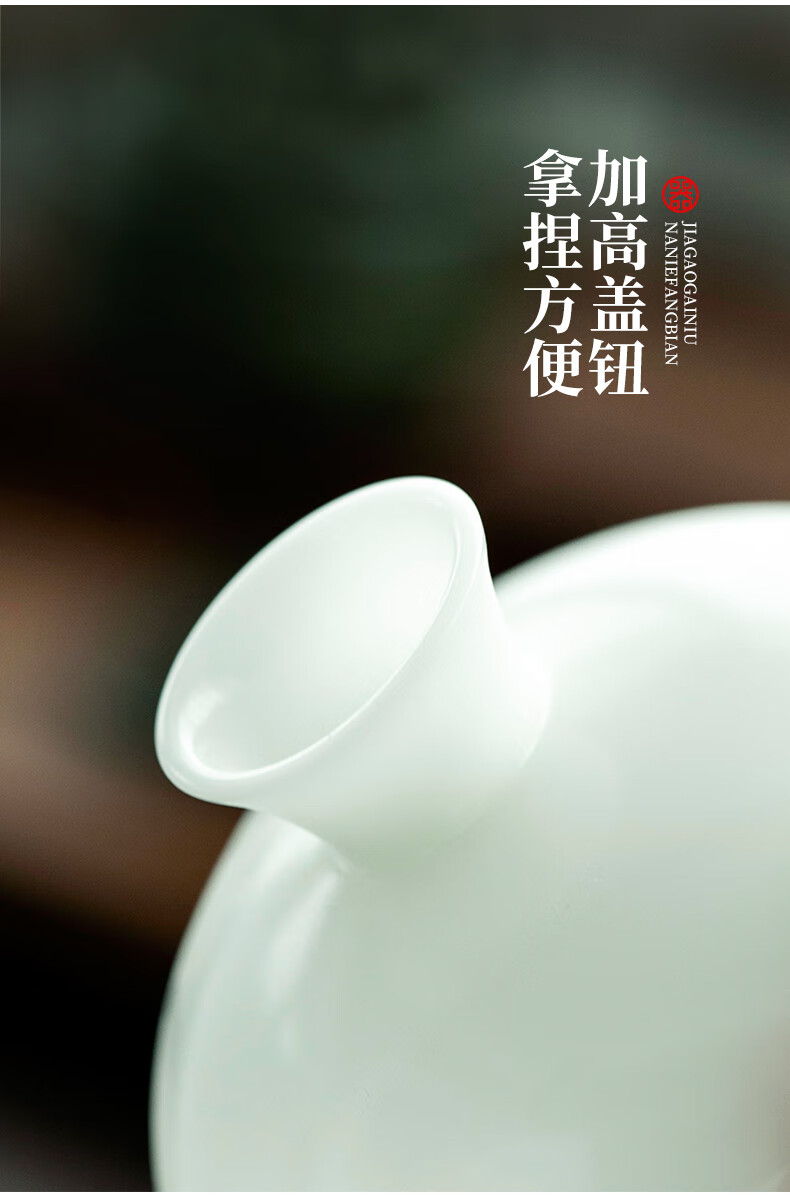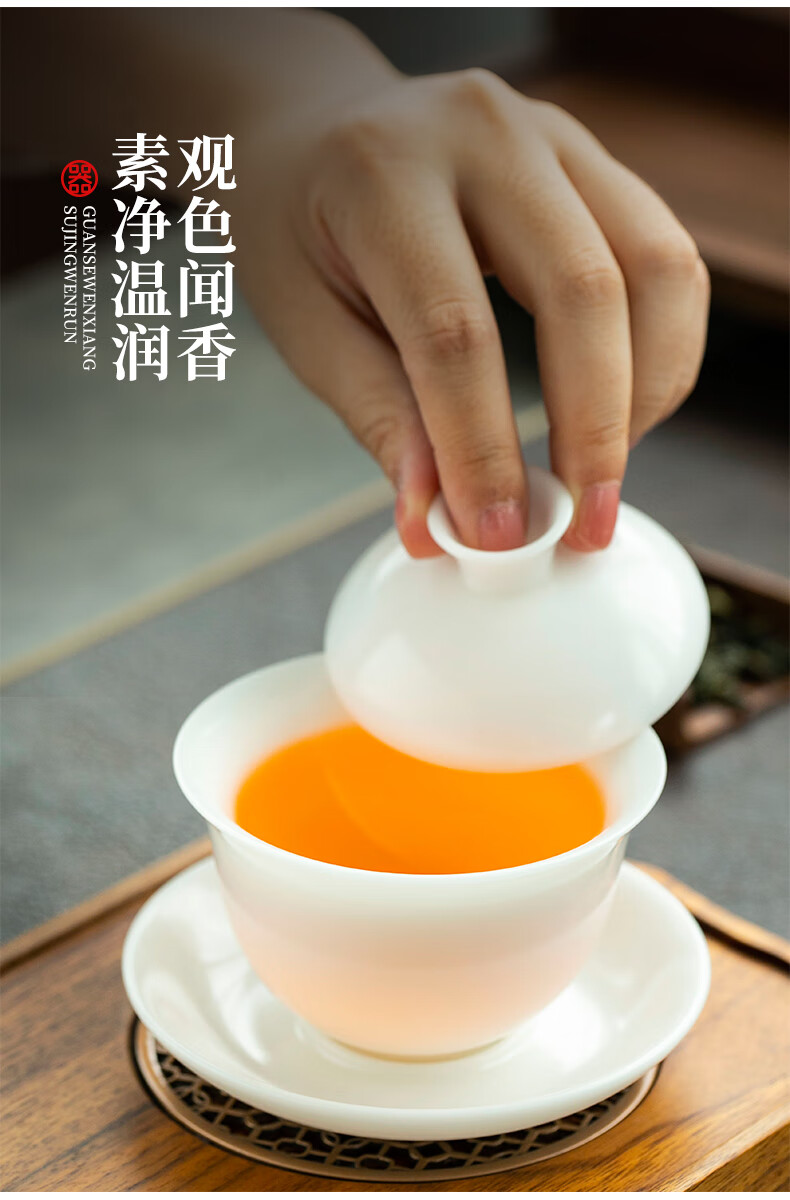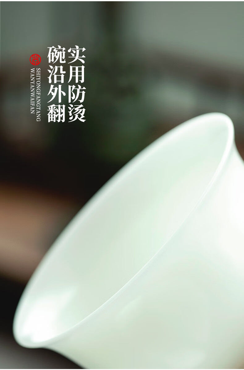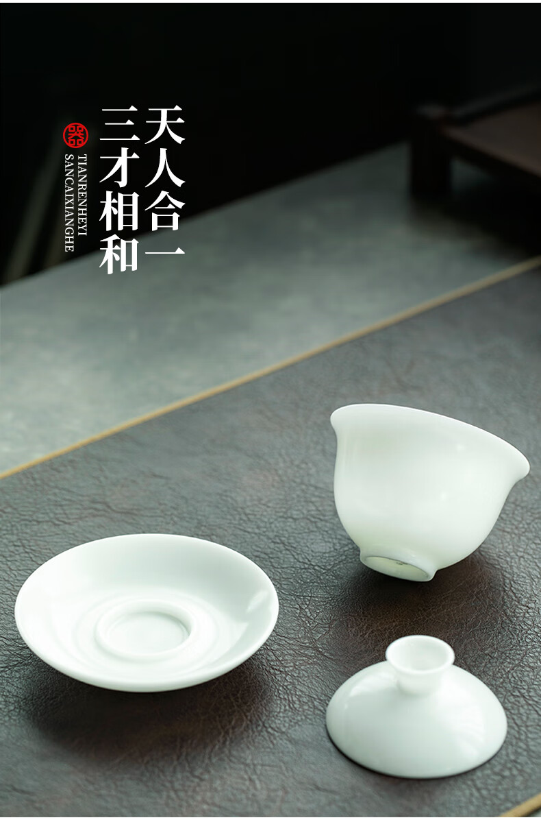 钰铨龙门 冰种润白西施壶盖碗套组 德化白瓷素烧泡茶壶茶碗功夫茶具礼盒装 润白茶壶+盖碗套组(天香杯)