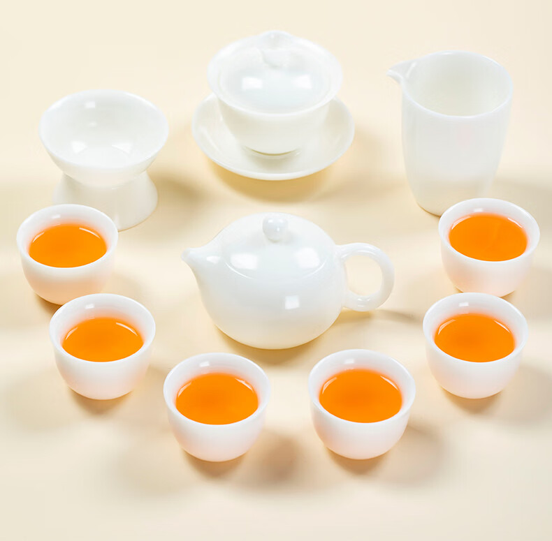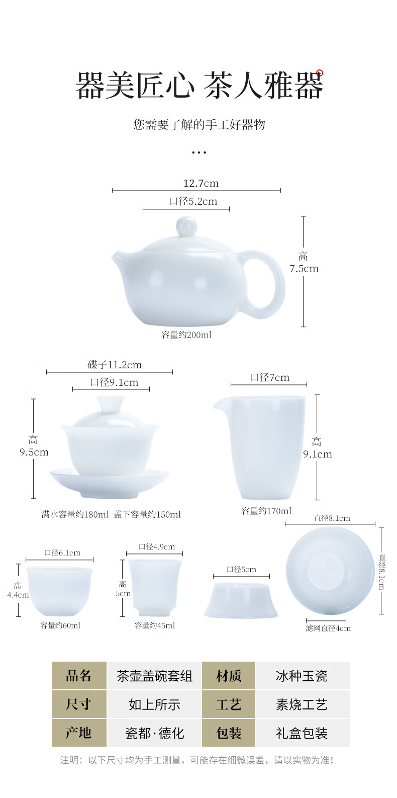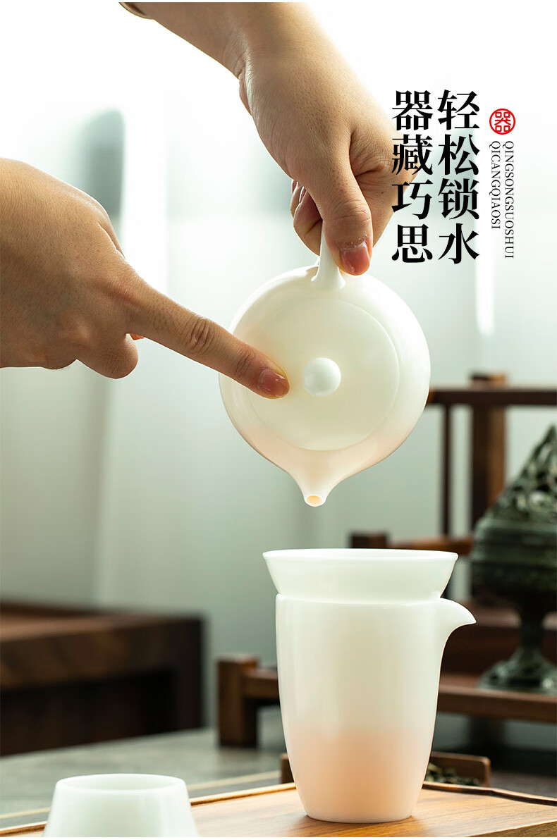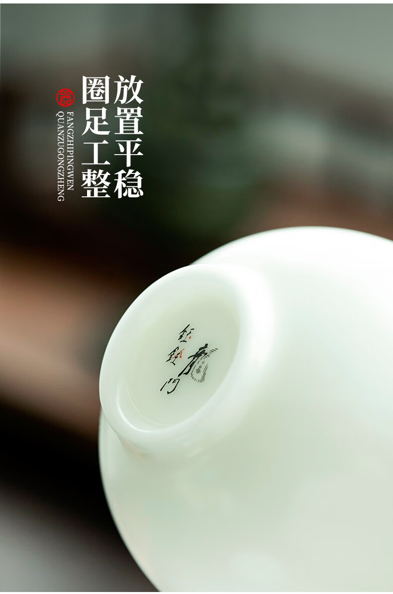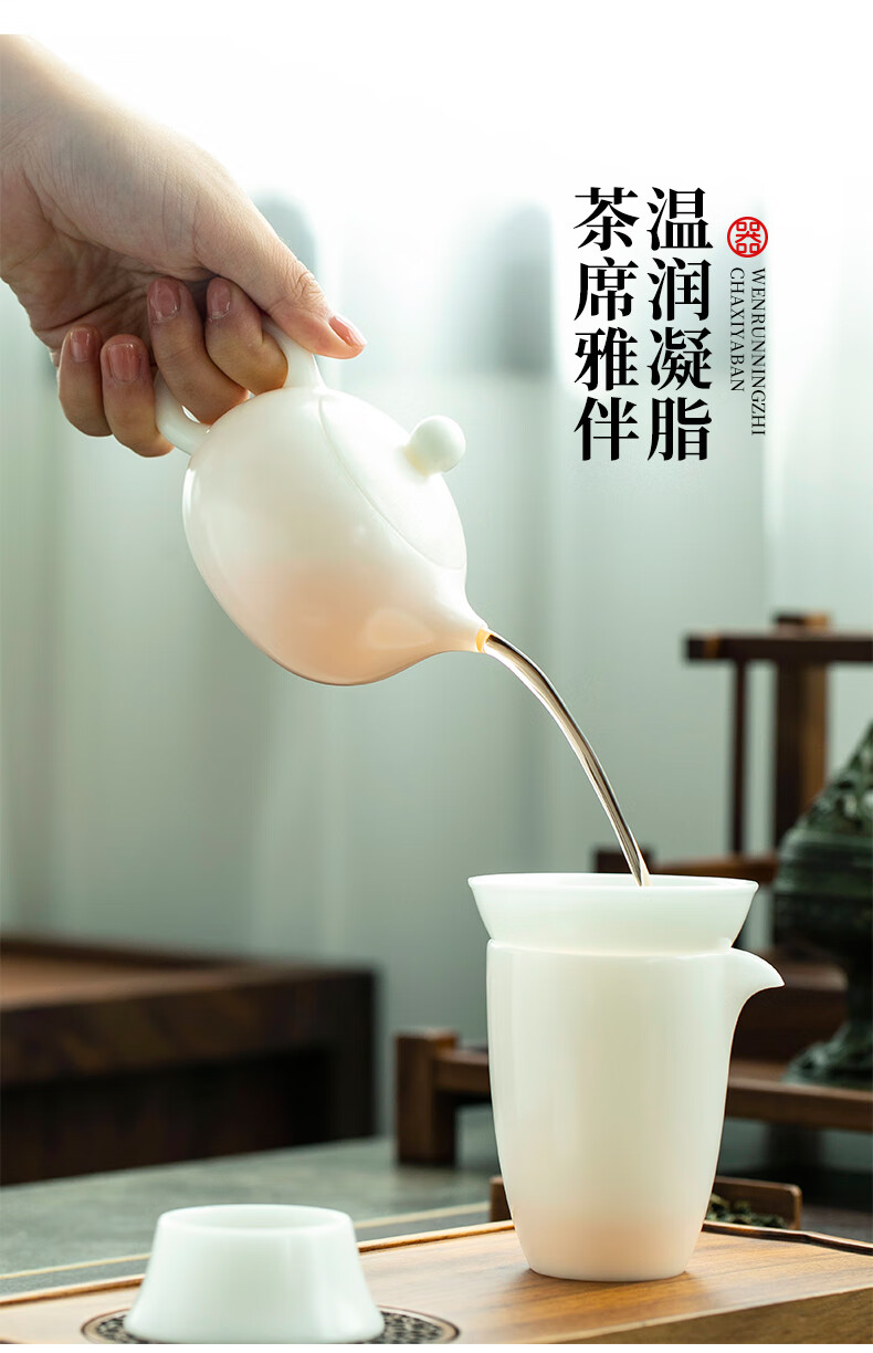 钰铨龙门 冰种润白西施壶盖碗套组 德化白瓷素烧泡茶壶茶碗功夫茶具礼盒装 润白茶壶+盖碗套组(天香杯)