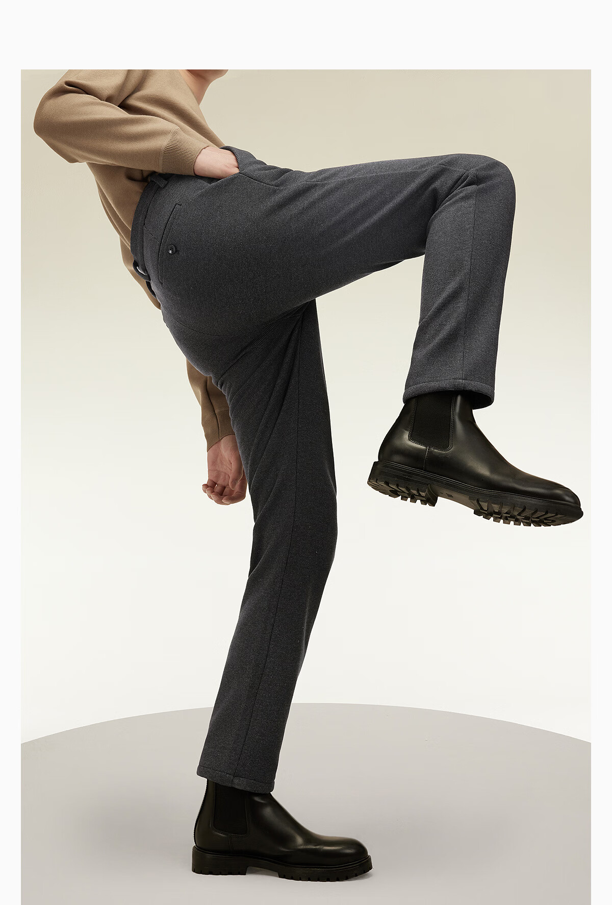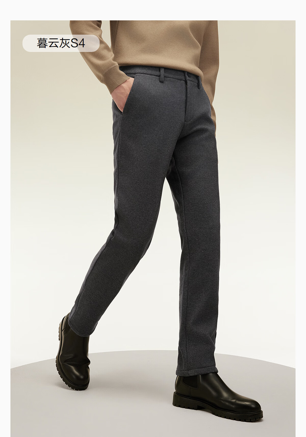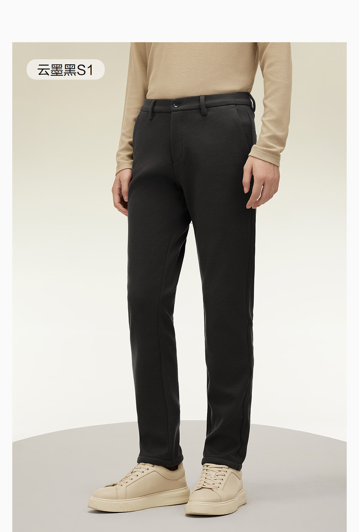 红豆【加绒加厚】弹力毛呢裤25秋冬新款直筒弹力加绒加厚休闲裤西裤男 云墨黑S1 34 180/88A 推荐75-80公斤