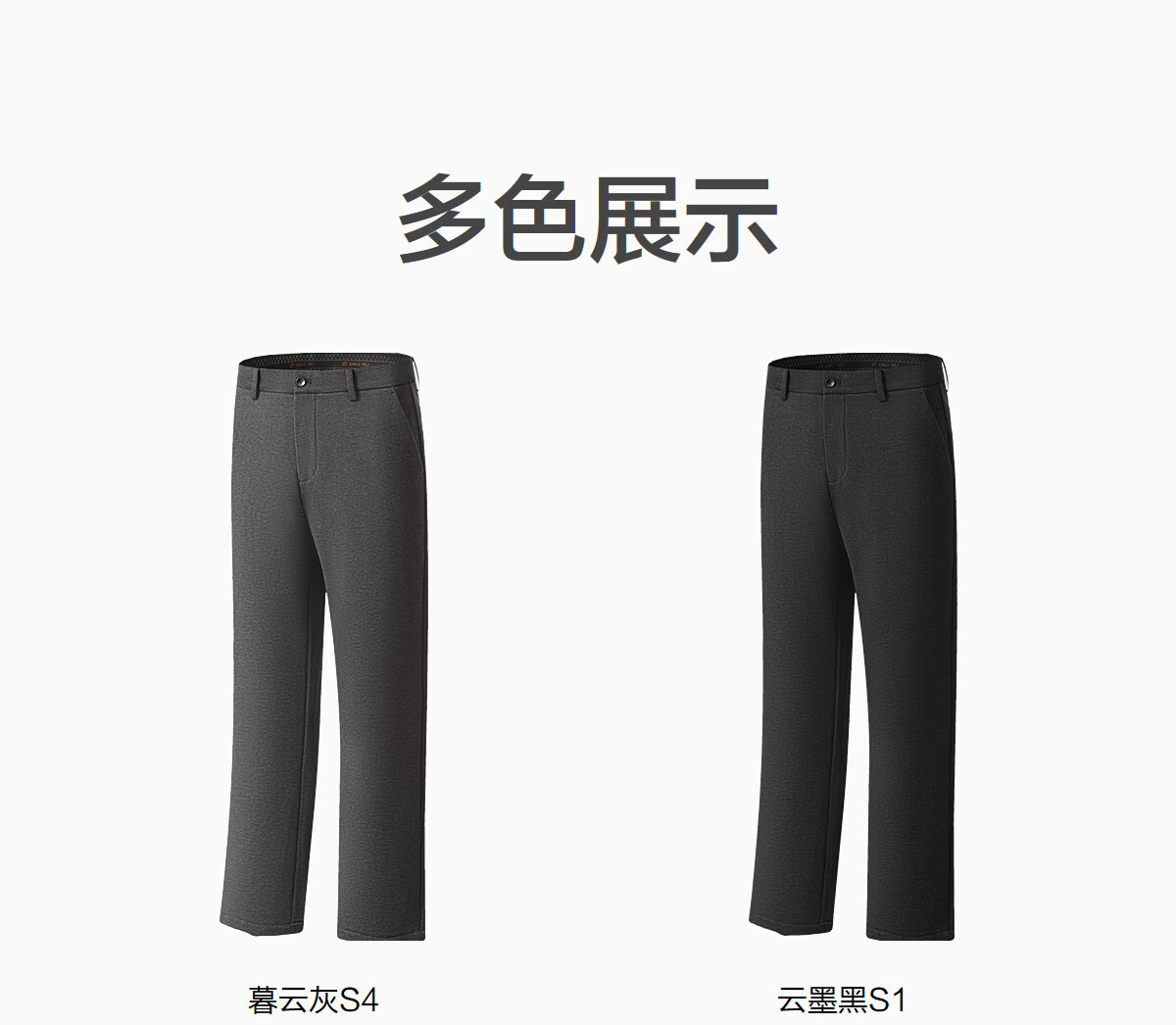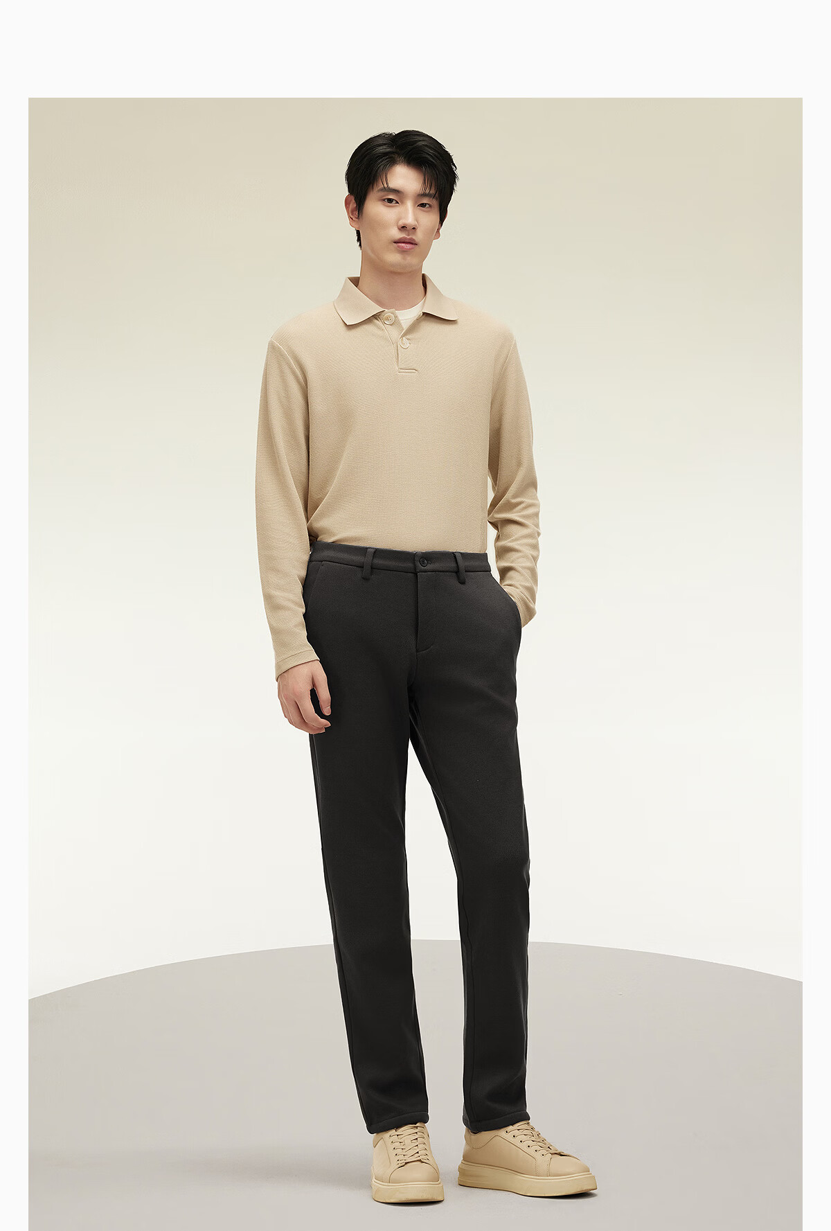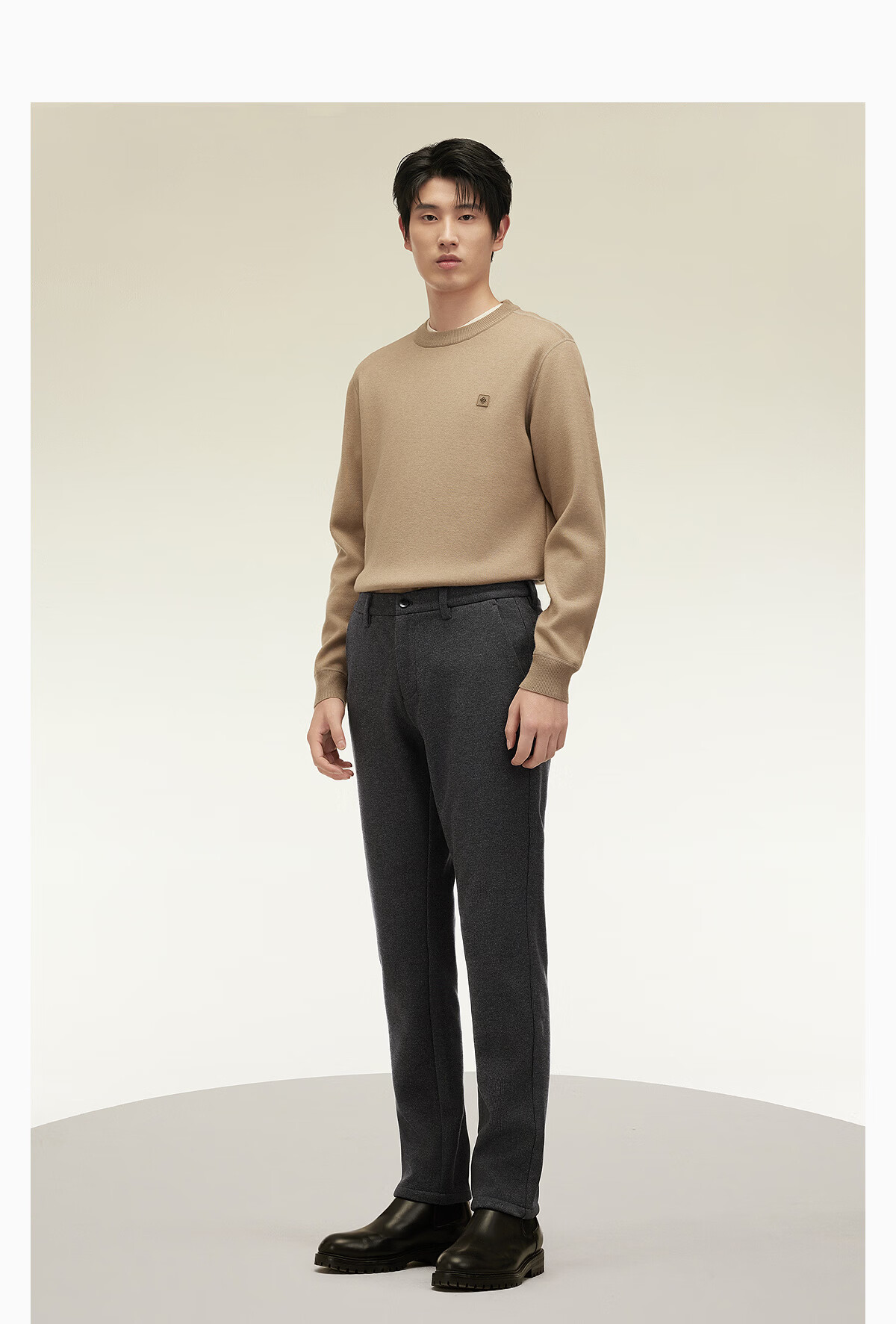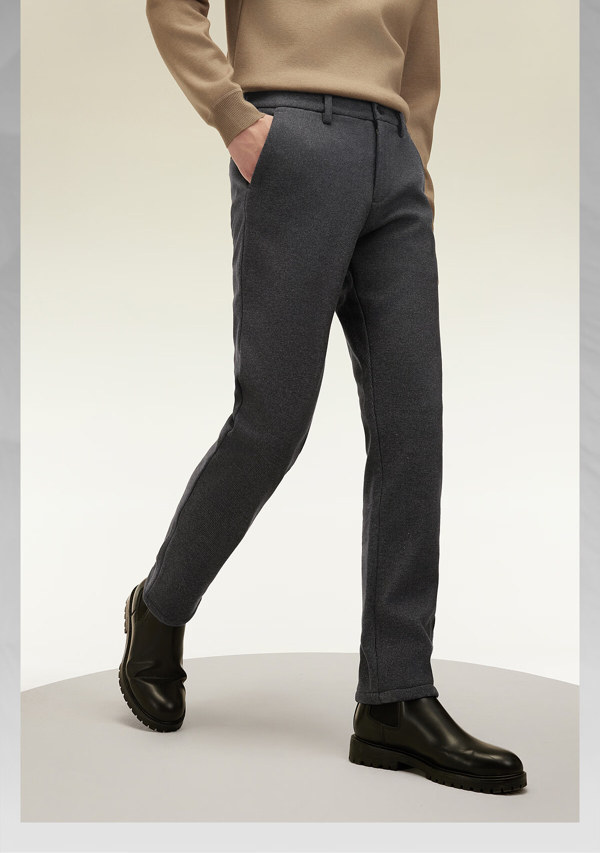 红豆【加绒加厚】弹力毛呢裤25秋冬新款直筒弹力加绒加厚休闲裤西裤男 云墨黑S1 34 180/88A 推荐75-80公斤
