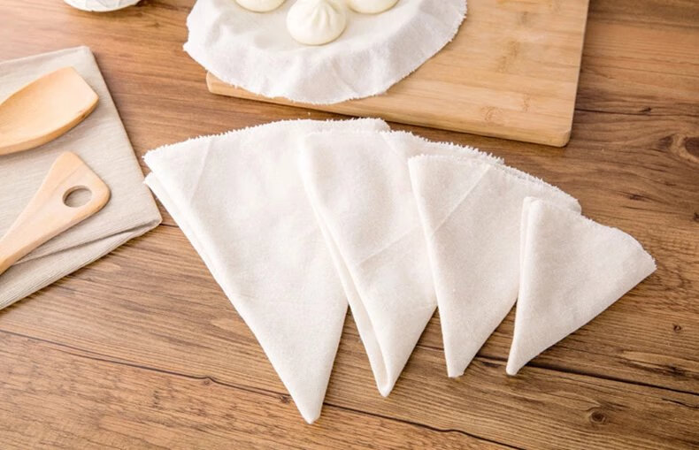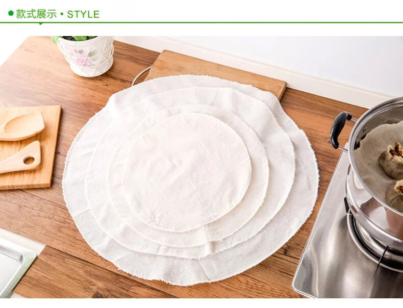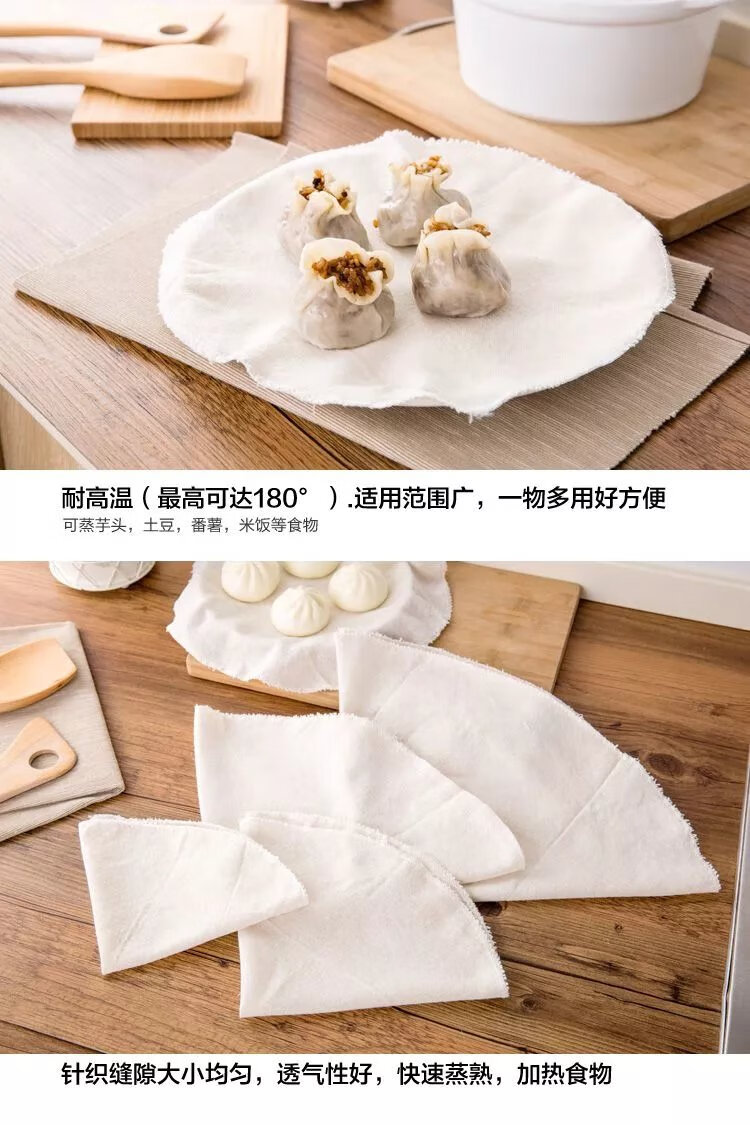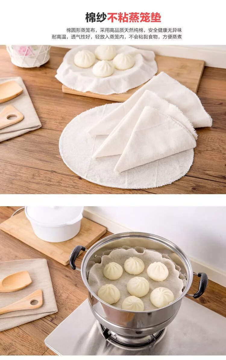 【精选】圆形包边不粘蒸笼布纱布蒸馒头包子蒸锅垫子蒸布16-50cm 【不粘】 26cm 5片装【+擀面杖1根】