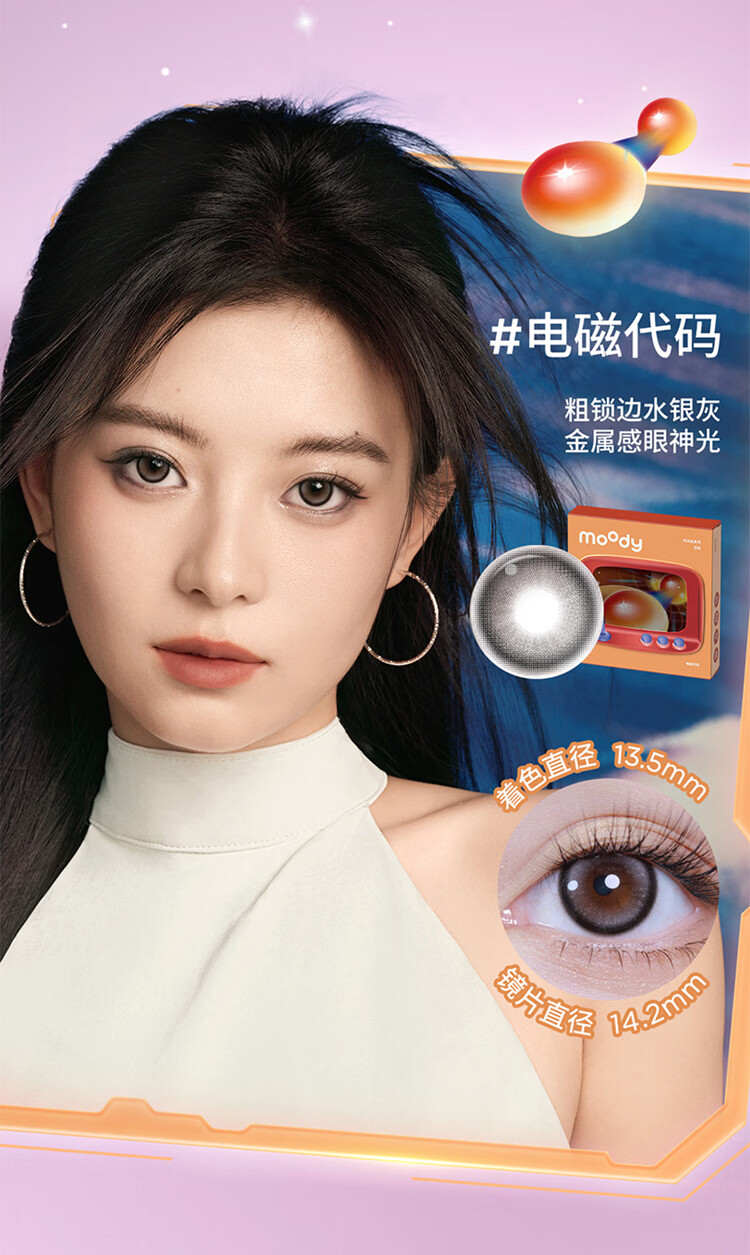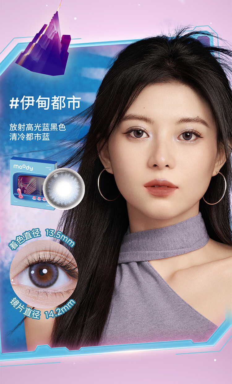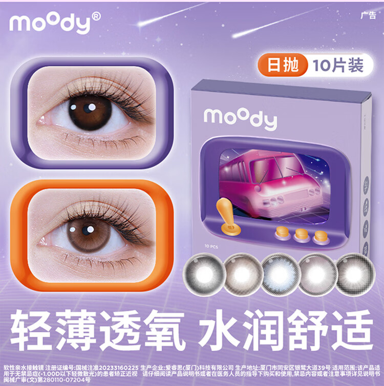 moody美瞳日抛10片时光机系列隐形近视眼镜自然大小直径 礼物 伊甸都市 750度