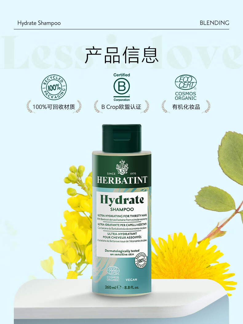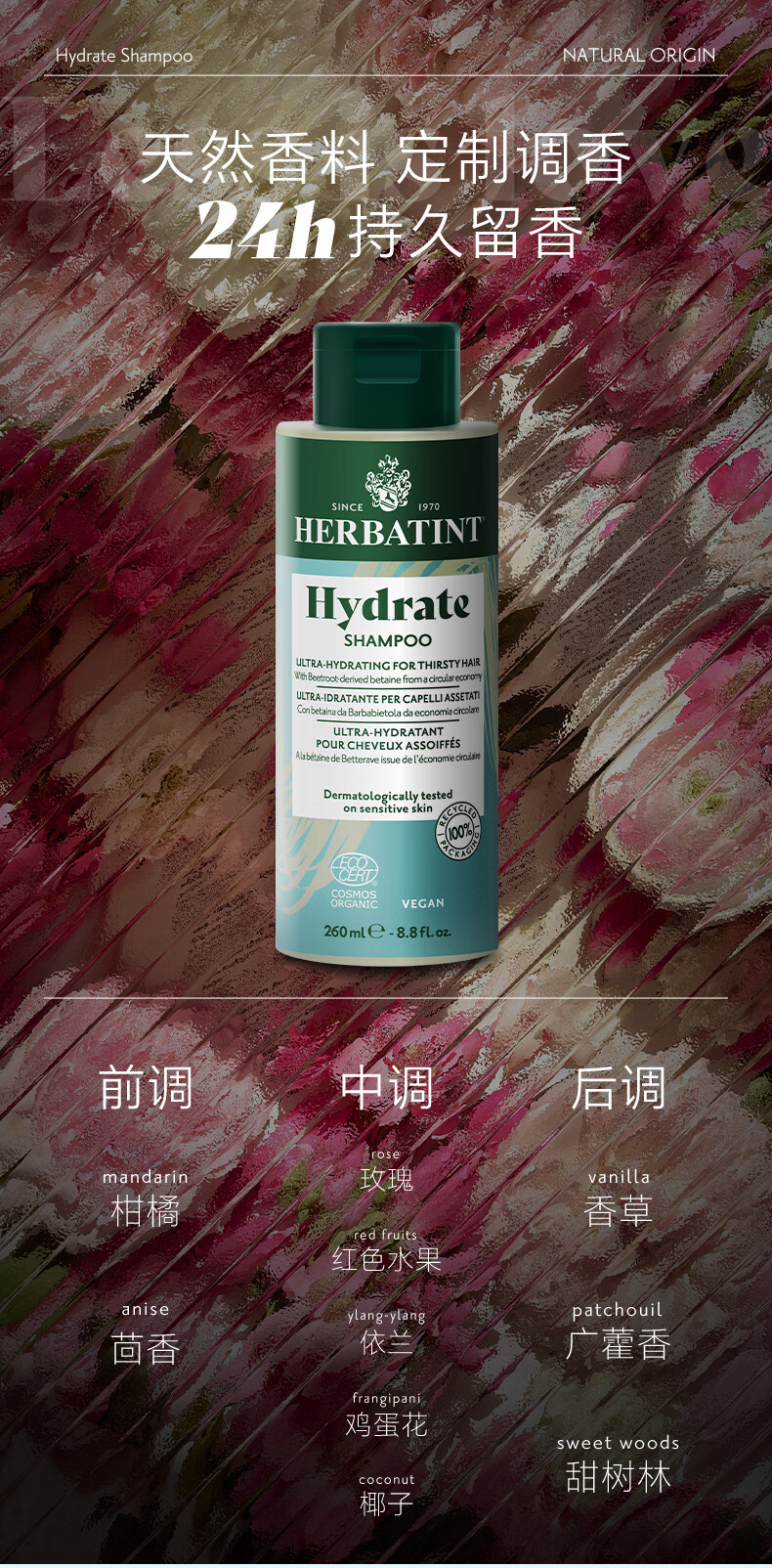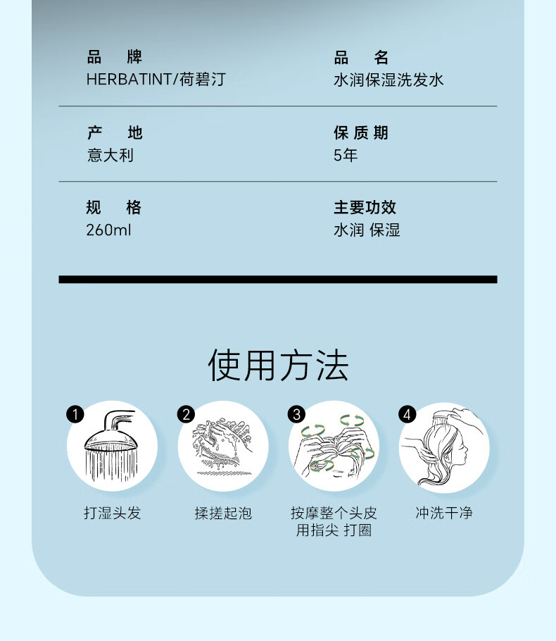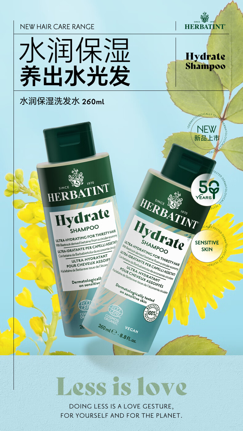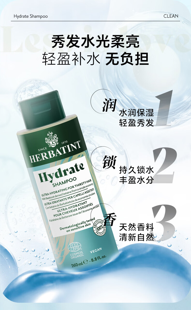 HERBATINT荷碧汀水润补水保湿洗发水260ml温和低敏 水润洗发水260ml