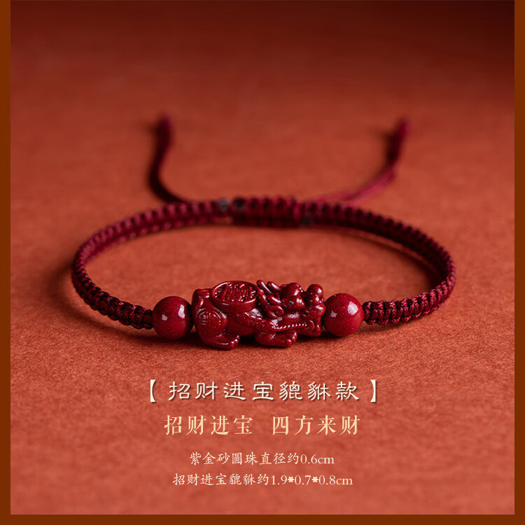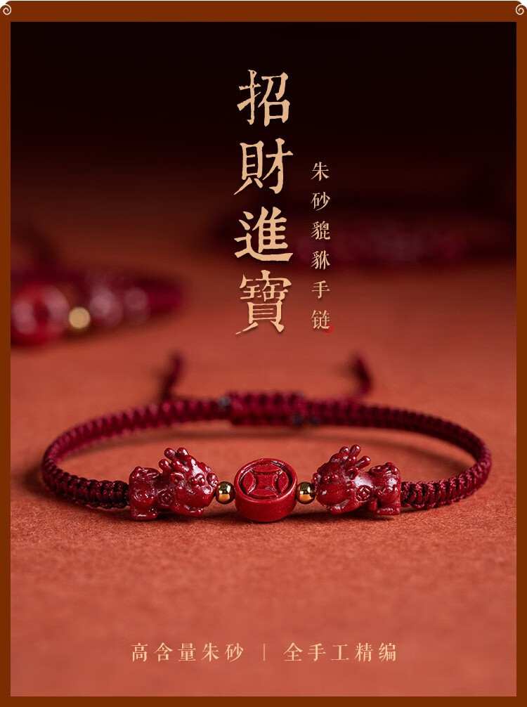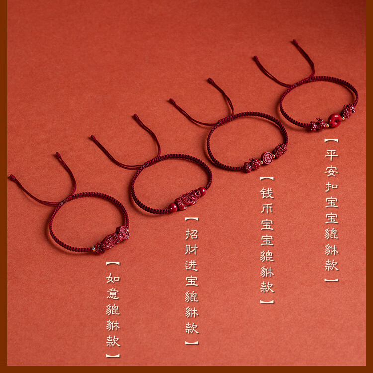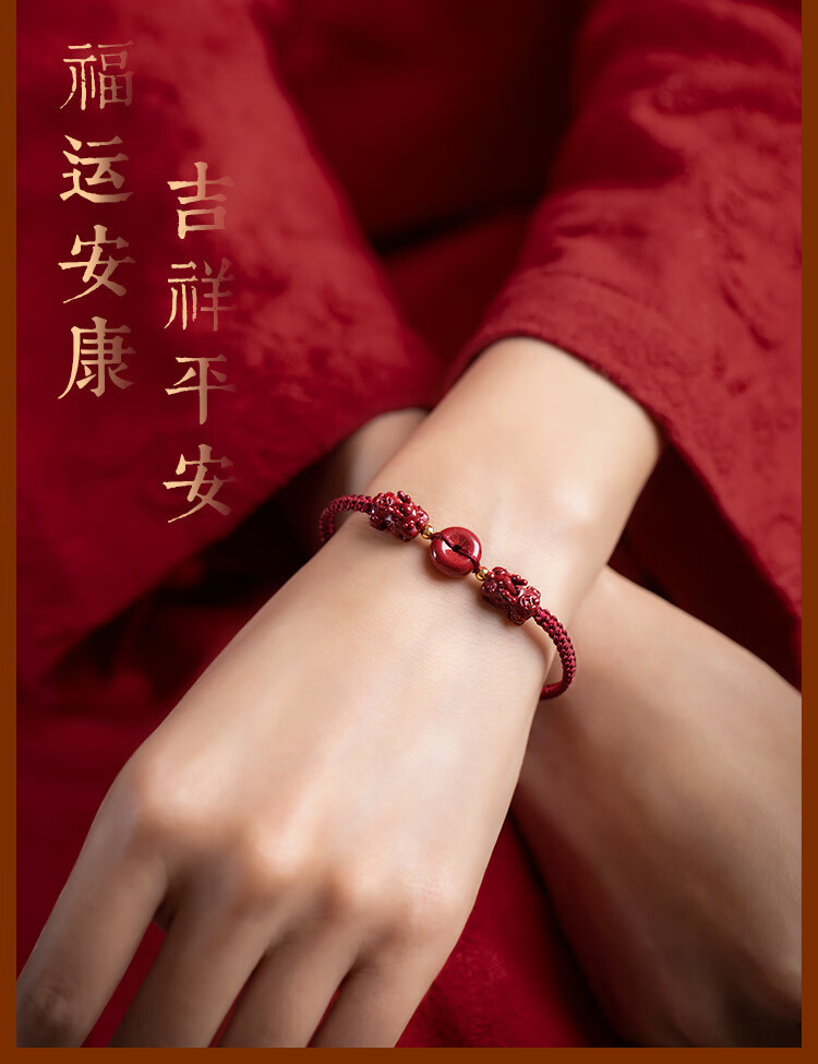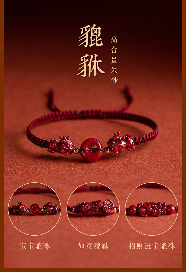 落恋朱砂手串本命年小红绳手链转运珠编织手绳脚链男女马年护身符 朱砂招财进宝貔貅手绳 优雅黑绳
