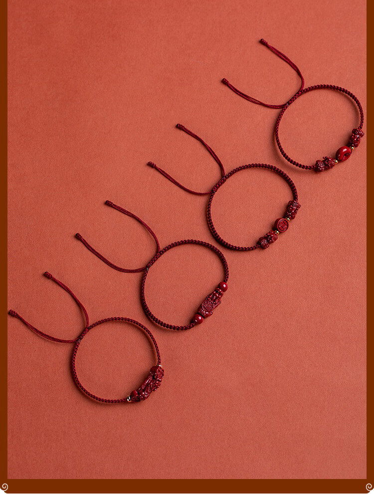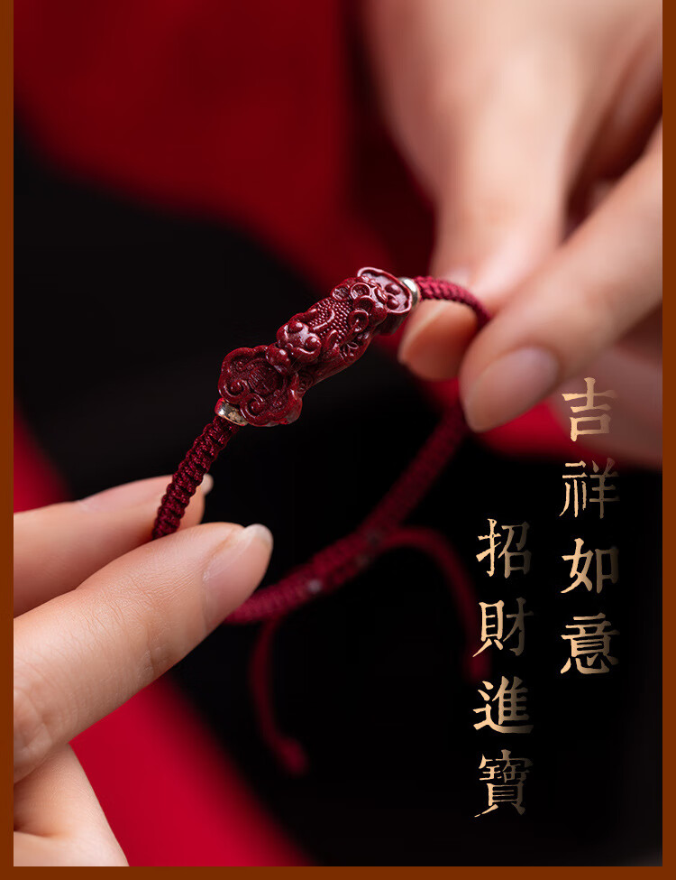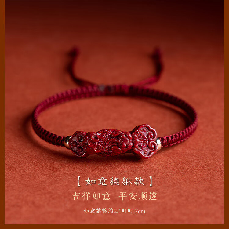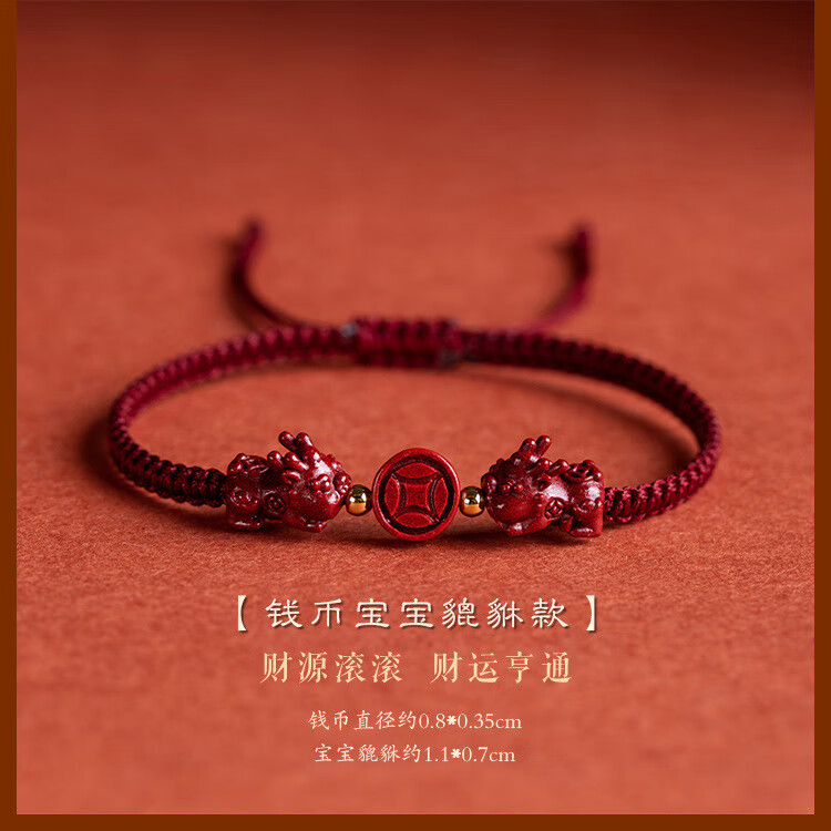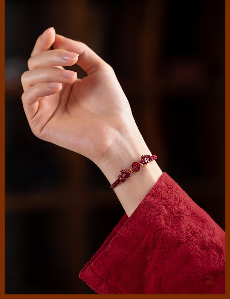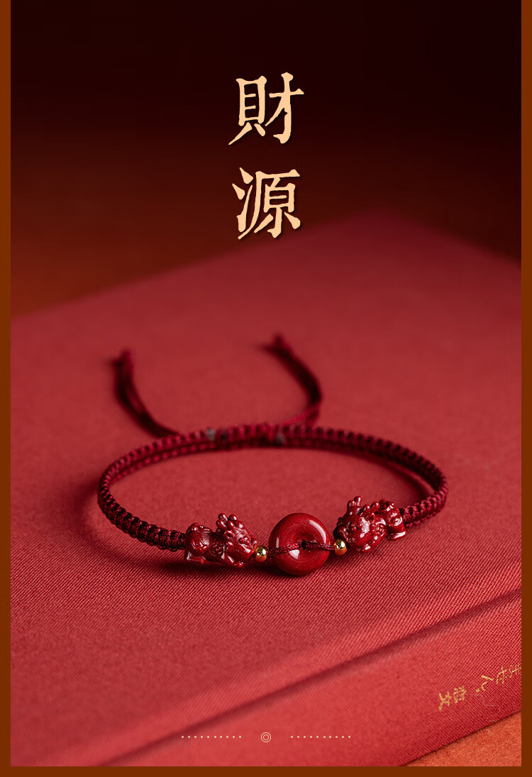 落恋朱砂手串本命年小红绳手链转运珠编织手绳脚链男女马年护身符 朱砂招财进宝貔貅手绳 优雅黑绳