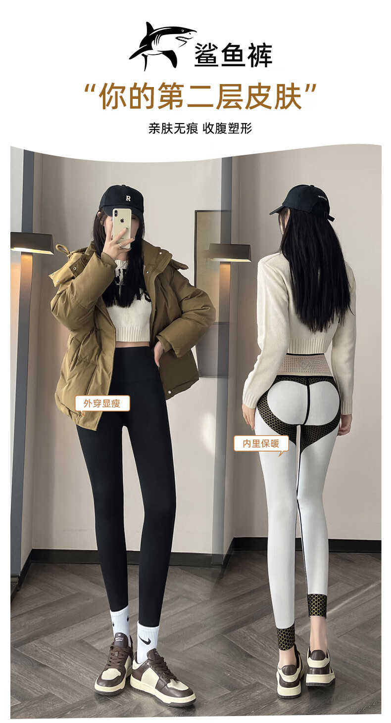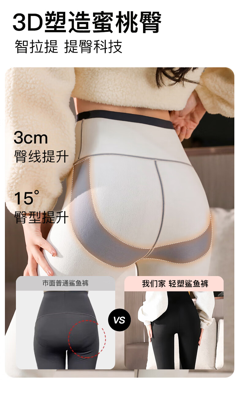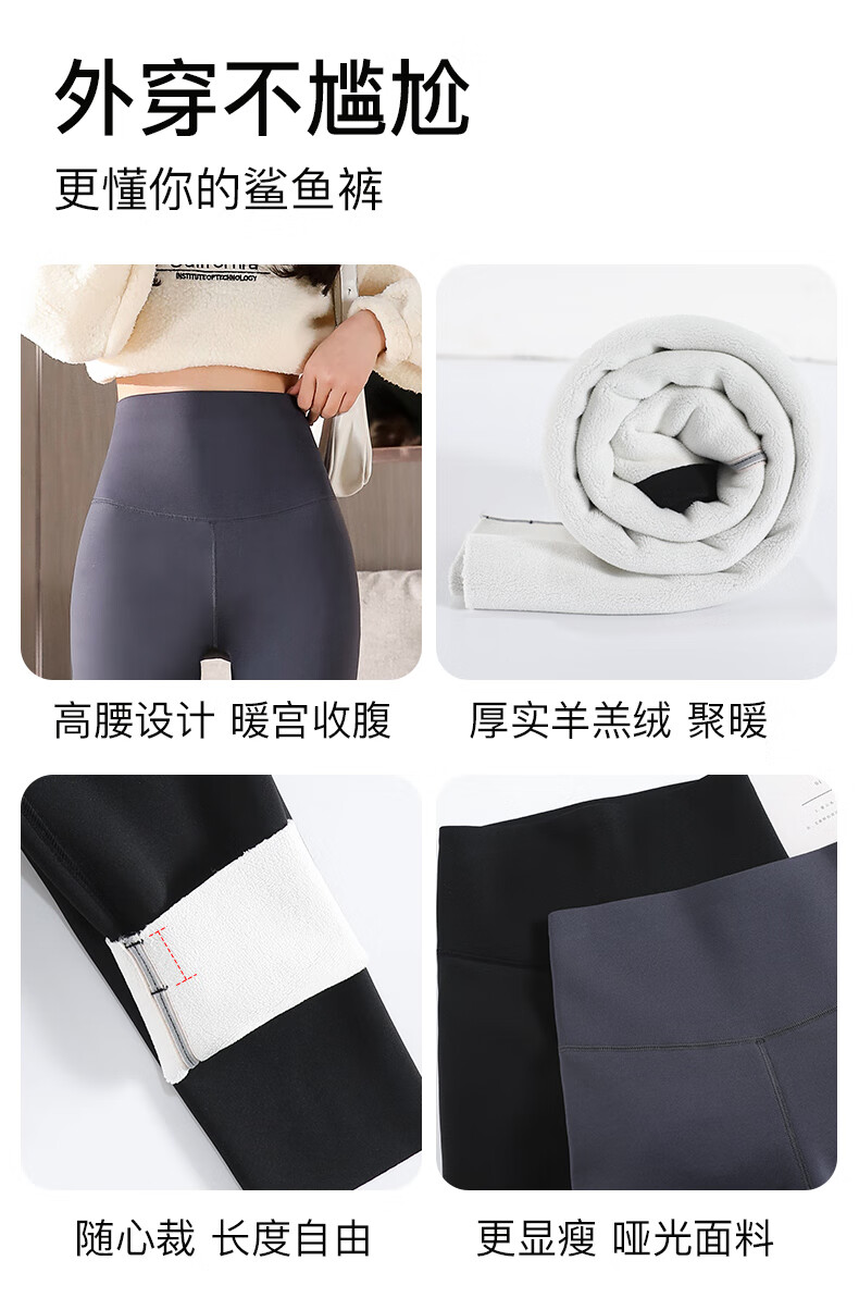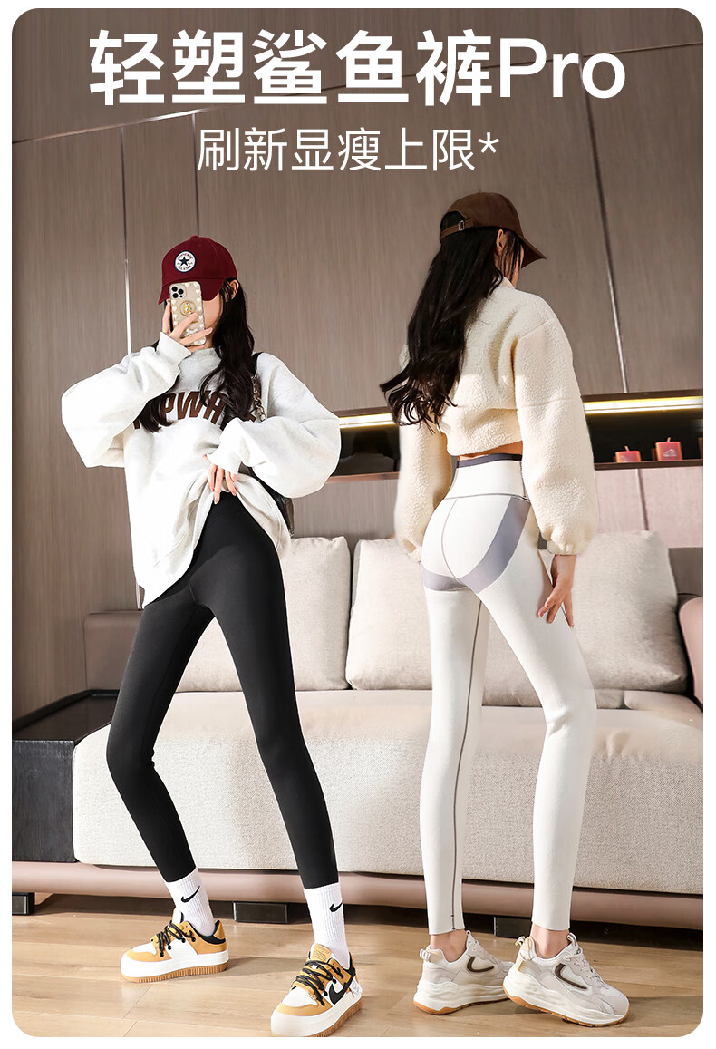 猫人(MiiOW)【蜜桃臀打底裤】加绒鲨鱼裤秋冬加厚提臀紧身裤高腰收腹打底裤 羊羔绒鲨鱼裤【加绒加厚】黑色 M