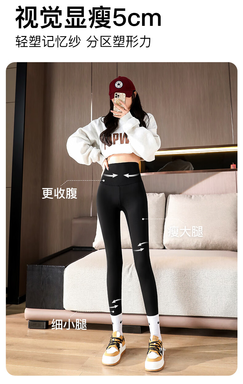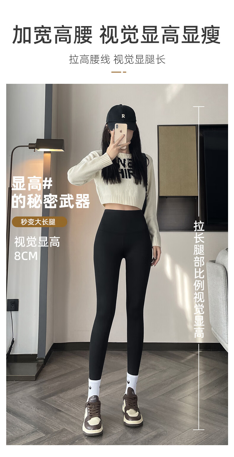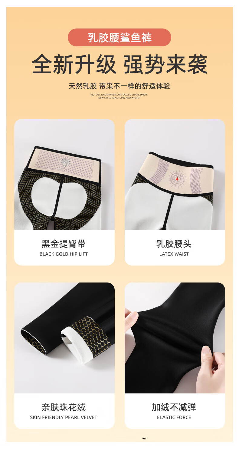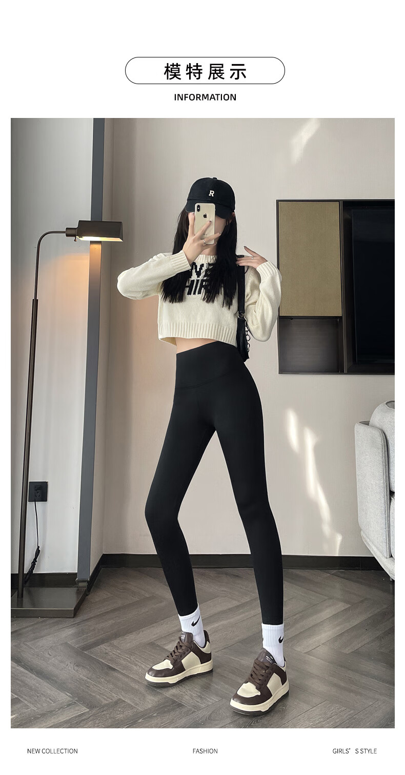 猫人(MiiOW)【蜜桃臀打底裤】加绒鲨鱼裤秋冬加厚提臀紧身裤高腰收腹打底裤 羊羔绒鲨鱼裤【加绒加厚】黑色 M