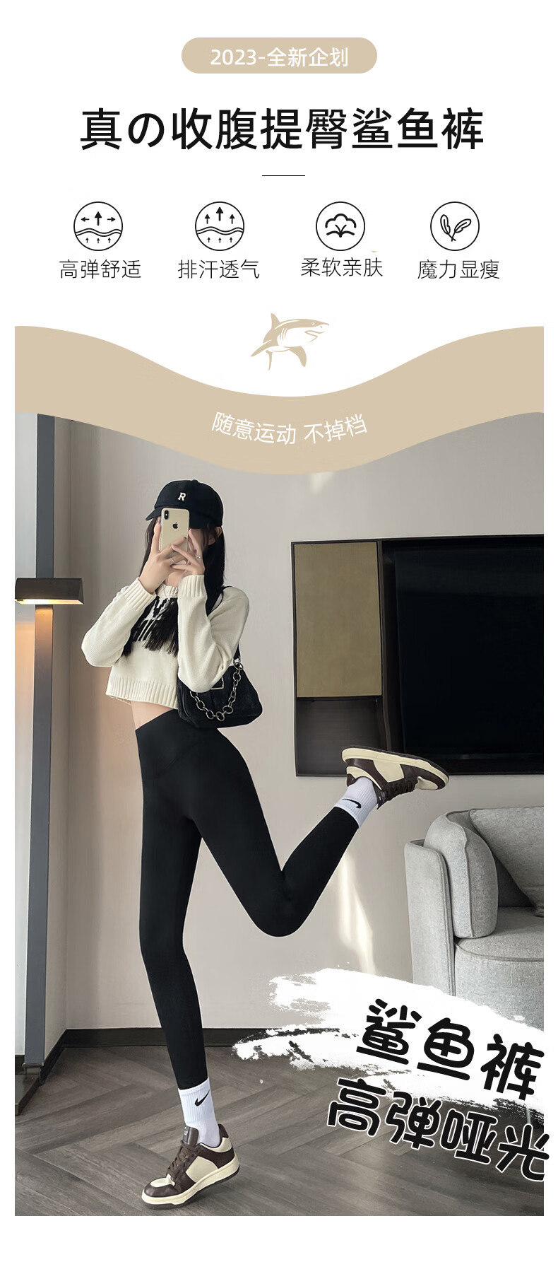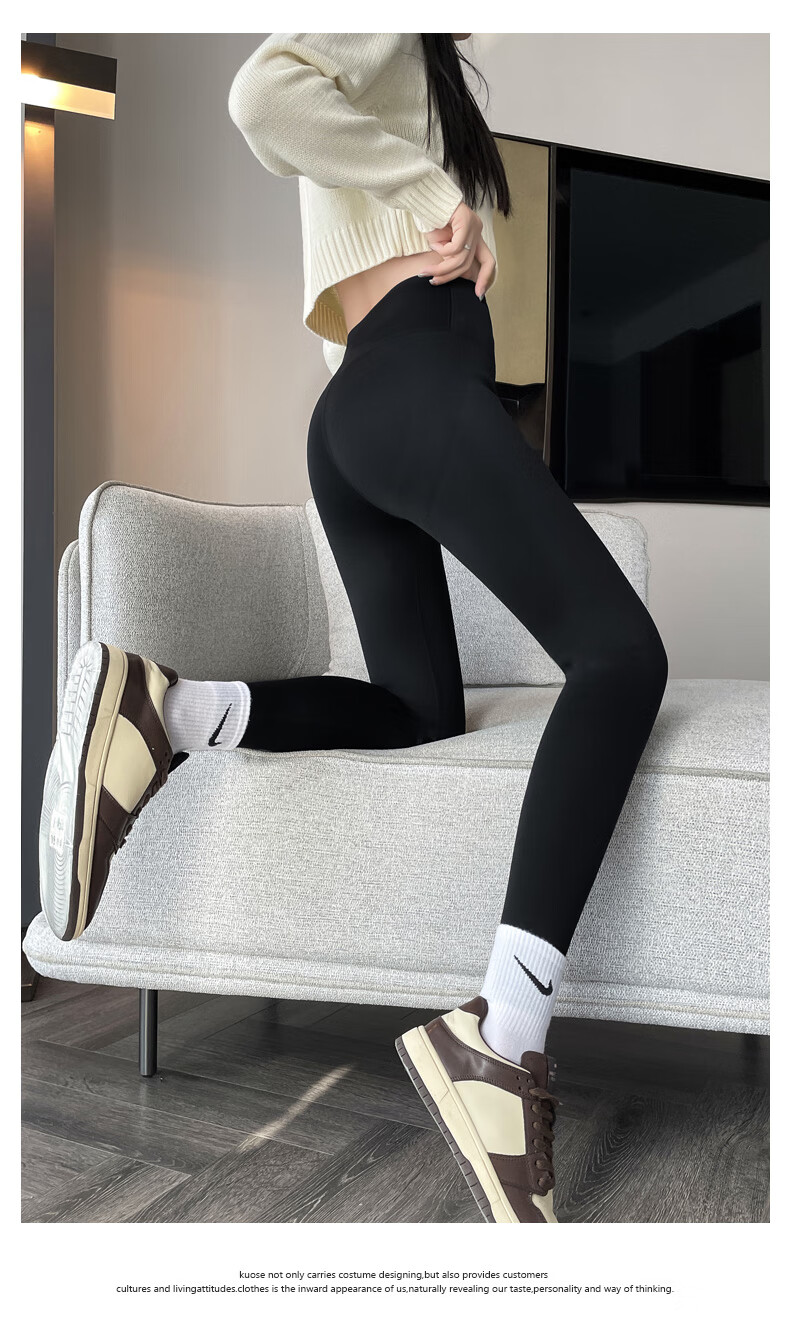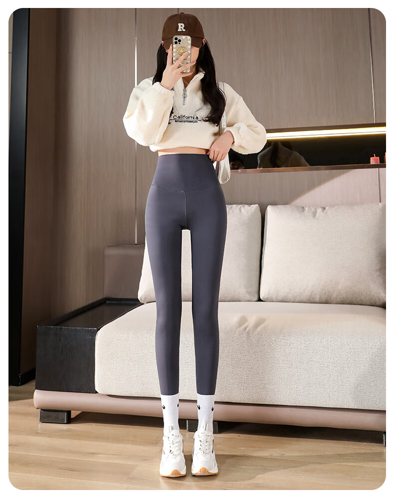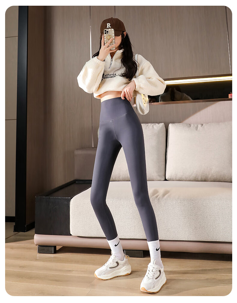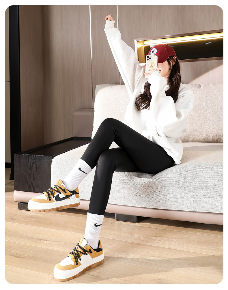 猫人(MiiOW)【蜜桃臀打底裤】加绒鲨鱼裤秋冬加厚提臀紧身裤高腰收腹打底裤 羊羔绒鲨鱼裤【加绒加厚】黑色 M