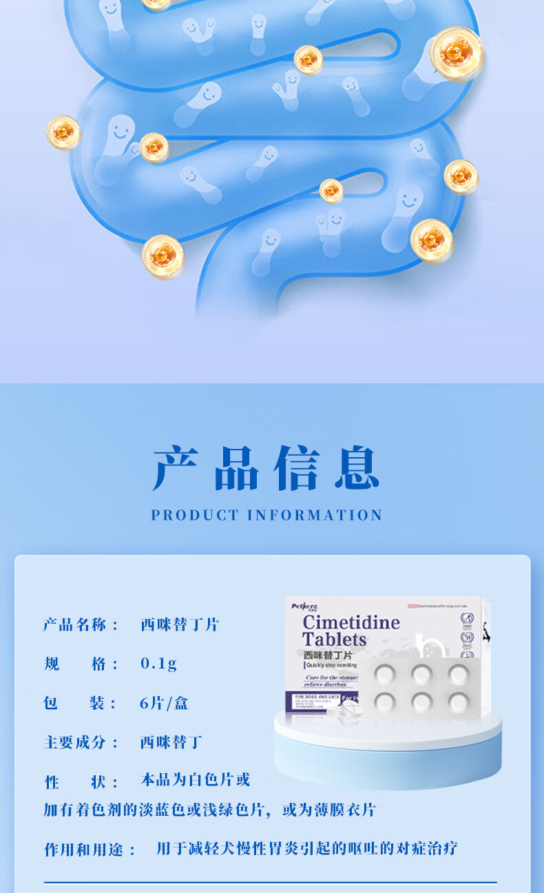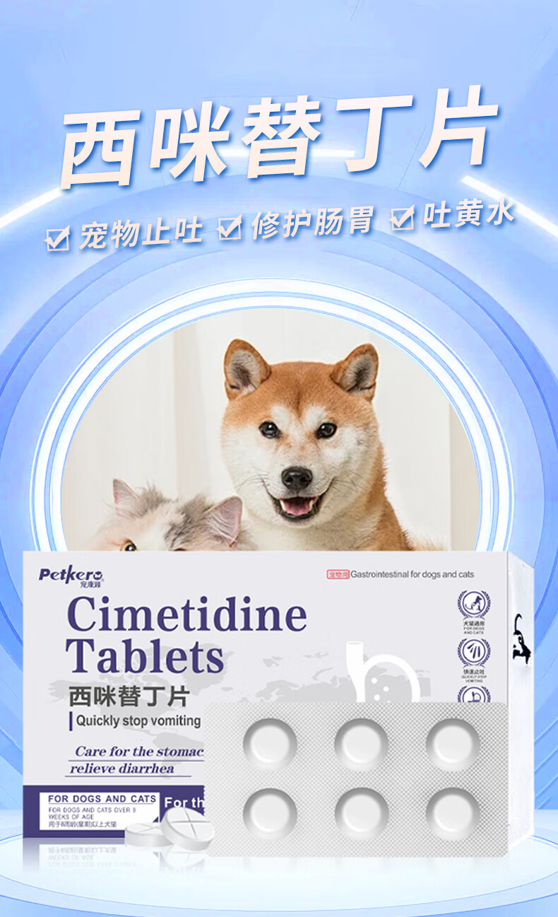 宠康源宠物用西咪替丁片猫咪犬狗止吐药呕吐黄水吐白沫肠胃炎症西米替丁 肠炎呕吐套餐