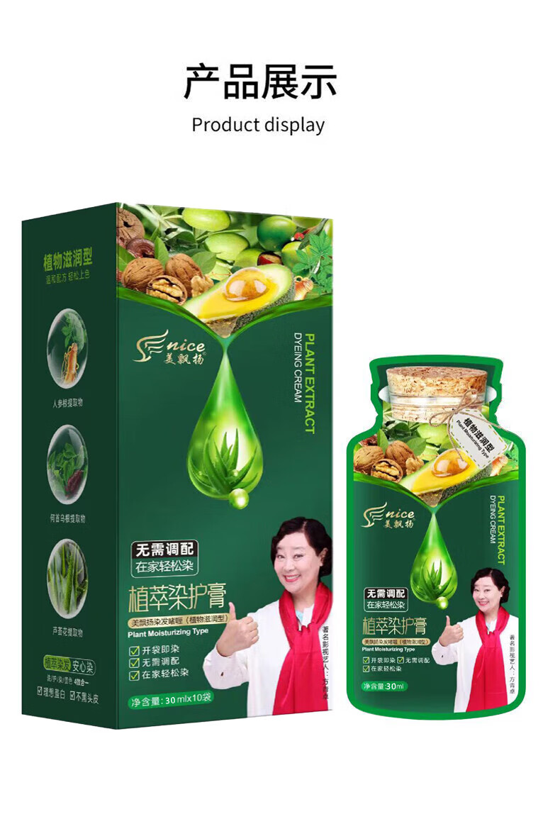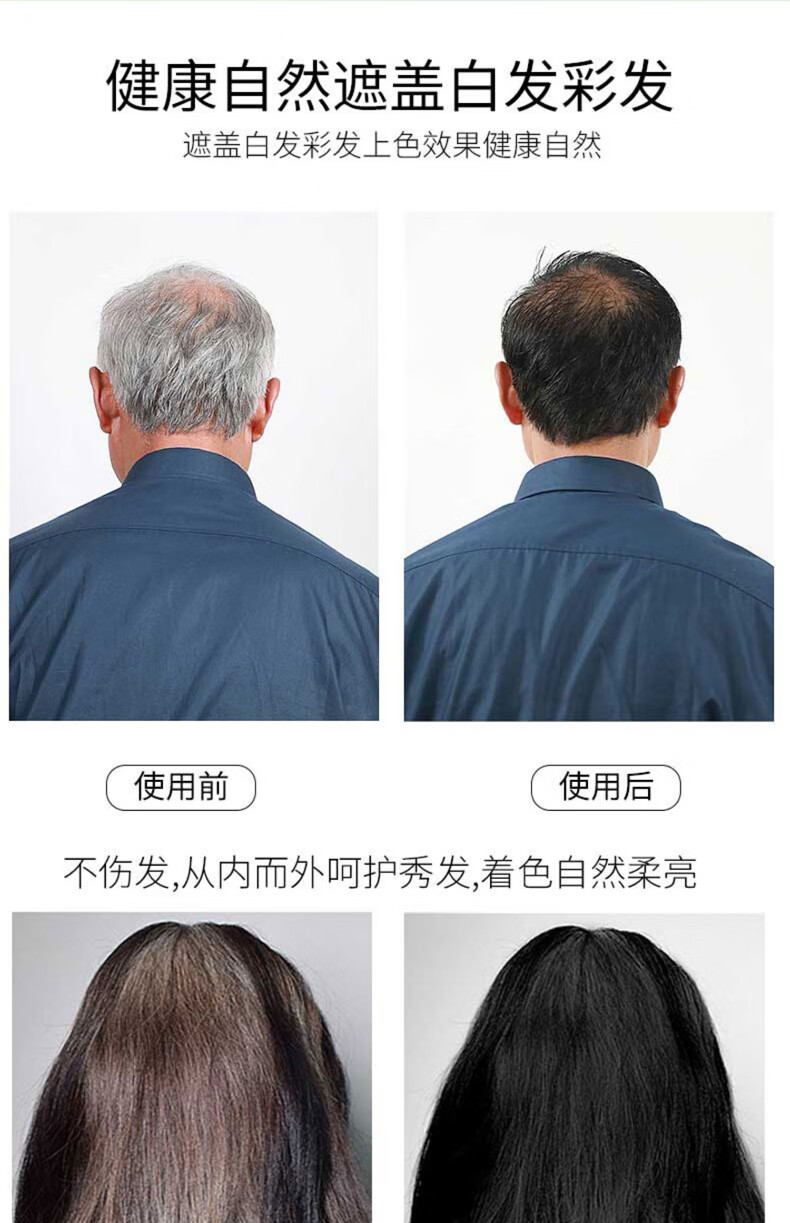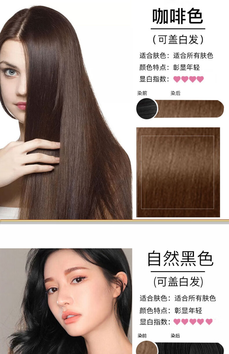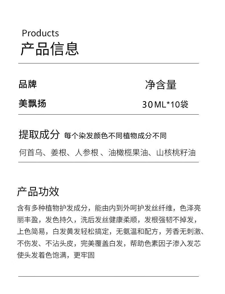 美飘扬染发膏植物纯一洗黑染发剂泡泡不沾头皮黑色然天男女士染头膏袋装 自然黑 一盒10袋-遮盖白发