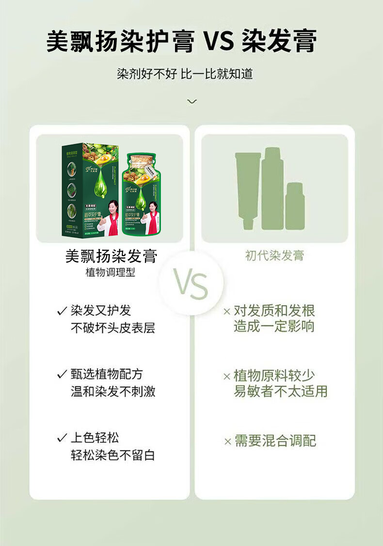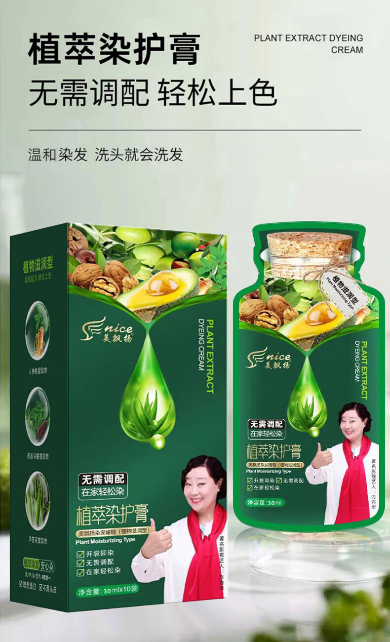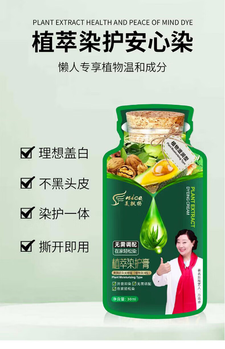 美飘扬染发膏植物纯一洗黑染发剂泡泡不沾头皮黑色然天男女士染头膏袋装 自然黑 一盒10袋-遮盖白发