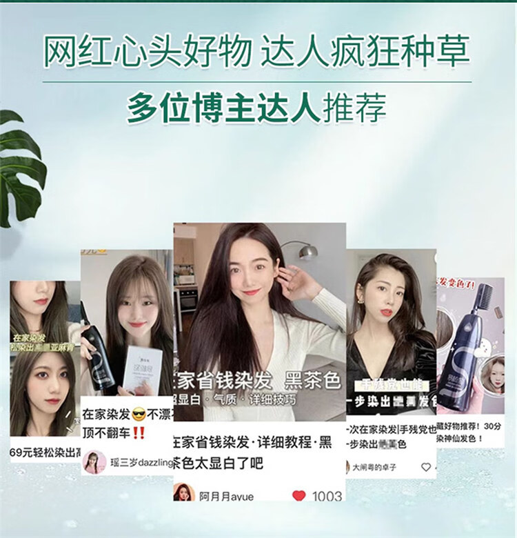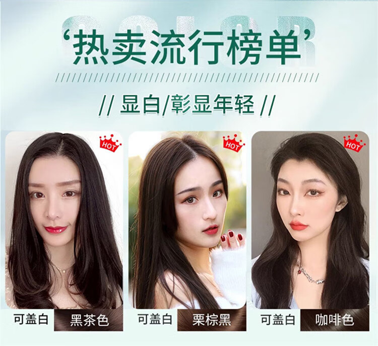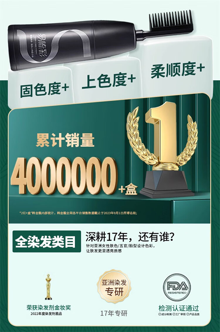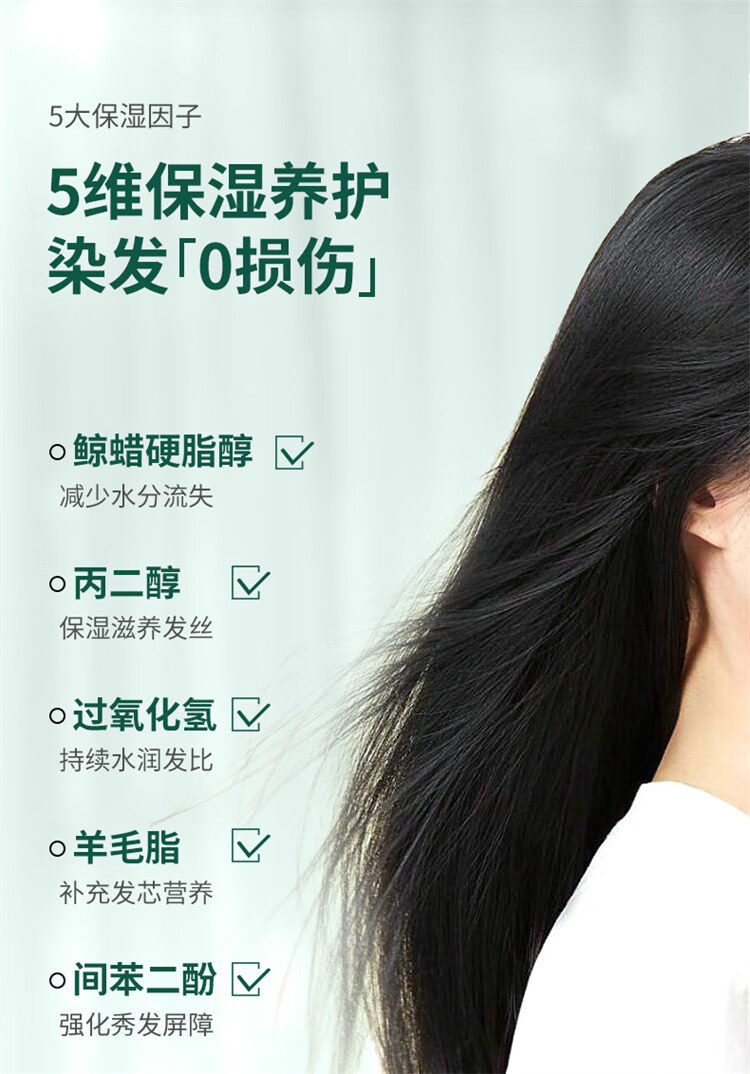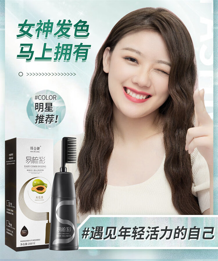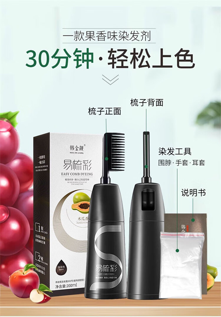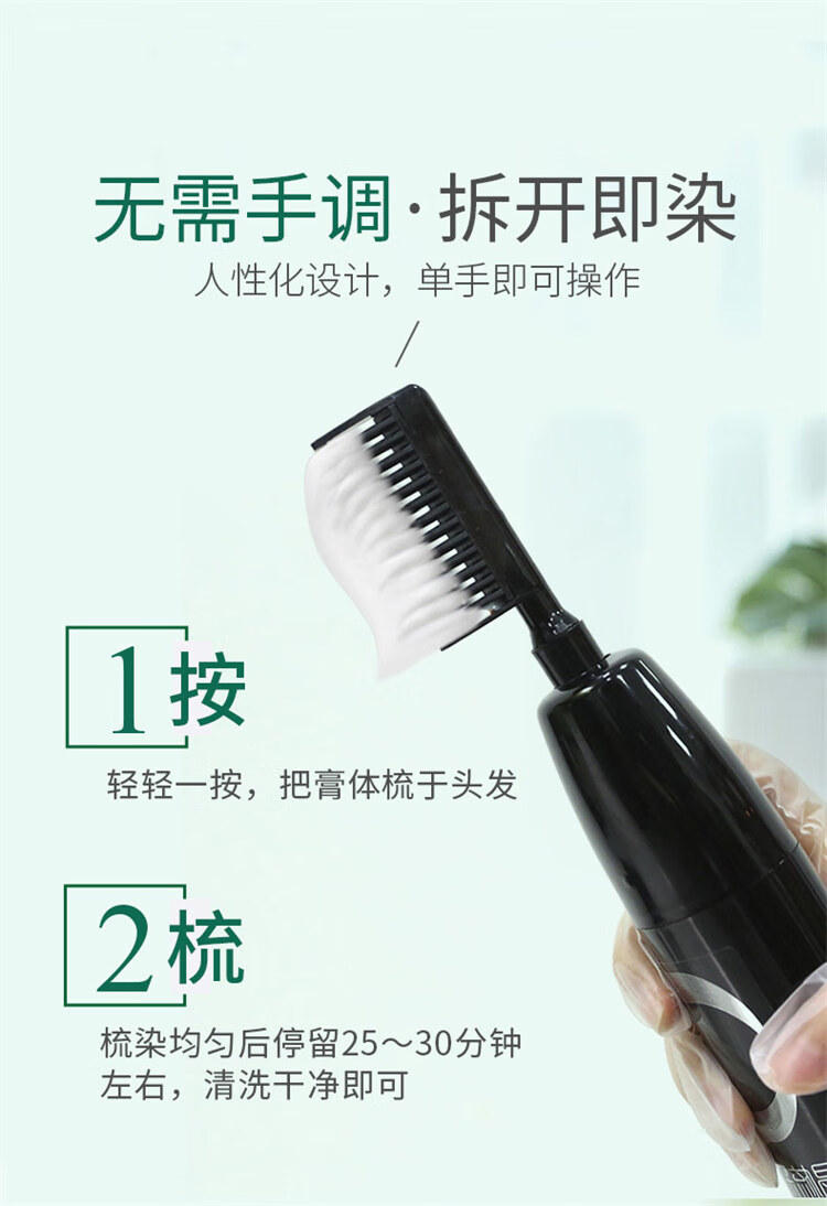 韩金靓染发梳植物纯免漂自己在家染发剂盖白头发不沾非泡泡染男女士专用 自然黑 180ml*1盒 【可盖白发】