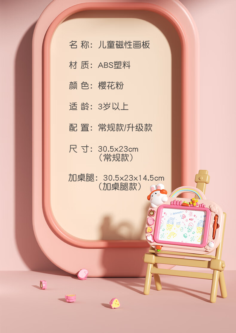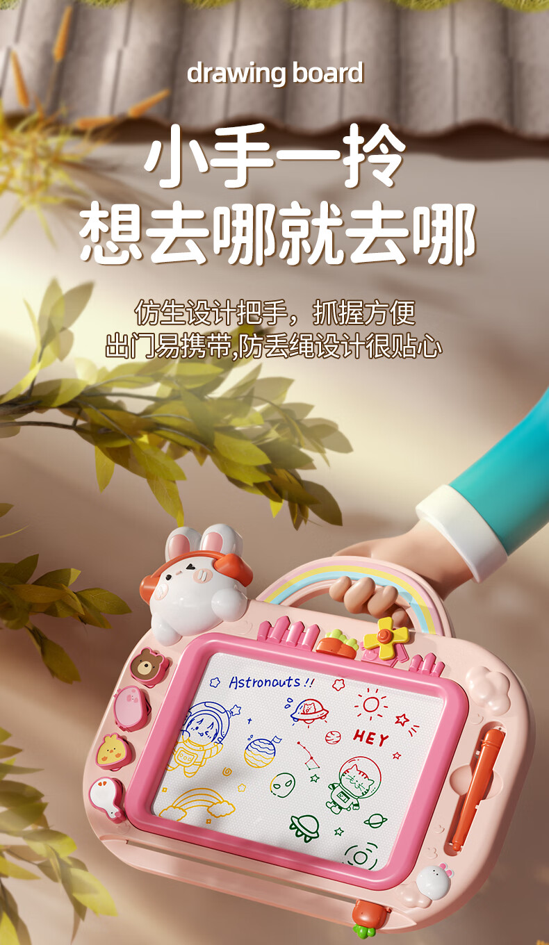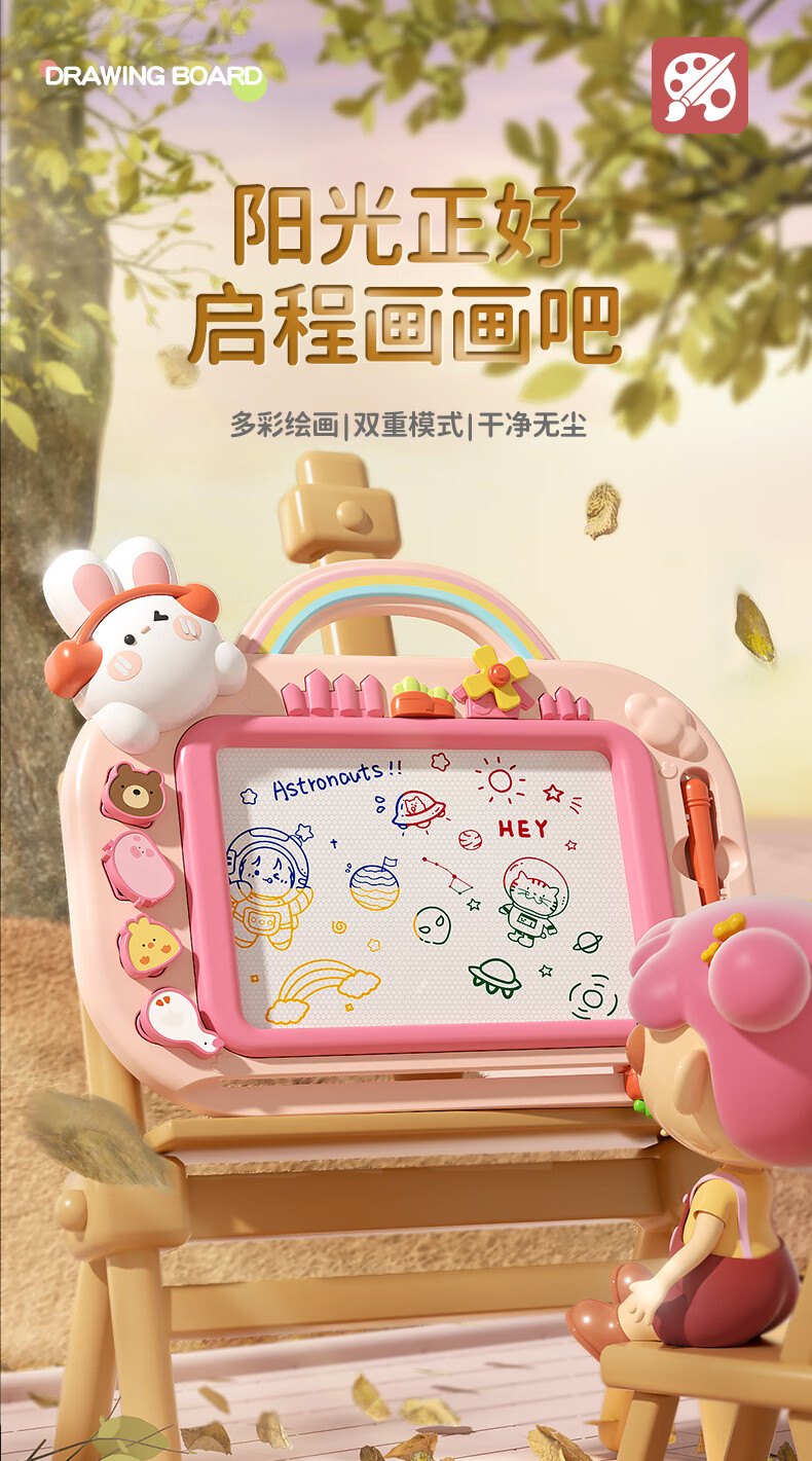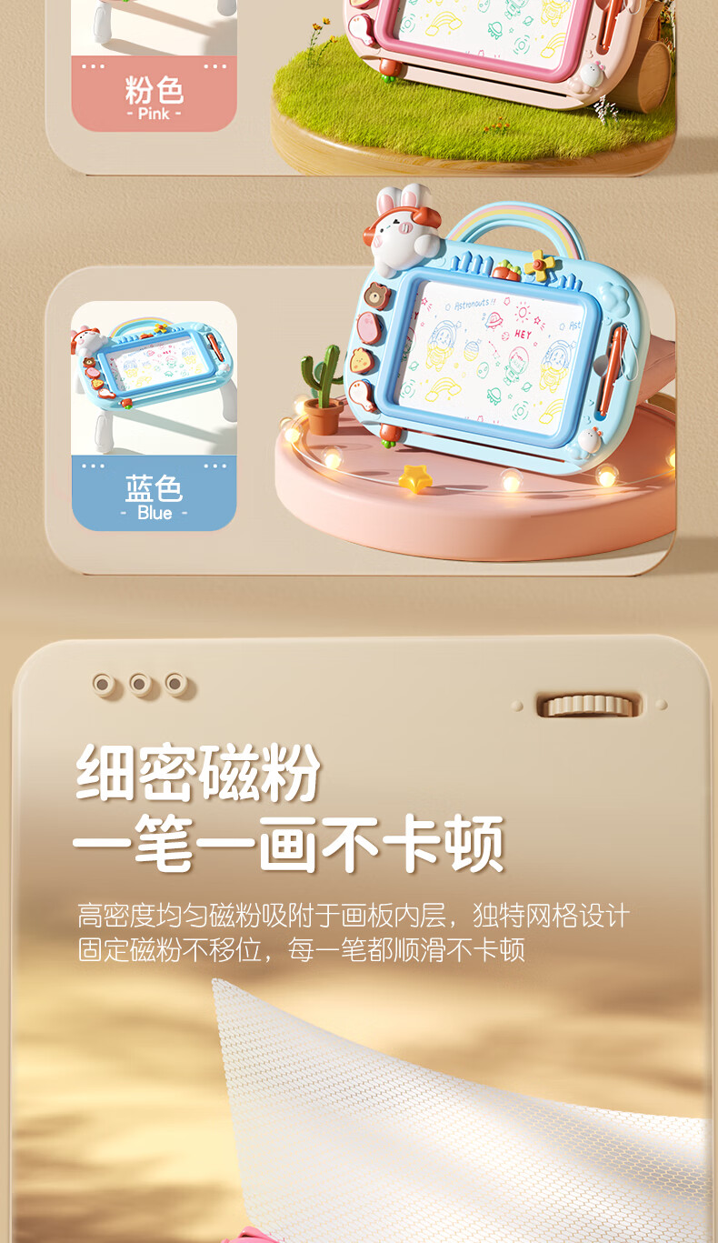 凡华抖音同款早教儿童礼物磁性画板家用婴幼儿写字板宝宝涂鸦画画玩具 萌蓝免画板-进阶支架款(送工具)