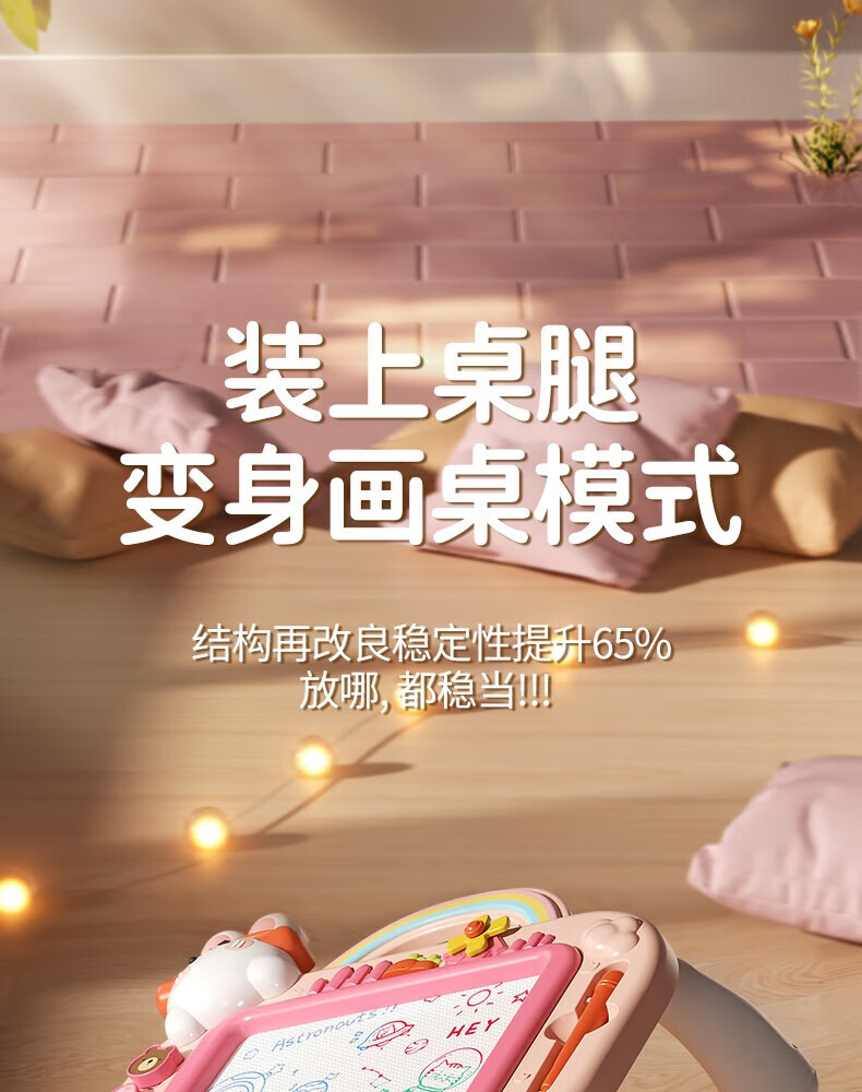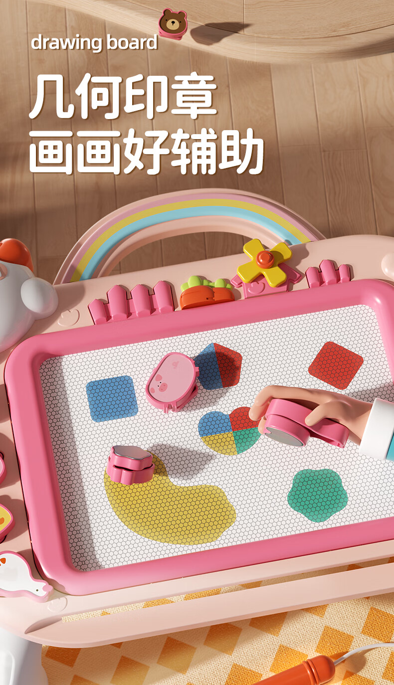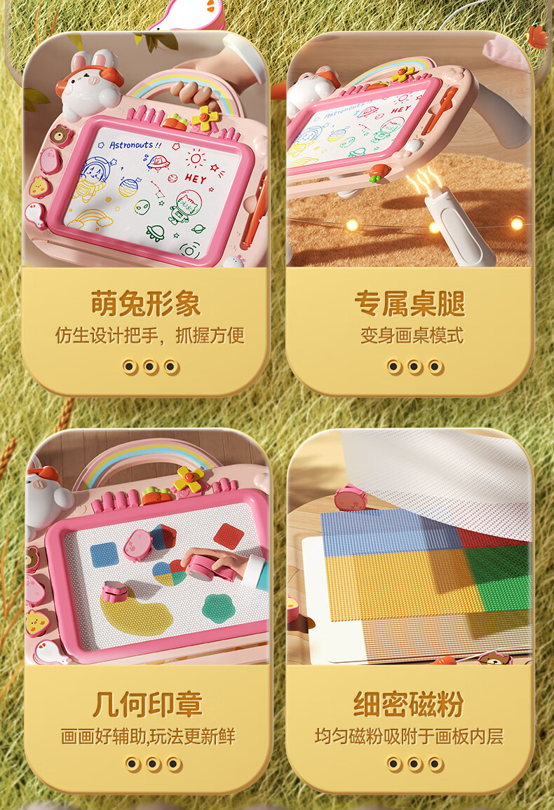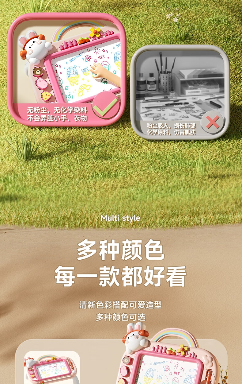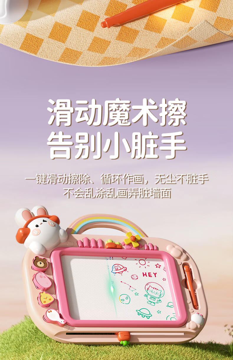 凡华抖音同款早教儿童礼物磁性画板家用婴幼儿写字板宝宝涂鸦画画玩具 萌蓝免画板-进阶支架款(送工具)