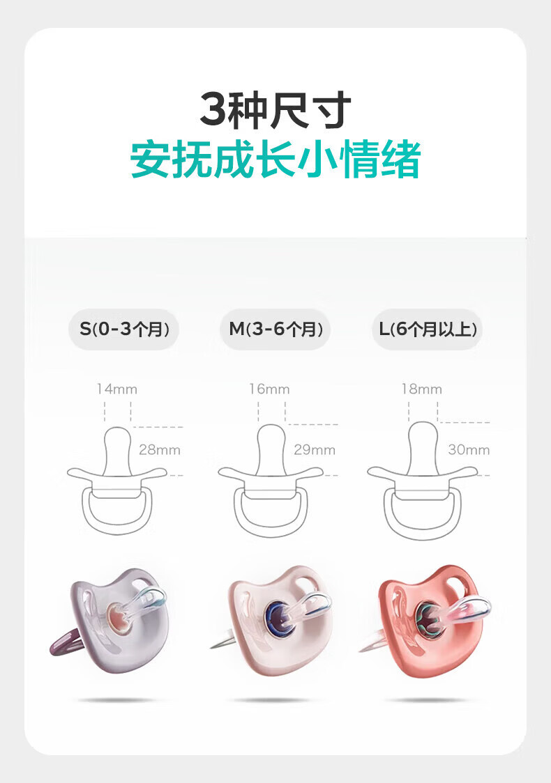 babycare 3安抚奶嘴新生婴儿宝宝软防胀气睡觉神器 【L】 6-18个月 1个装 潘帕斯