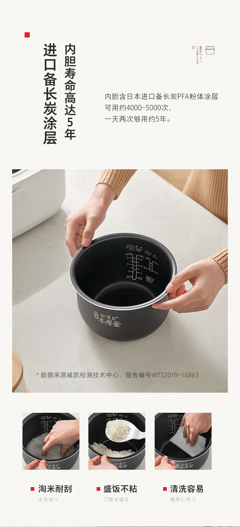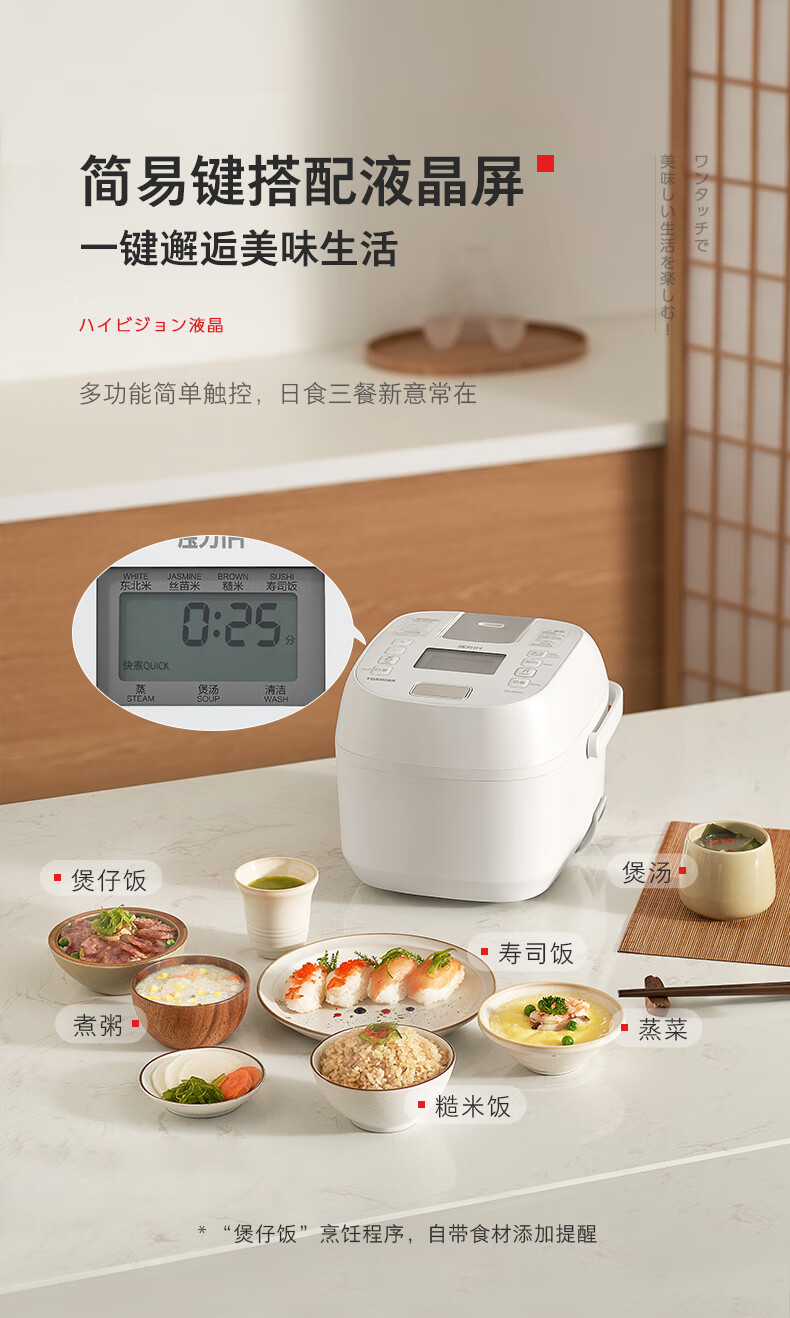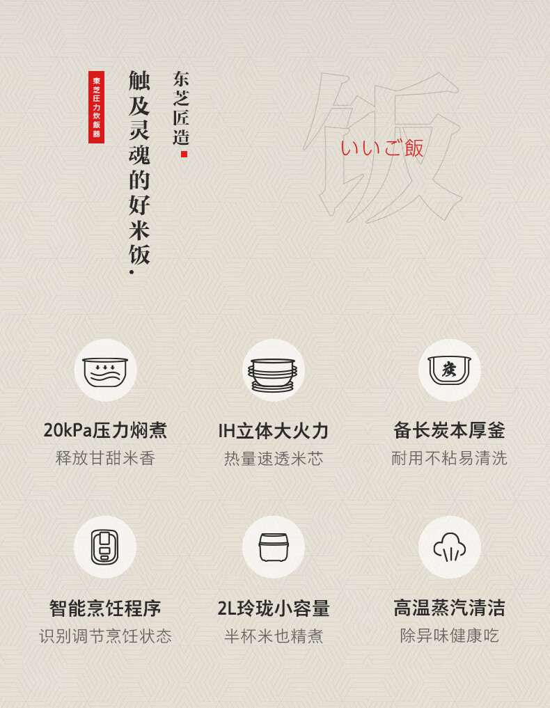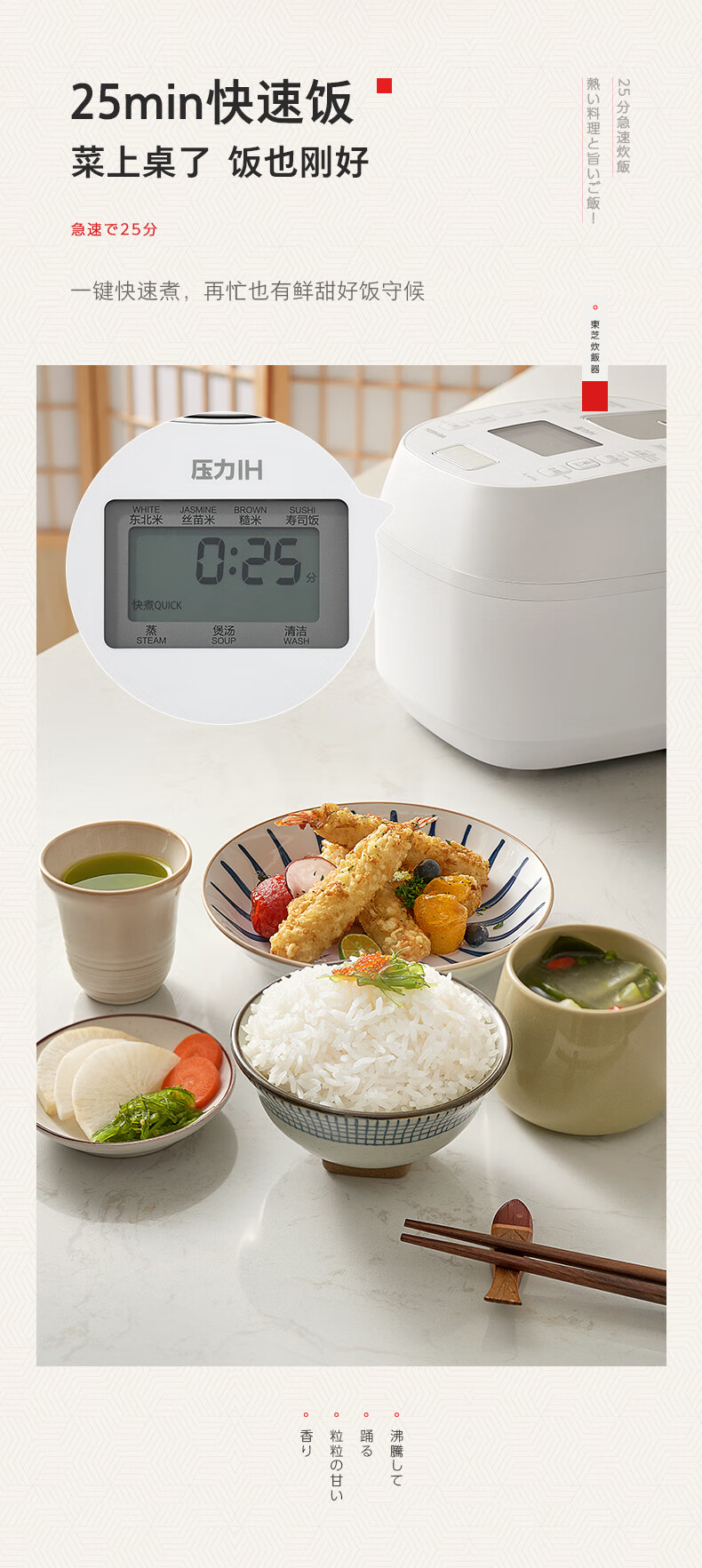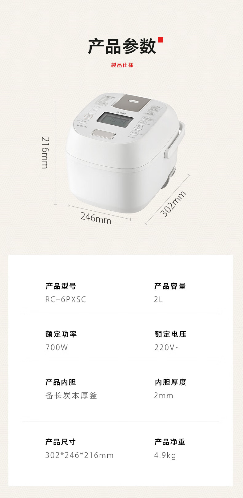 东芝(TOSHIBA)小白桃0涂层迷你鲜饭煲 进口不沾涂层 多功能家用智能IH加热微压力小型电饭锅1-2人线下 日本同款 RC-6PXSC【微压焖香】 2L