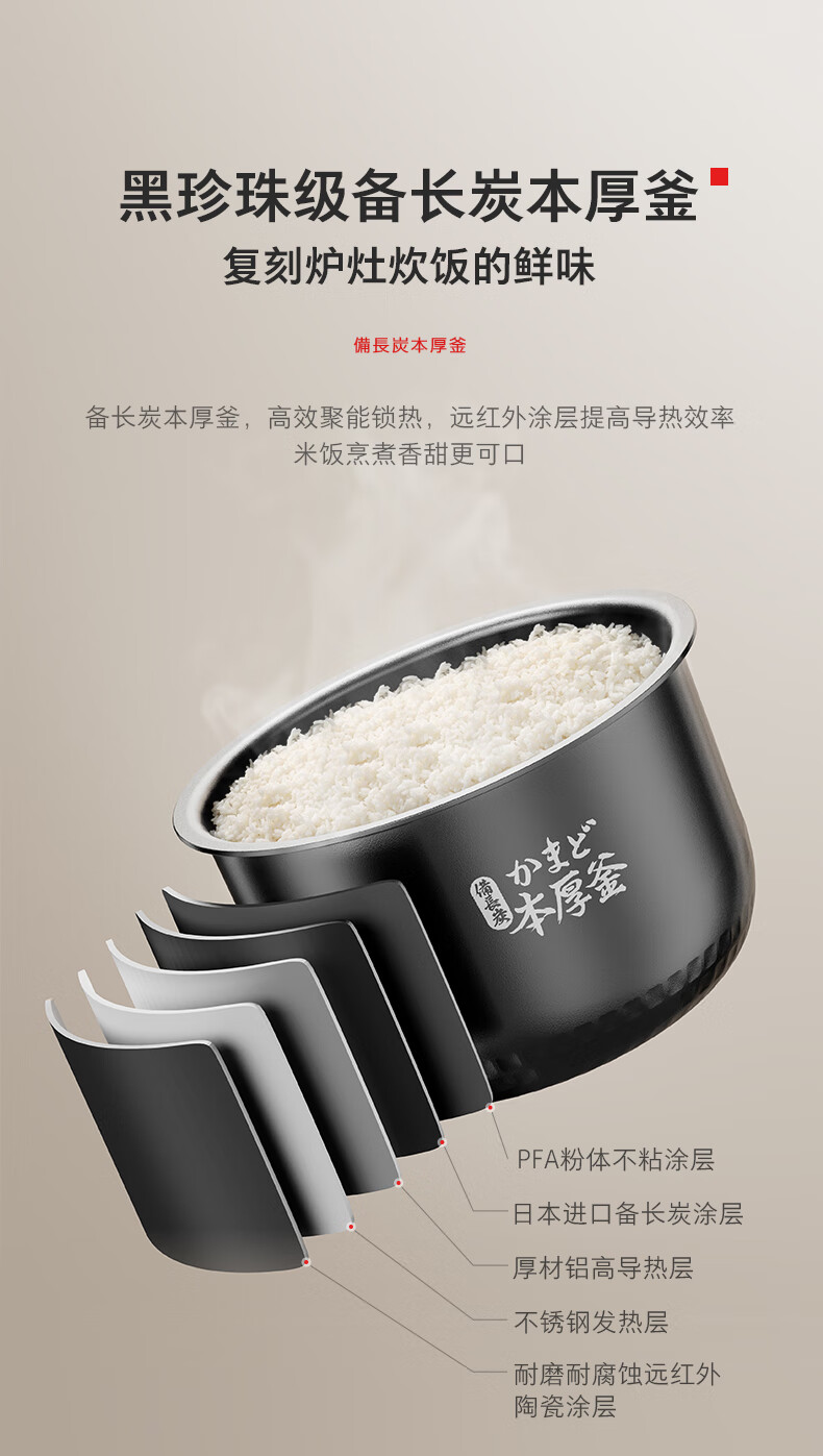 松下(Panasonic)【国家补贴】电饭煲5-6人家用智能预约电饭锅多功能煮饭不粘锅备长炭4.8升容量以旧换新SR-DP187-N