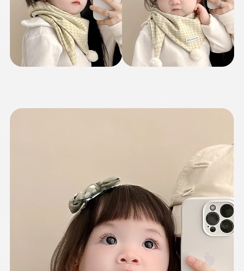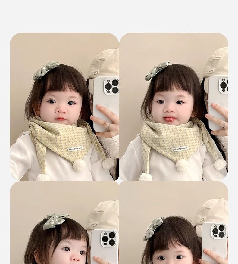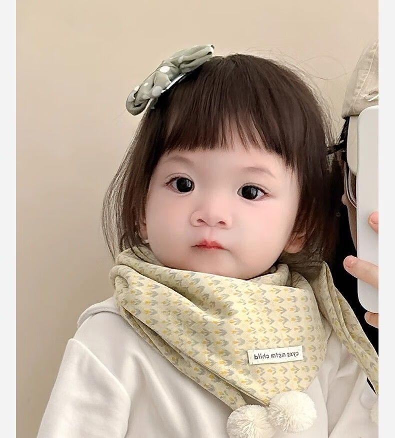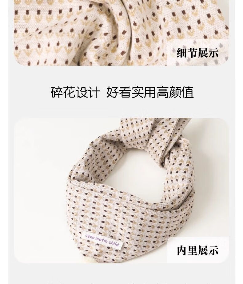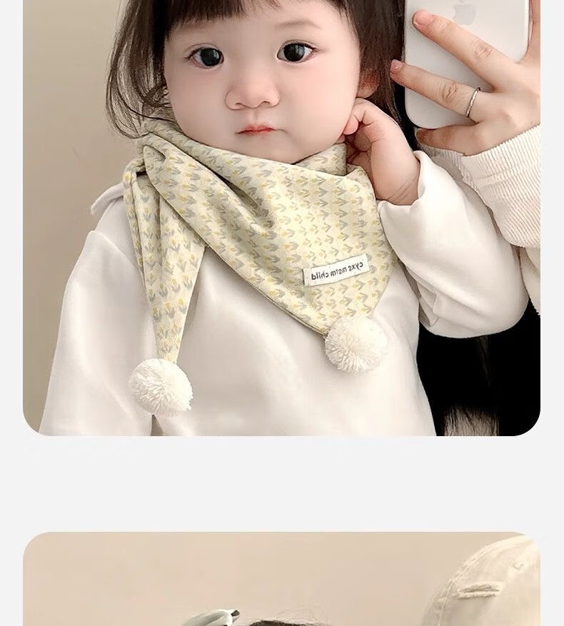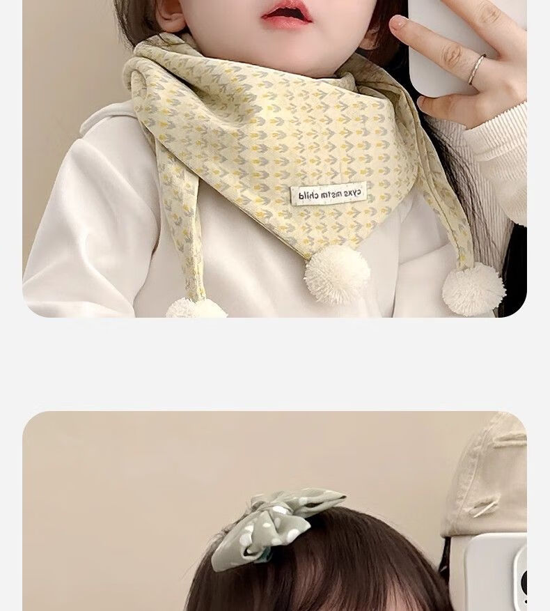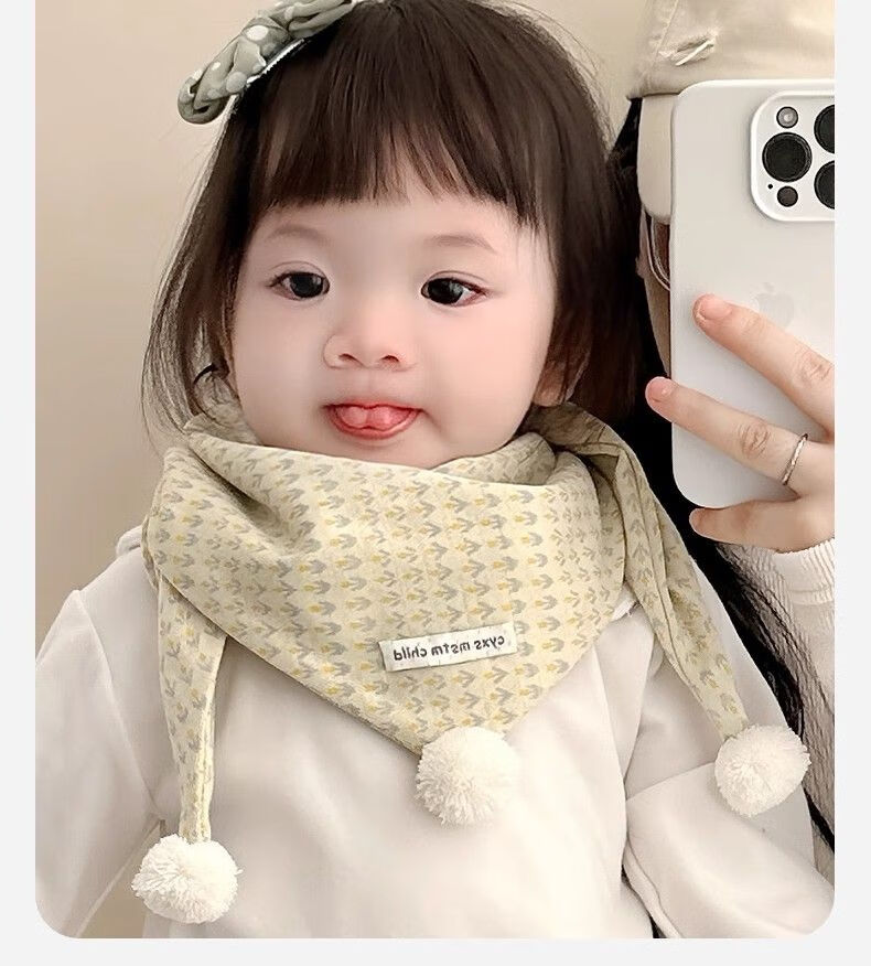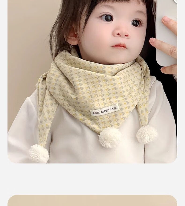 G.duck小黄鸭儿童围巾秋冬季婴儿保暖围脖宝宝防风三角巾男童女宝百搭可 小花白标三角巾 黄色 1-8岁