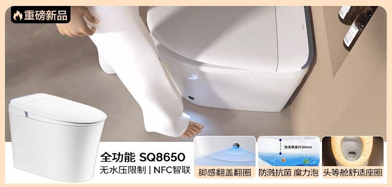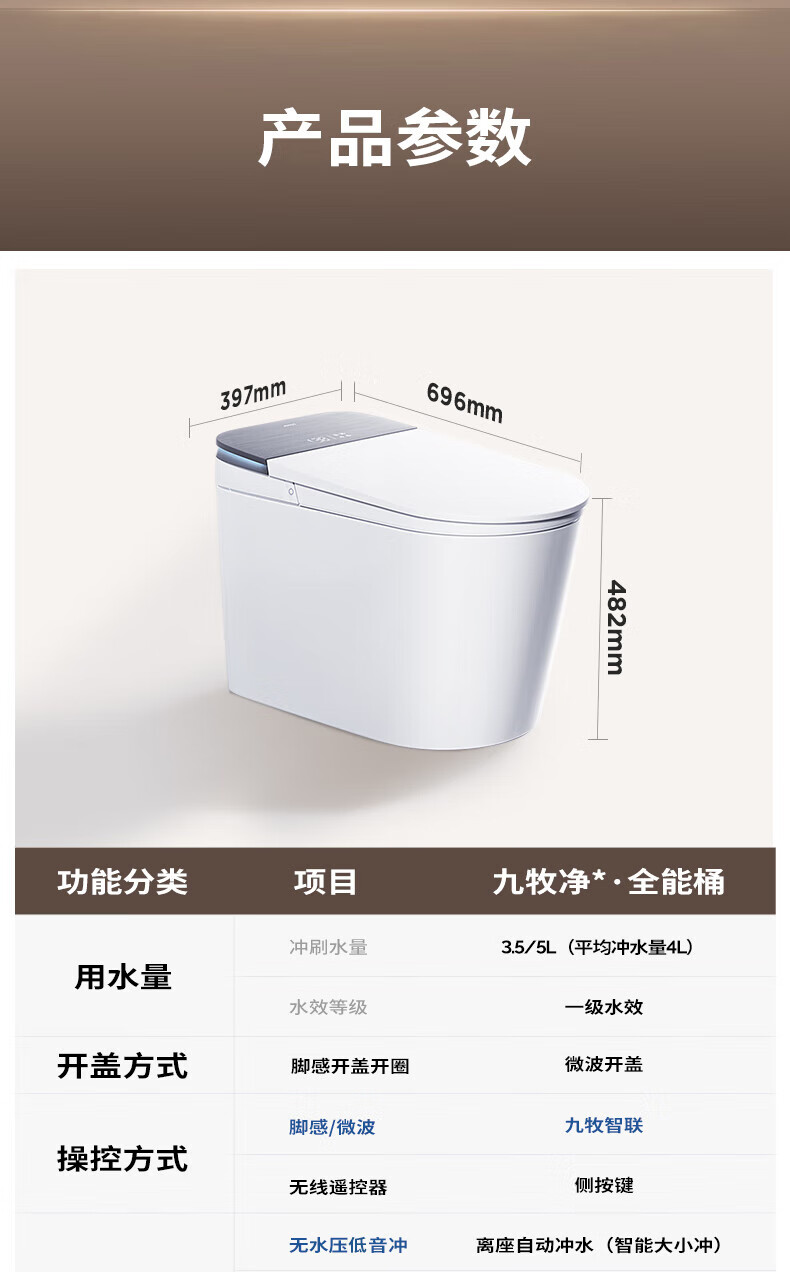 九牧(JOMOO)净界智能马桶S8家用马桶感应翻盖除臭虹吸坐便器无水压限制 ZS800I 305坑距【290-390以内选择】