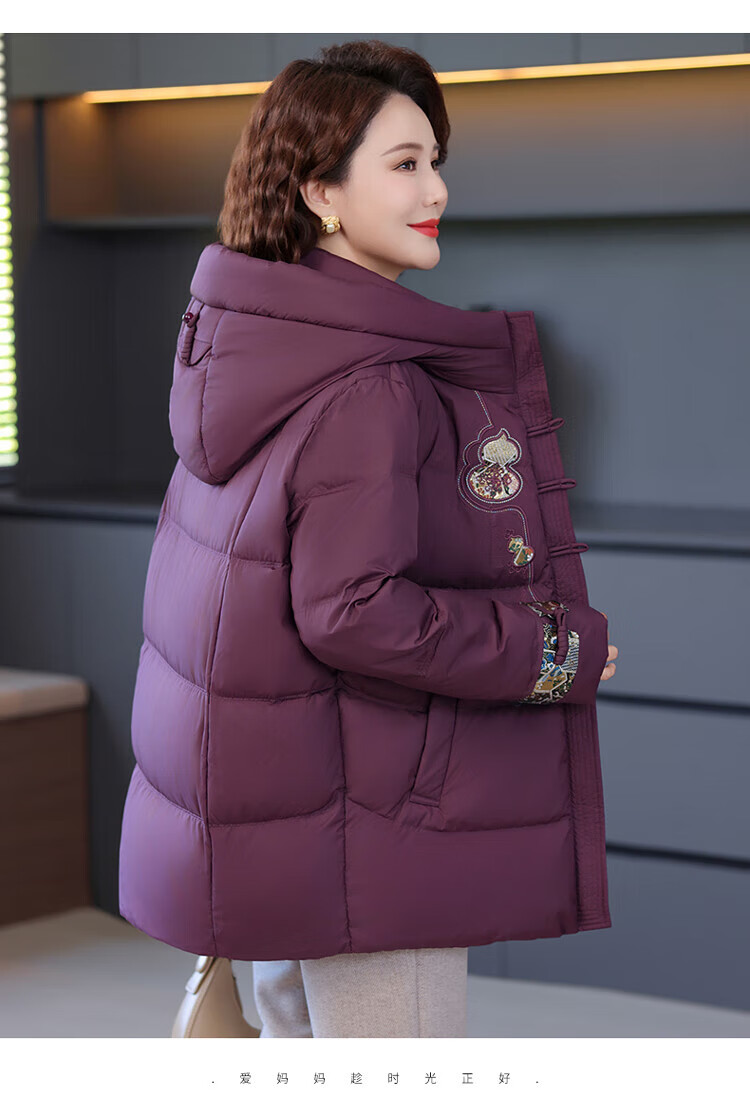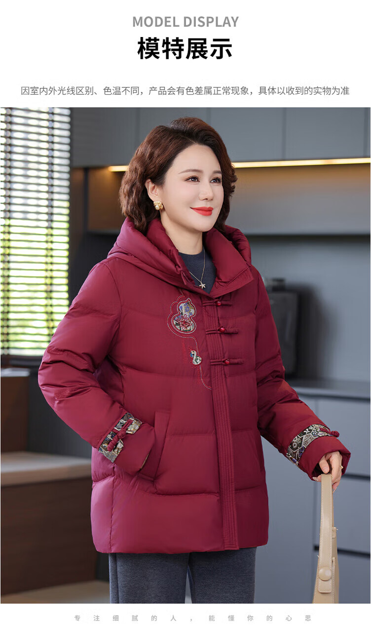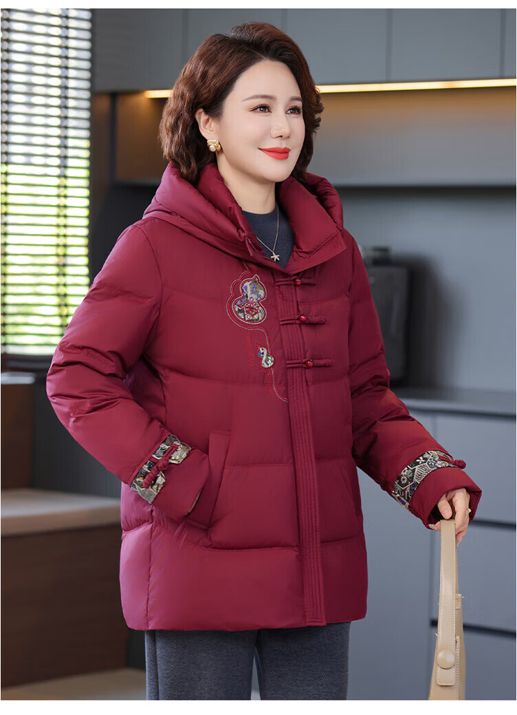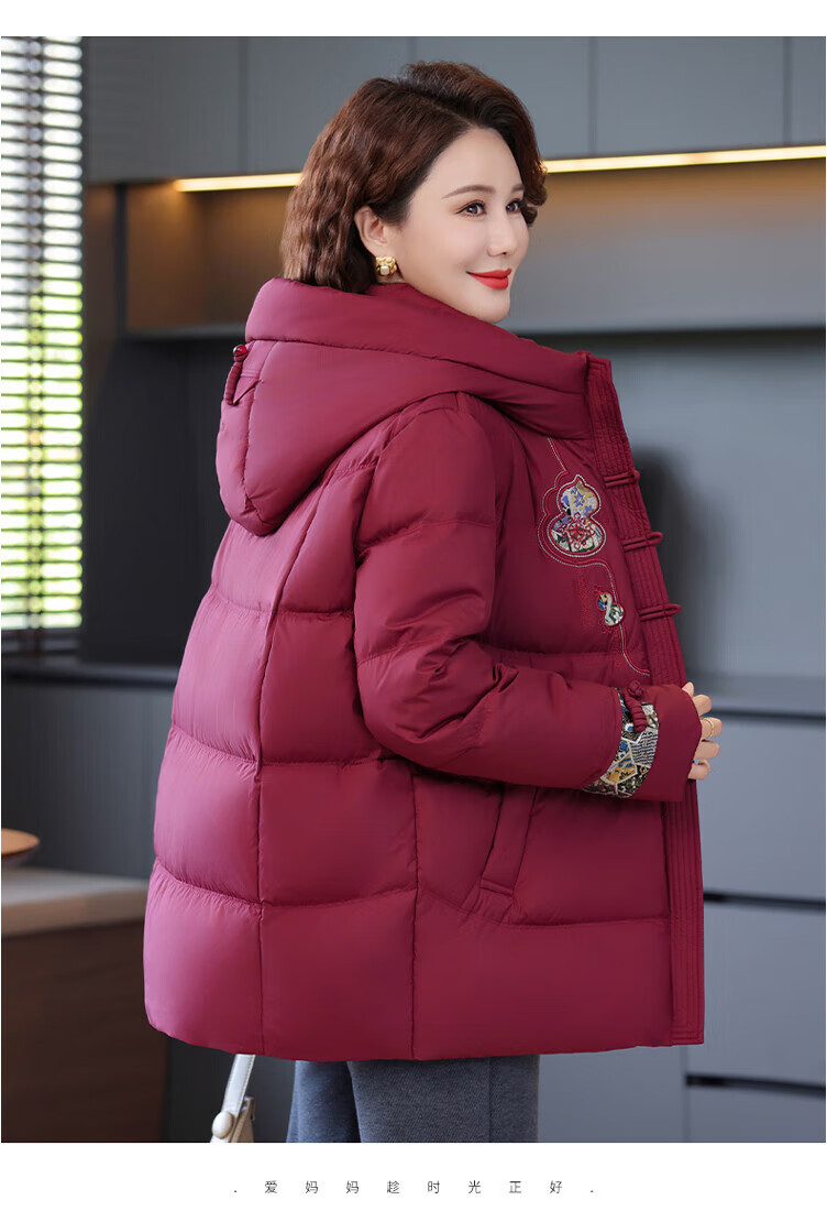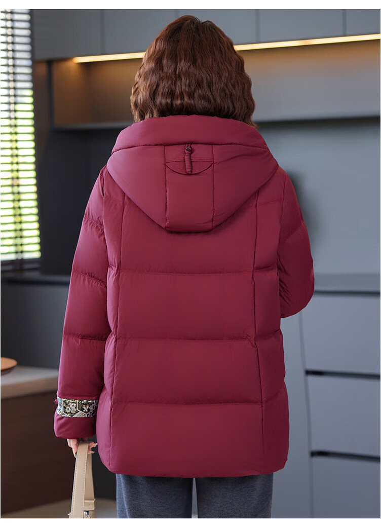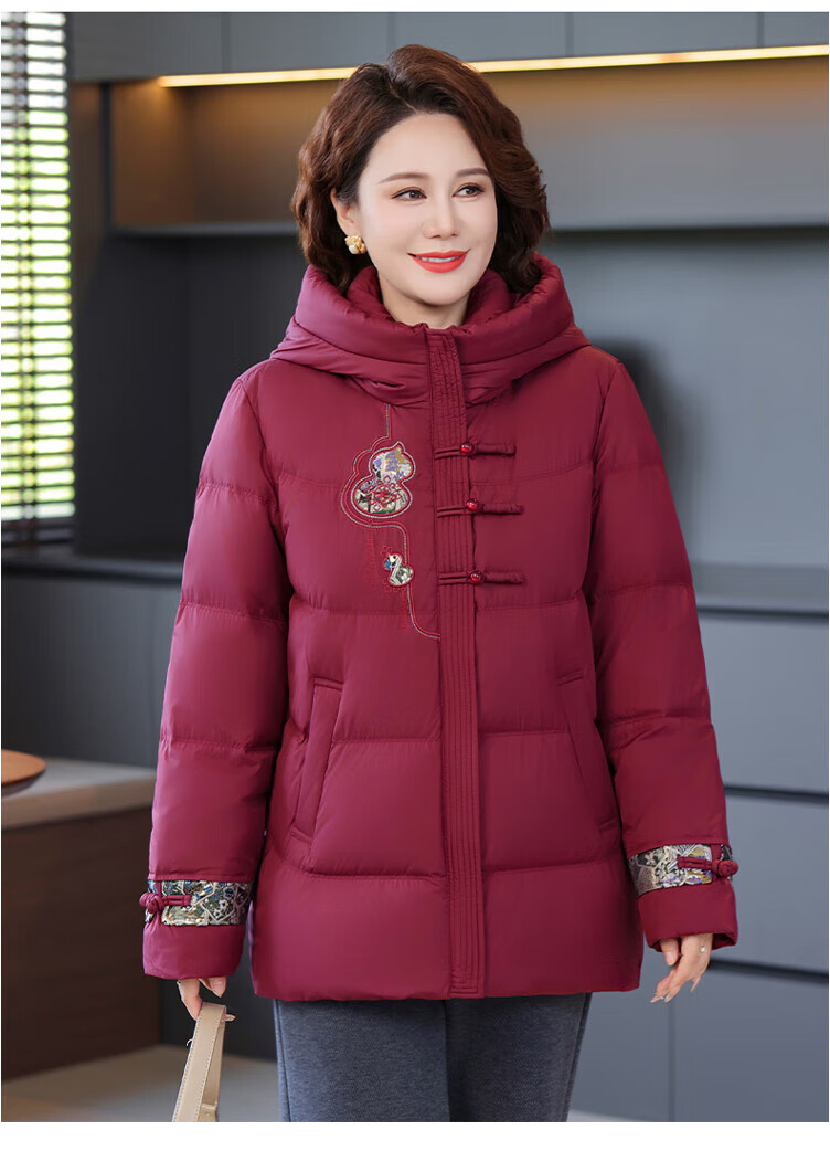 雪中飞羽绒服女2025冬季短款翻领宽松连帽保暖外套妈妈装35253 枣红色 L (170) 90-110斤