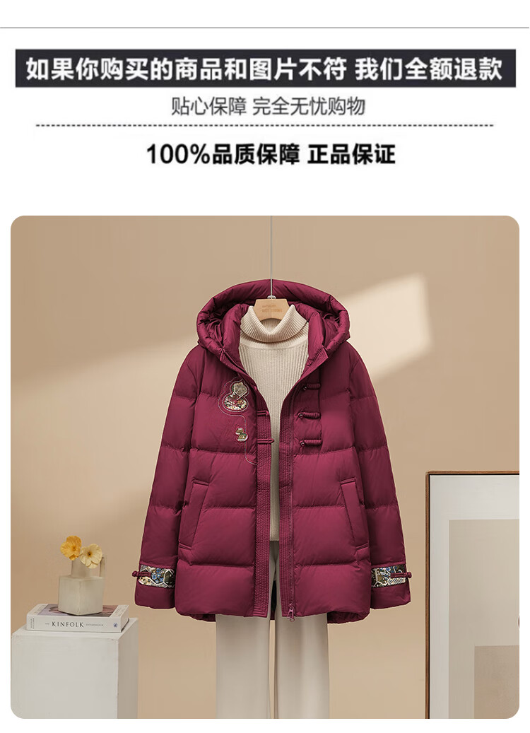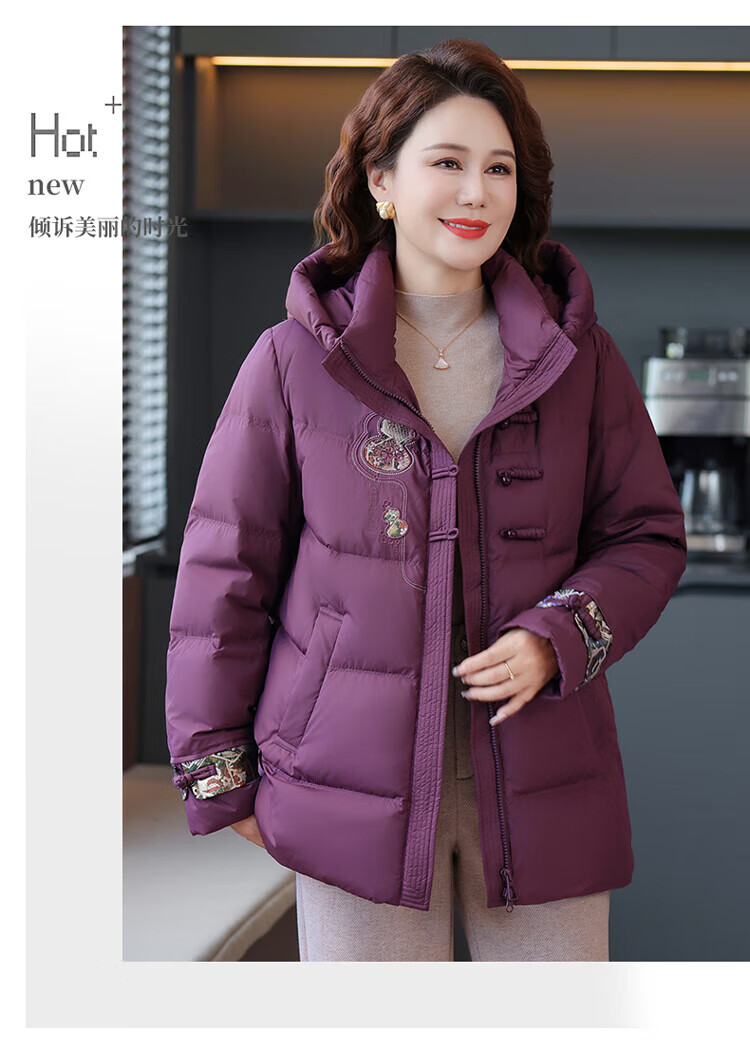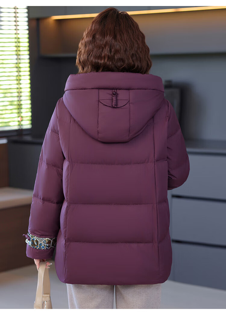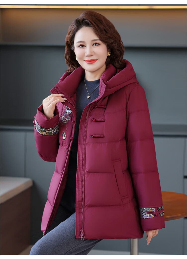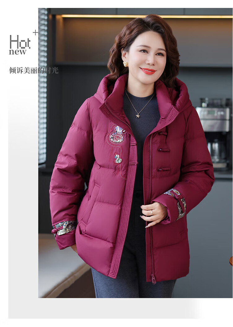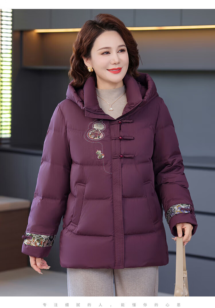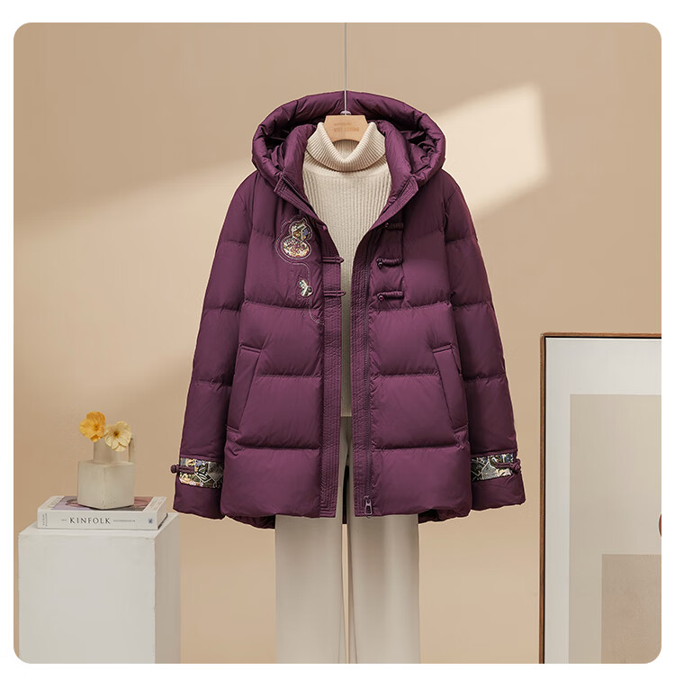 雪中飞羽绒服女2025冬季短款翻领宽松连帽保暖外套妈妈装35253 枣红色 L (170) 90-110斤