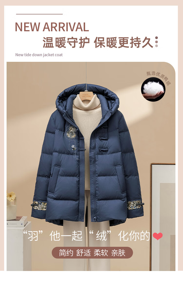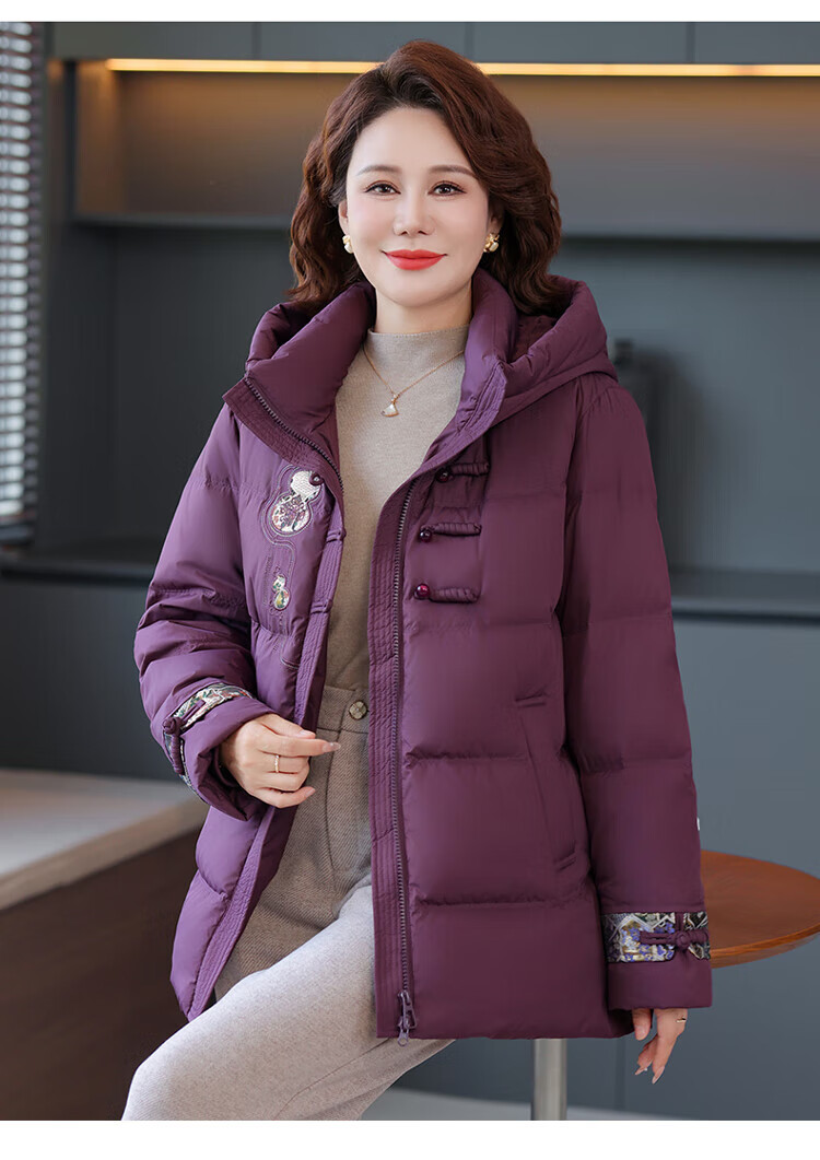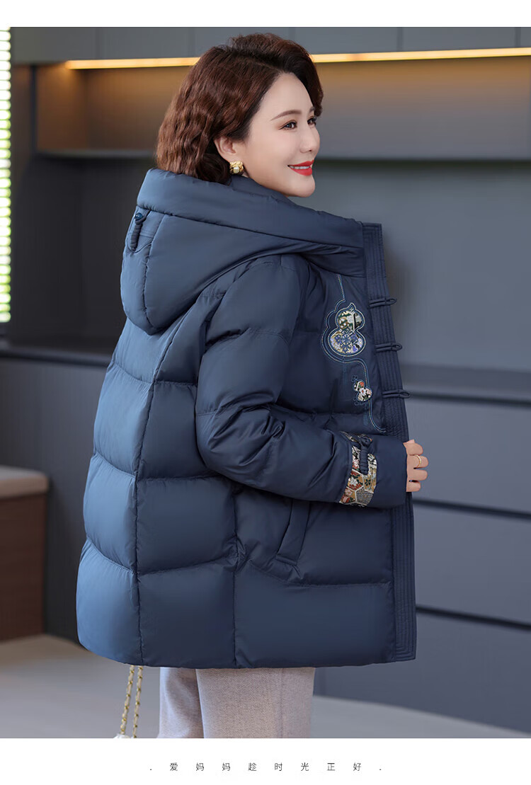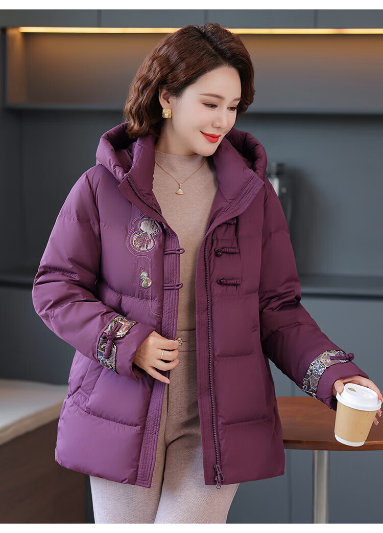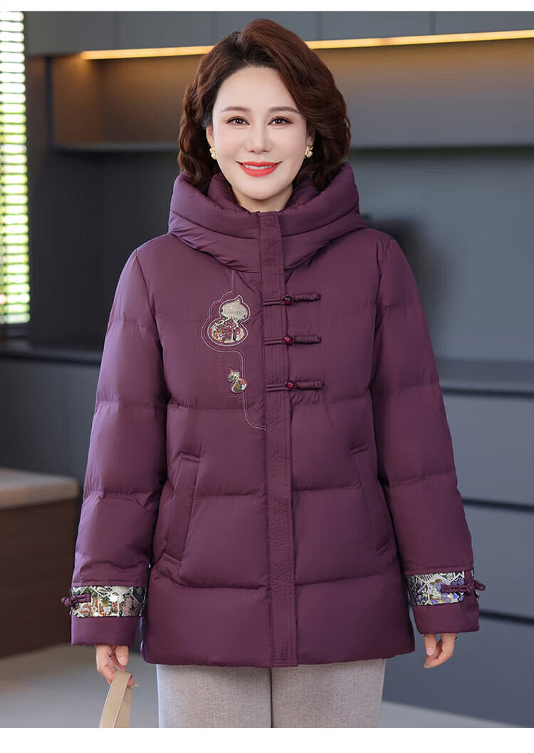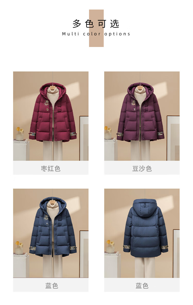 雪中飞羽绒服女2025冬季短款翻领宽松连帽保暖外套妈妈装35253 枣红色 L (170) 90-110斤