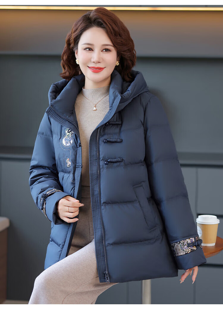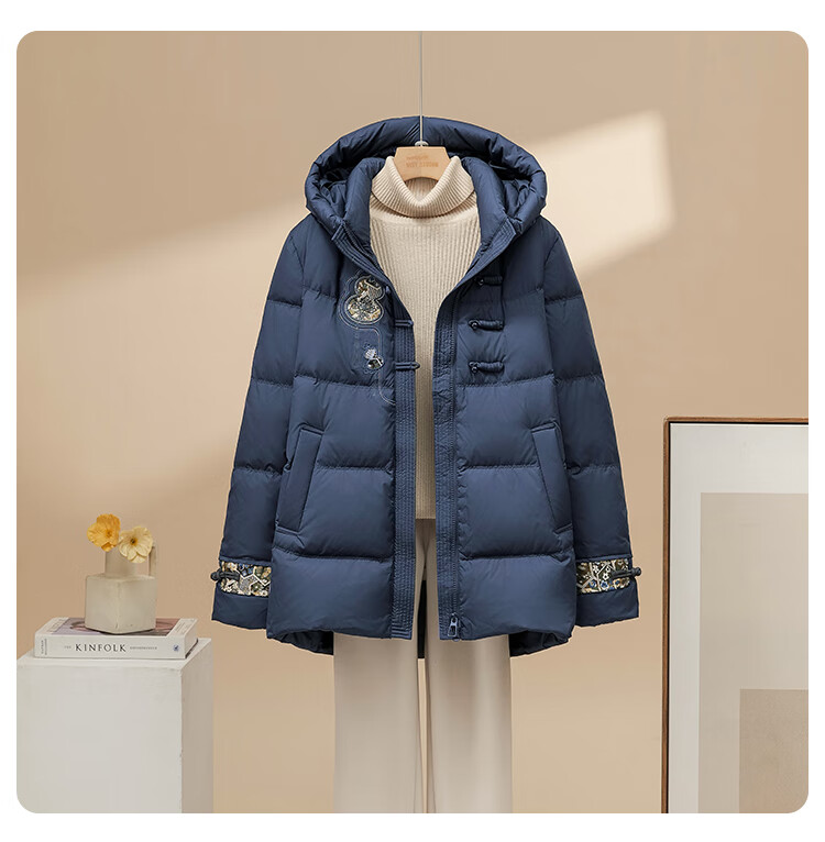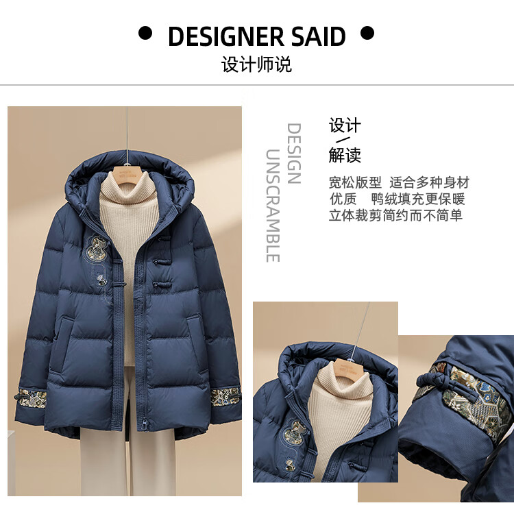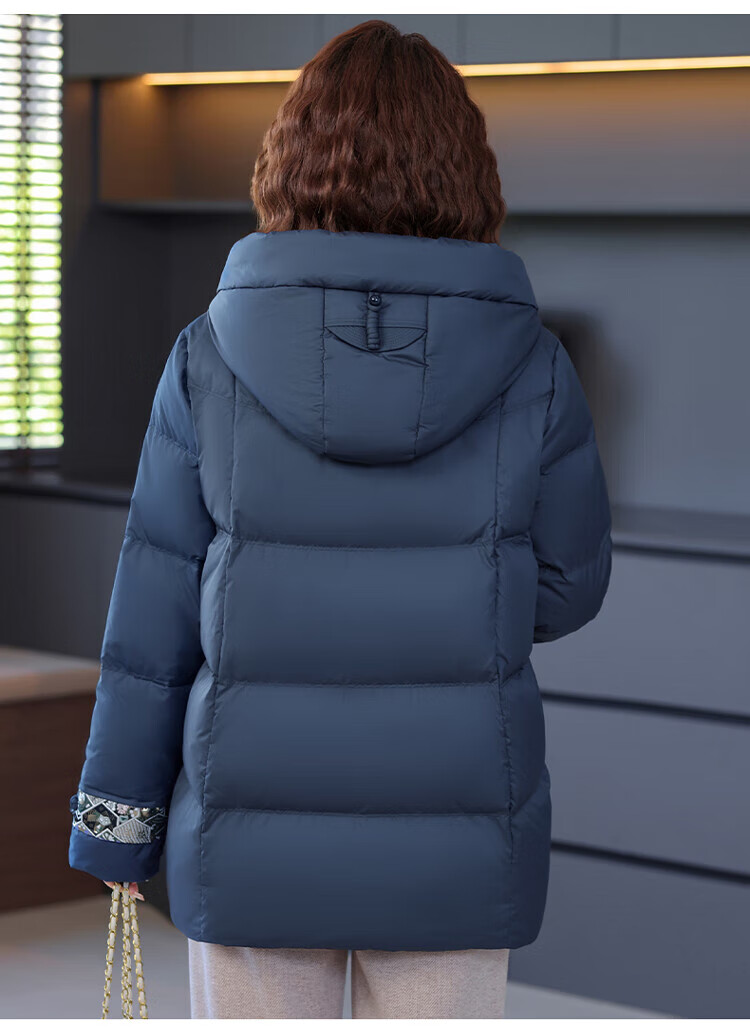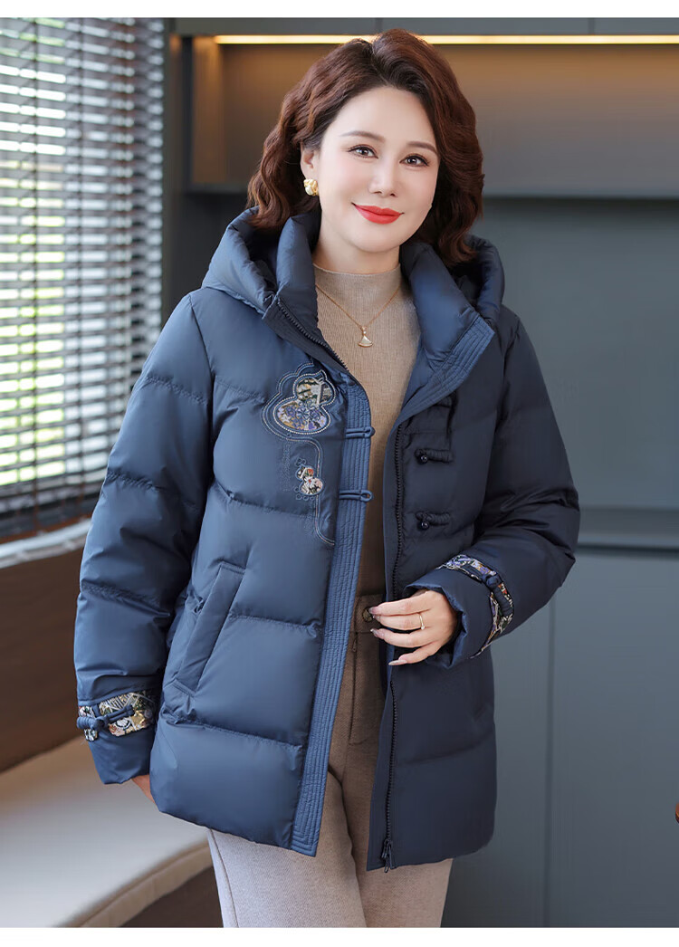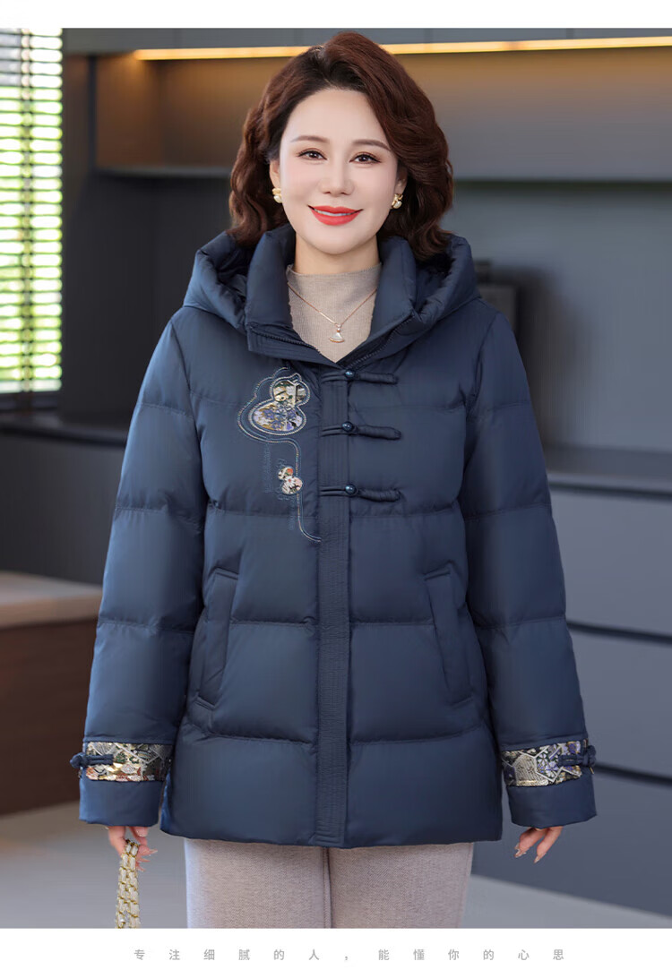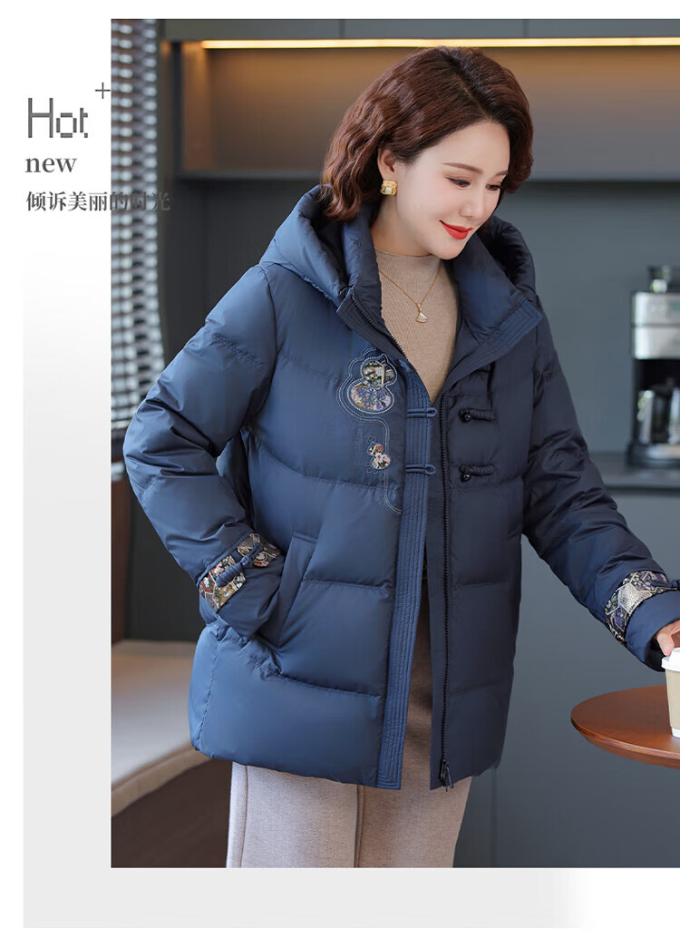 雪中飞羽绒服女2025冬季短款翻领宽松连帽保暖外套妈妈装35253 枣红色 L (170) 90-110斤
