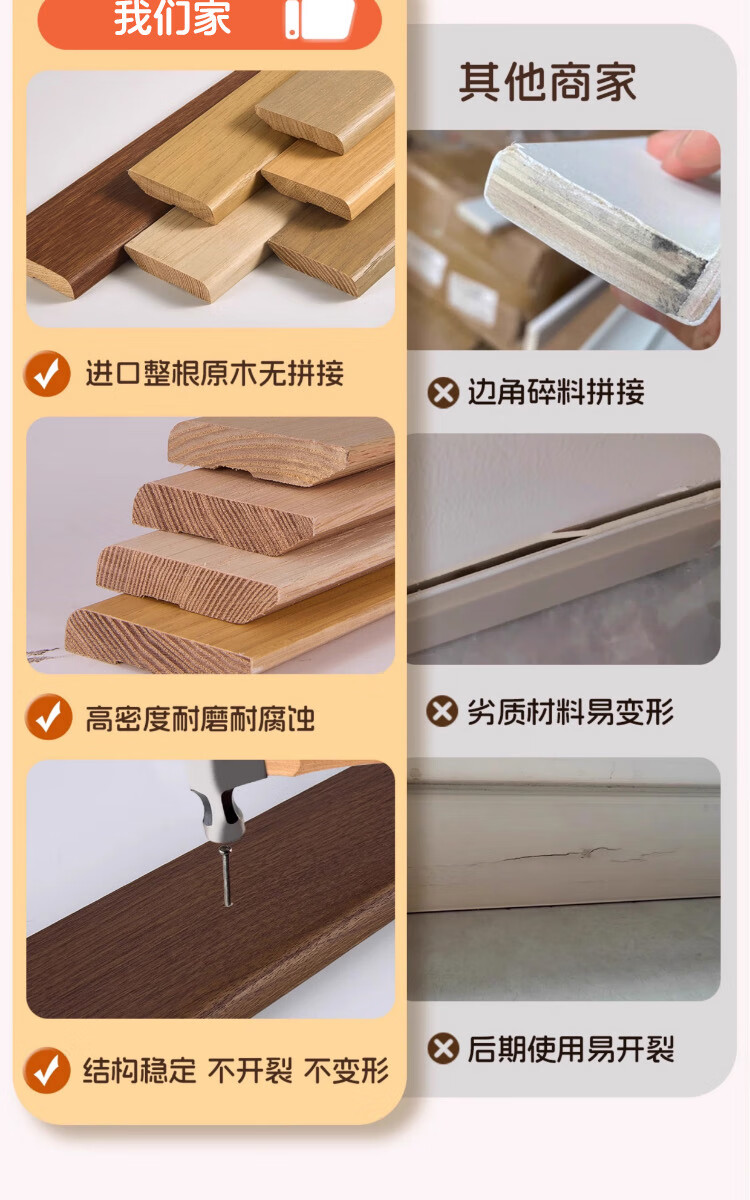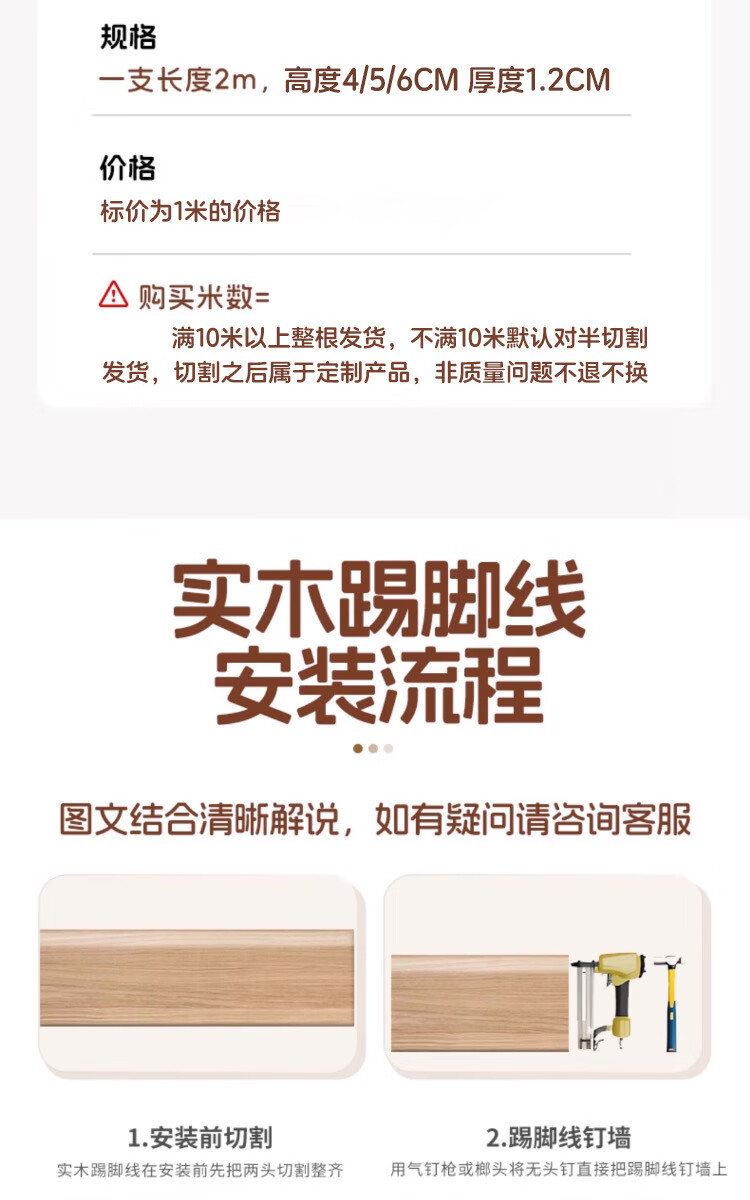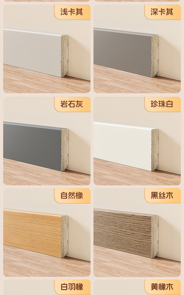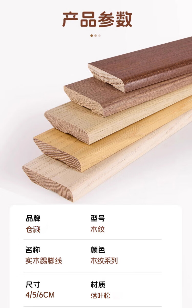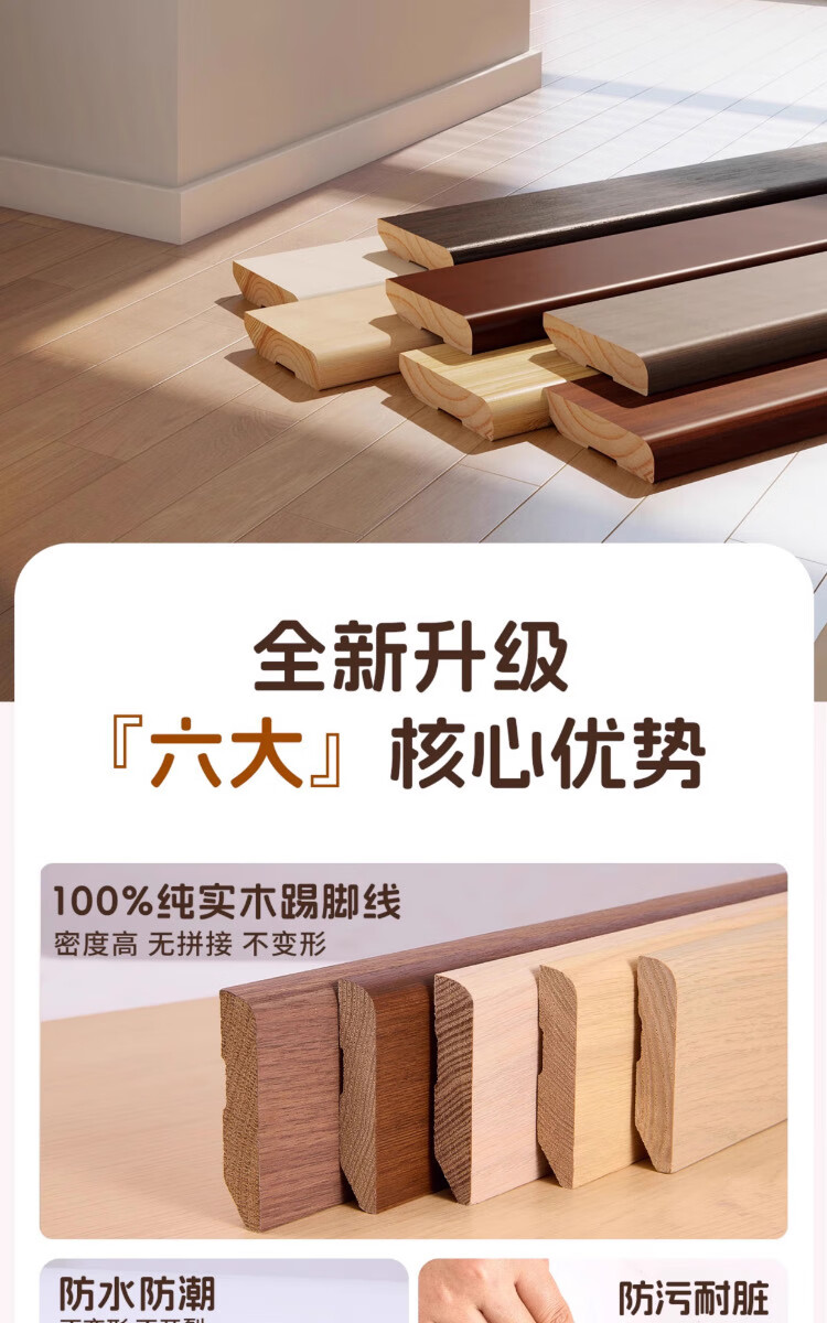仓藏纯实木踢脚线木质地脚线木纹白色黑色菱花白奶油风免漆贴脚线 免费拿样【1-4个颜色 收货全返】