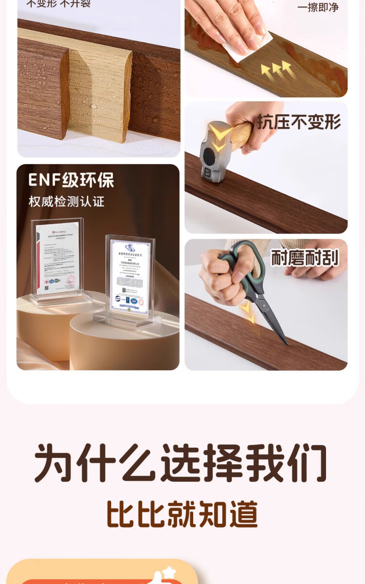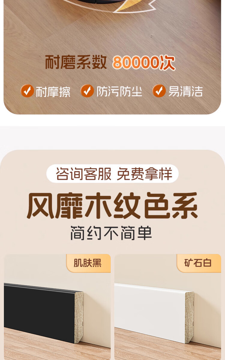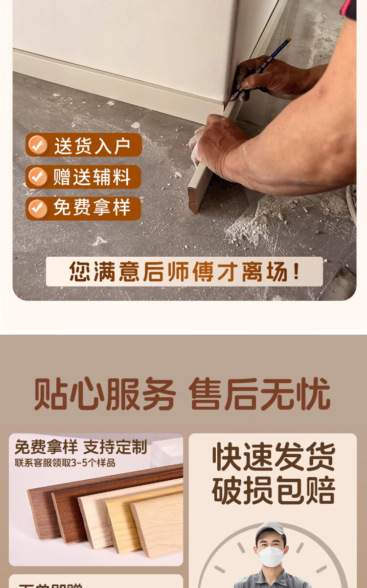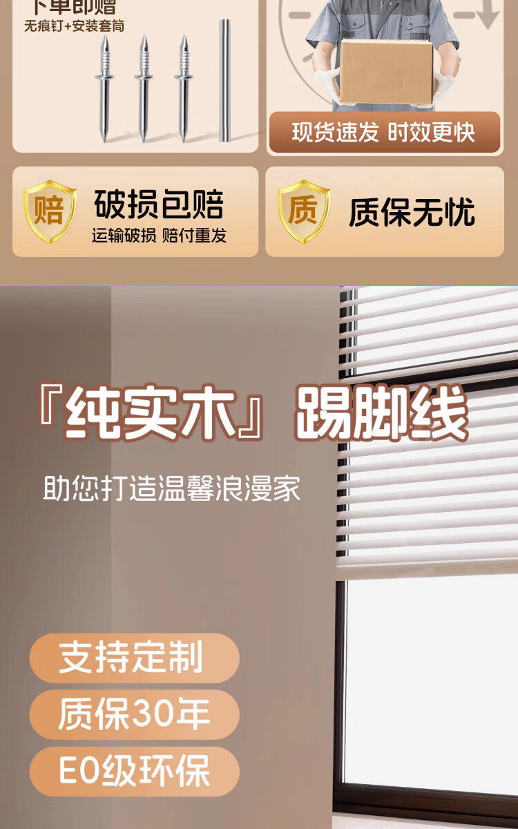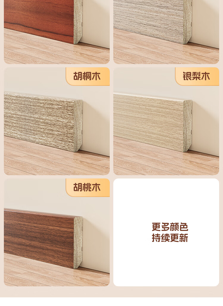 仓藏纯实木踢脚线木质地脚线木纹白色黑色菱花白奶油风免漆贴脚线 免费拿样【1-4个颜色 收货全返】