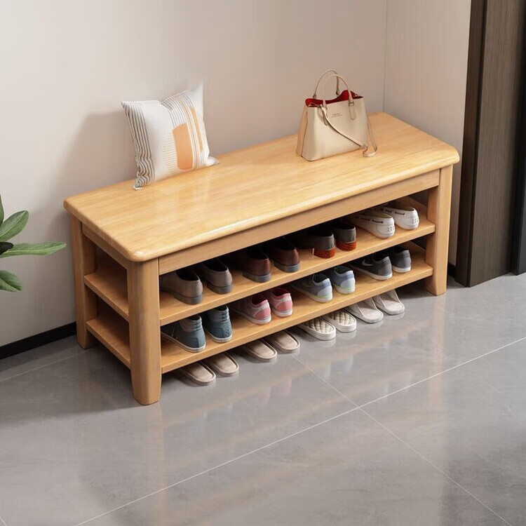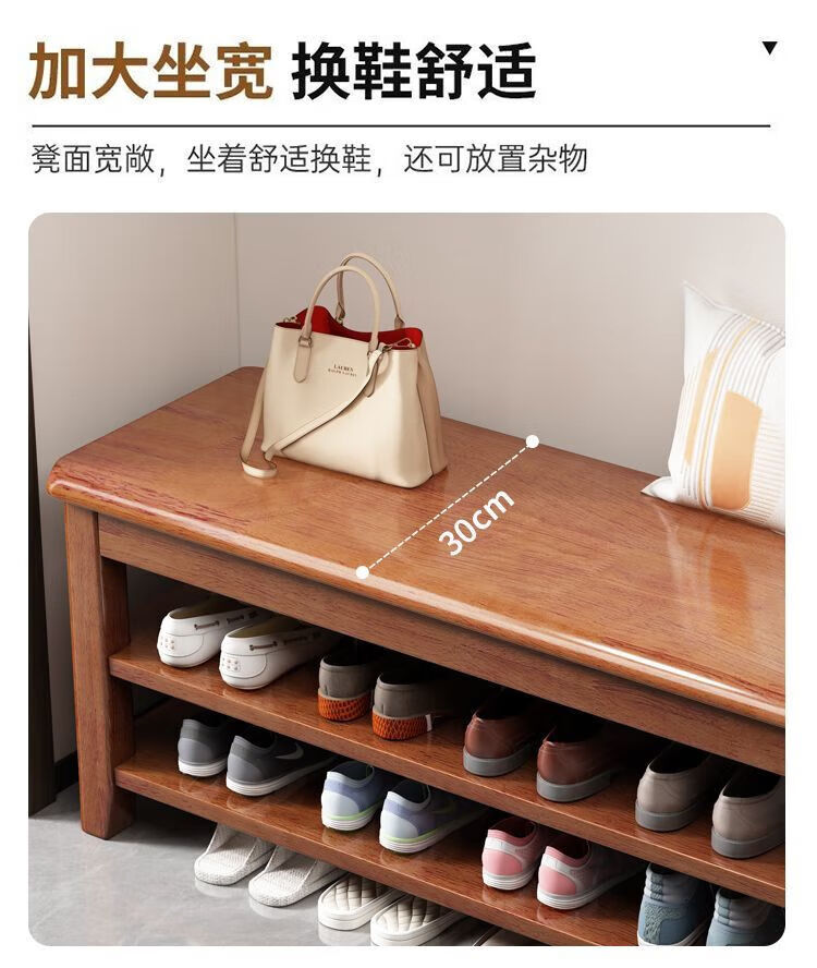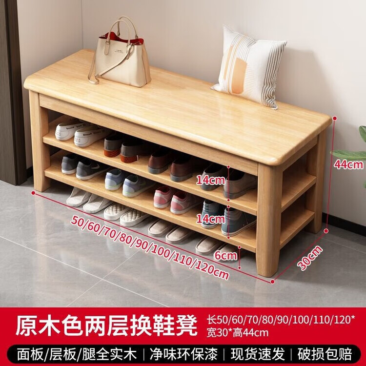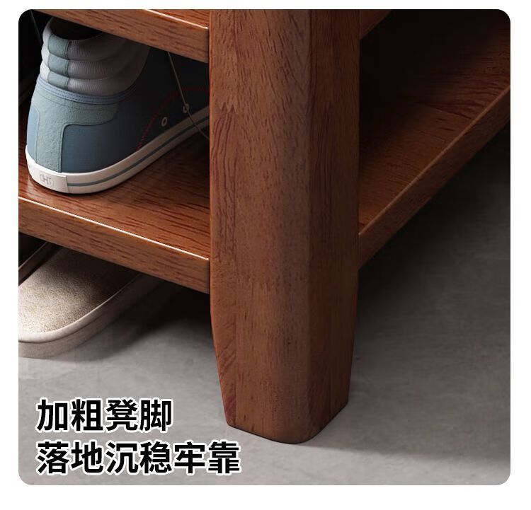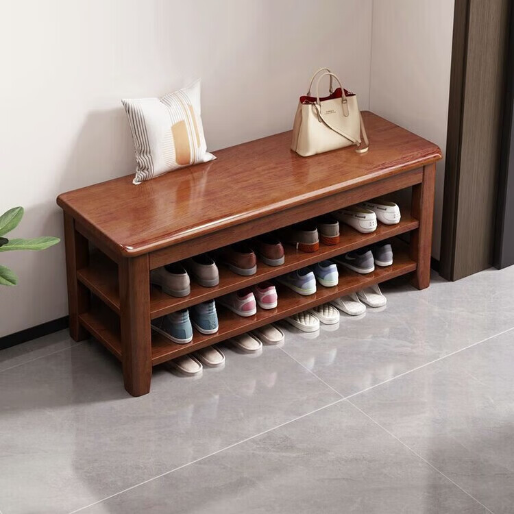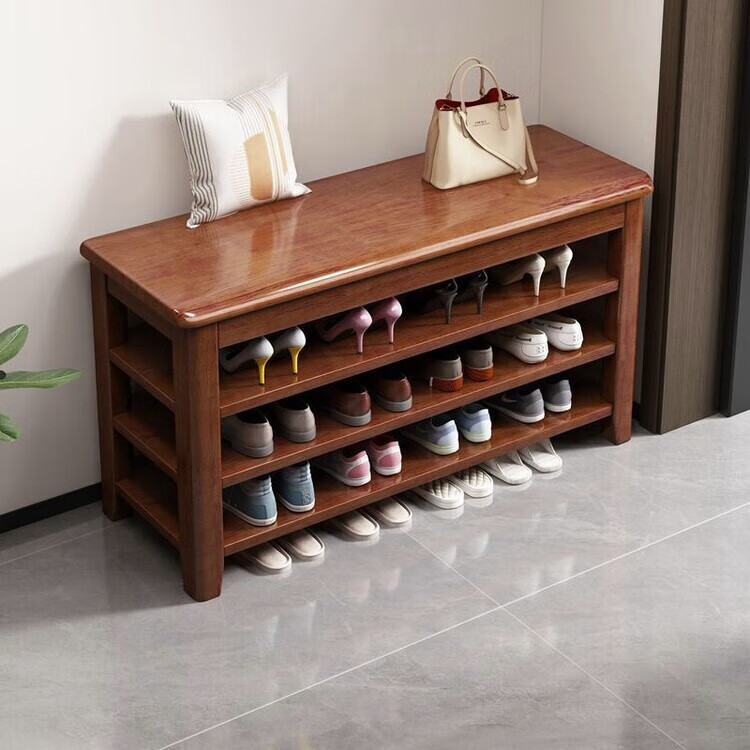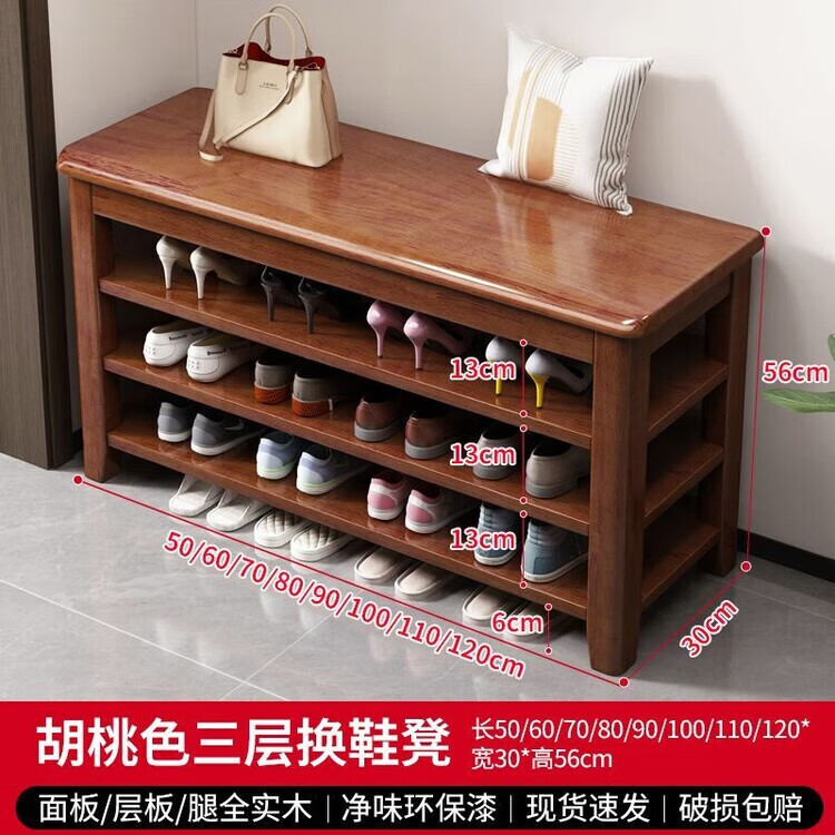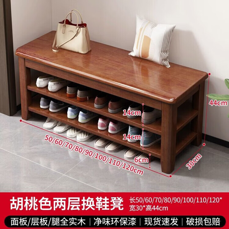 倘然之家全实木换鞋凳鞋柜门口家用入门坐凳一体多层网红多功能落地鞋架子 胡桃色【二层】不满意包退 【加厚全实木】50cm长