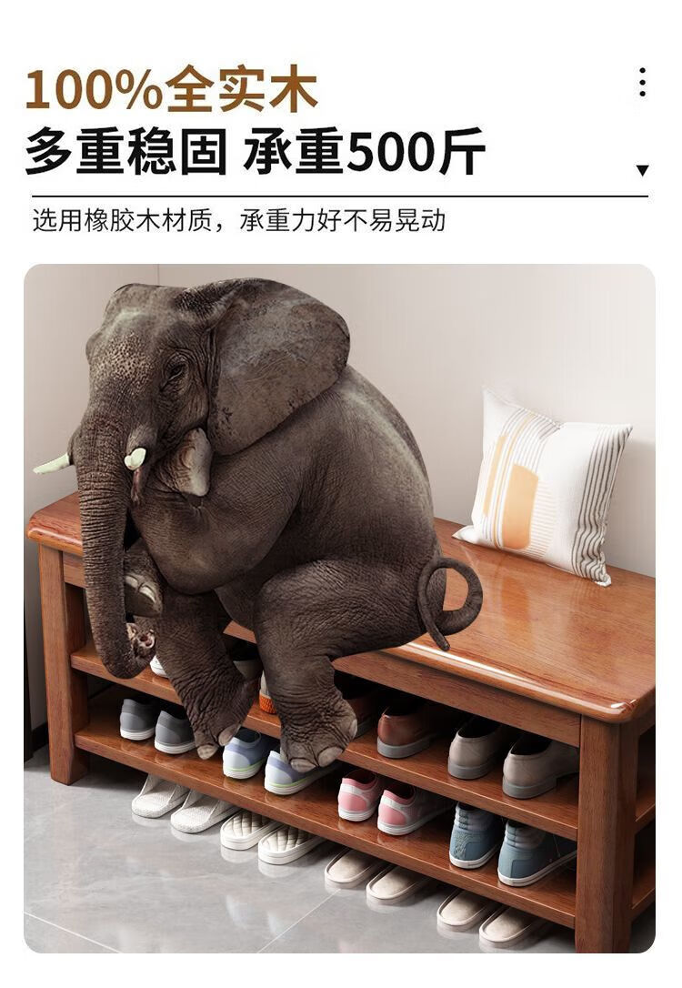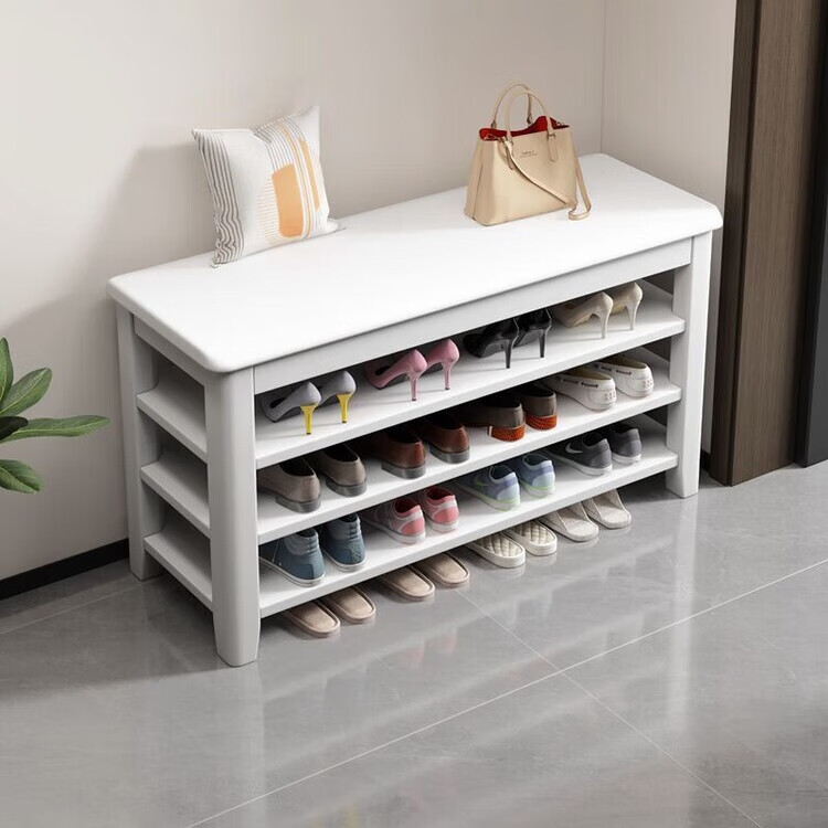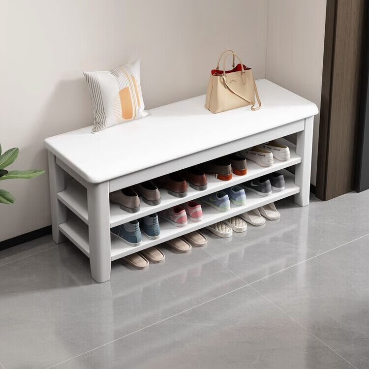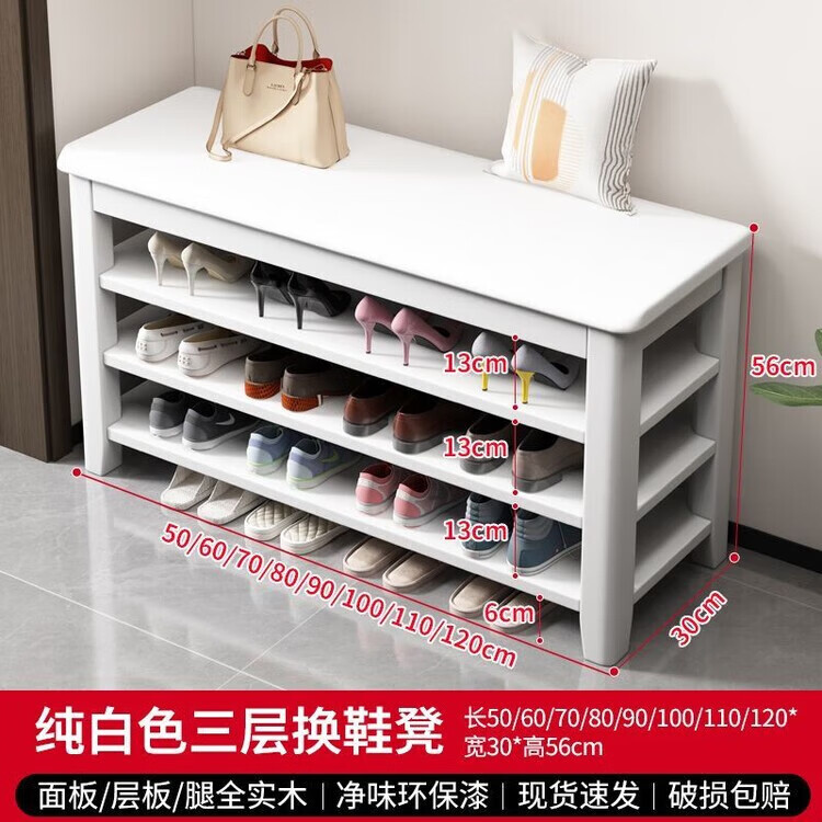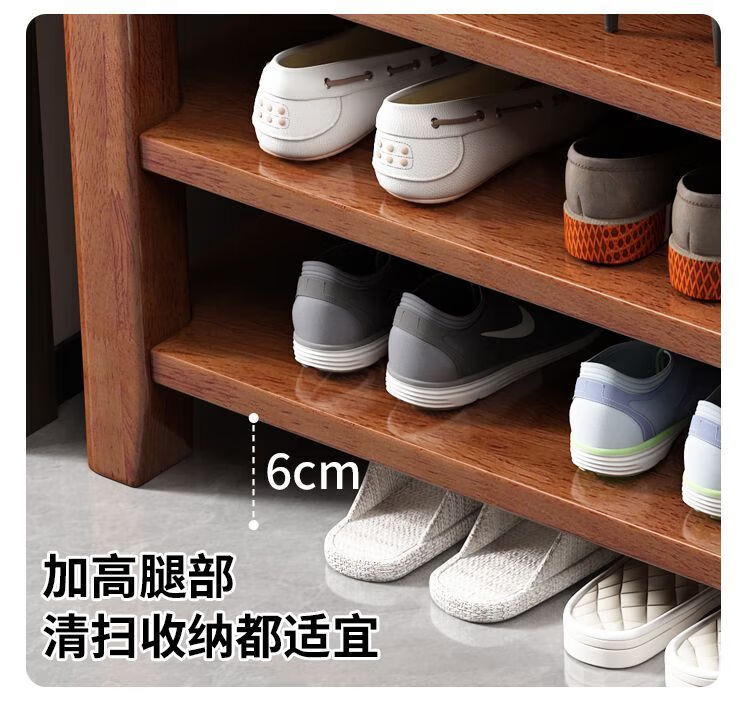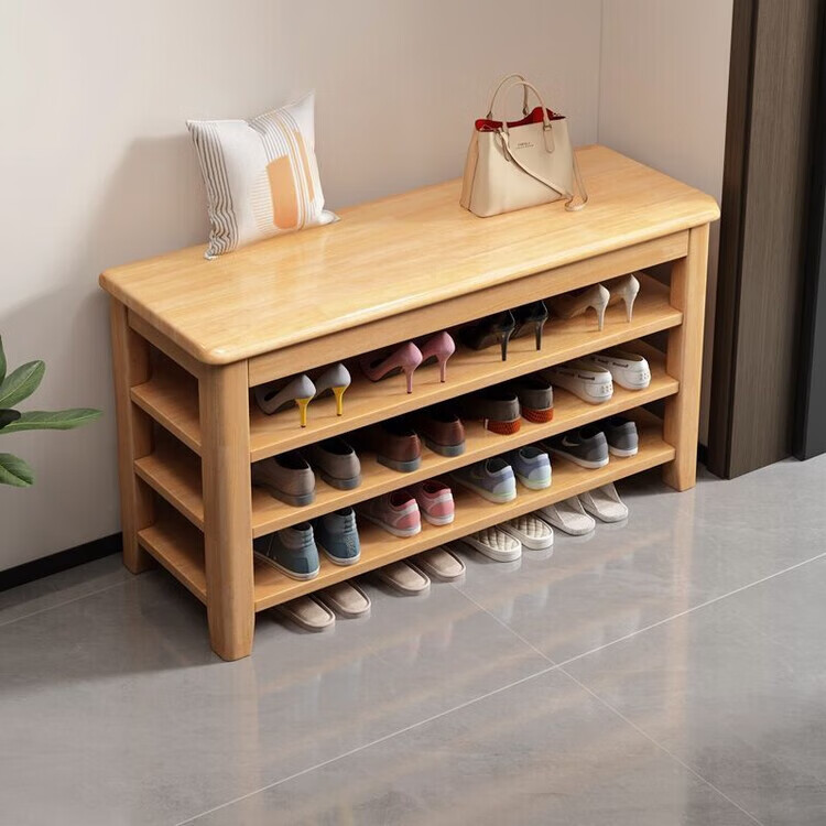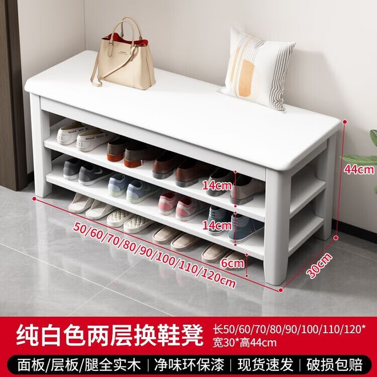 倘然之家全实木换鞋凳鞋柜门口家用入门坐凳一体多层网红多功能落地鞋架子 胡桃色【二层】不满意包退 【加厚全实木】50cm长
