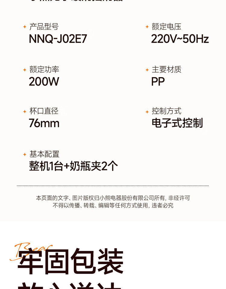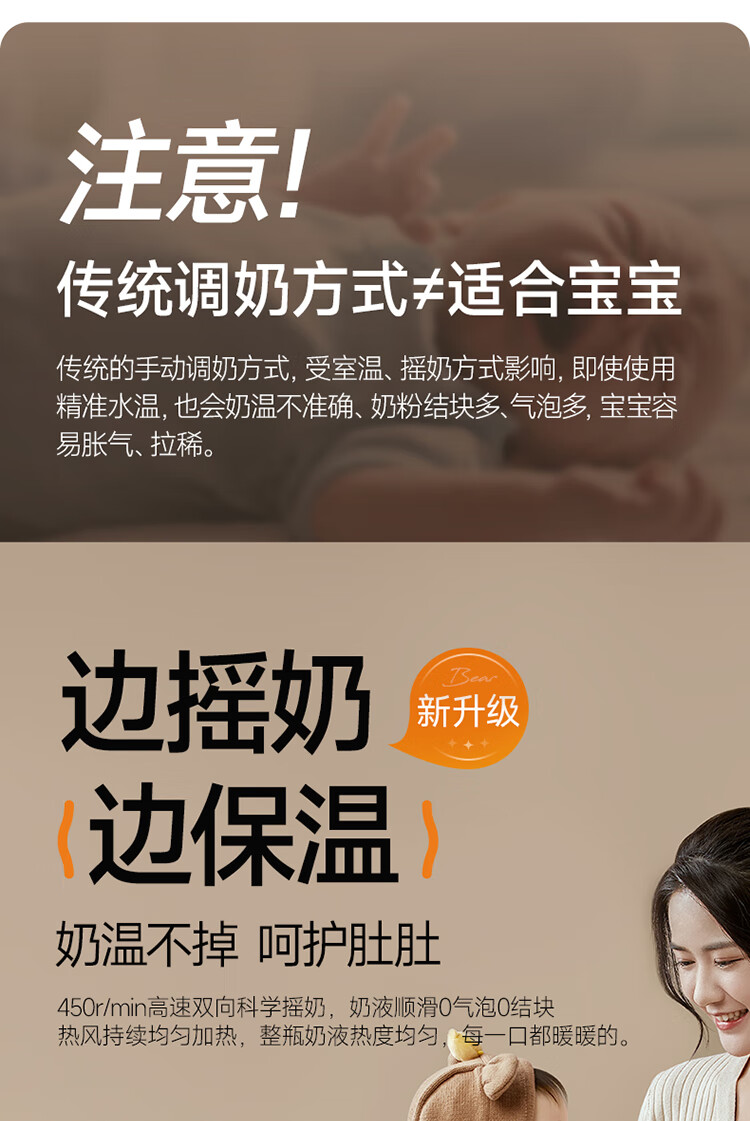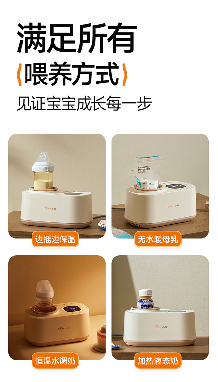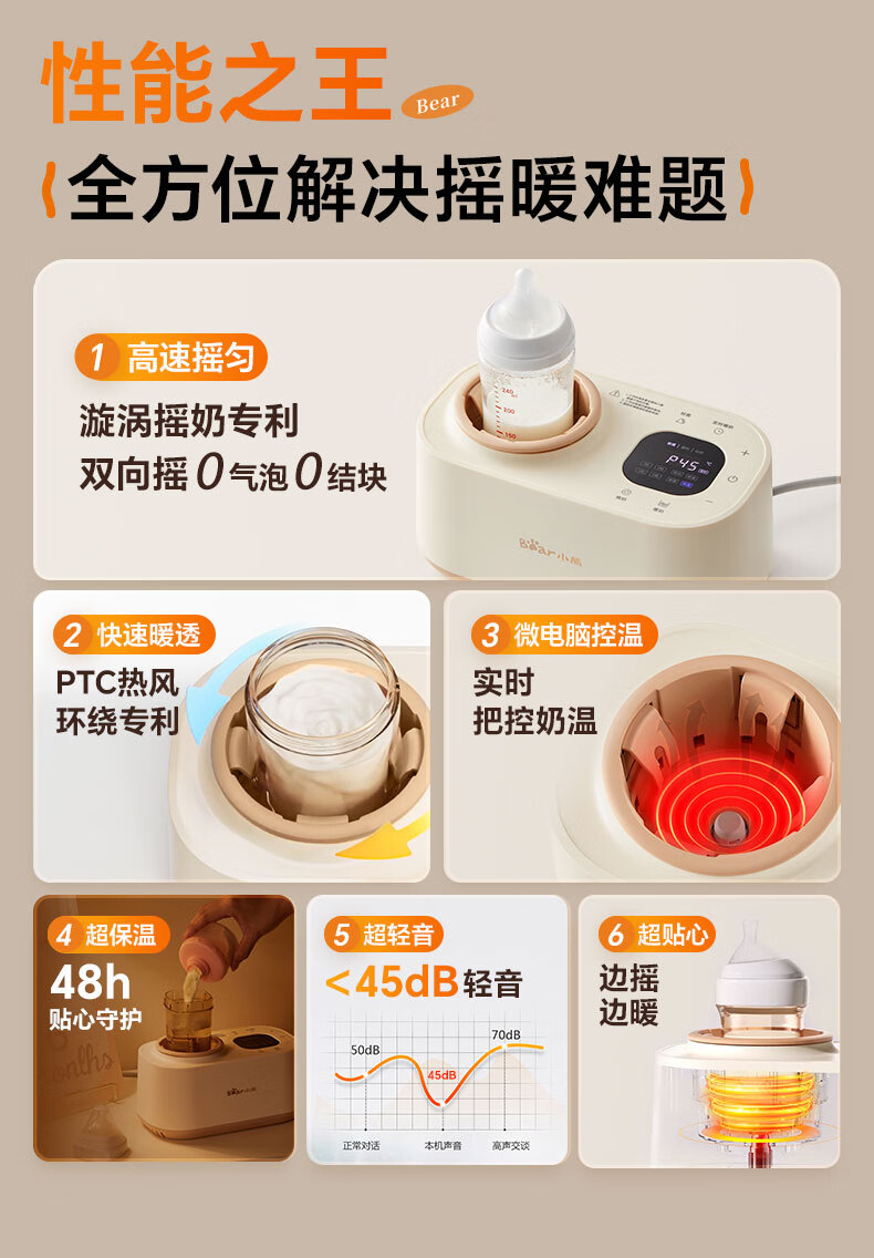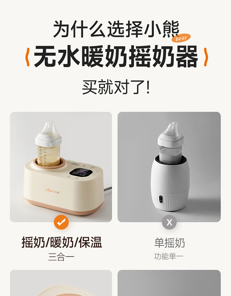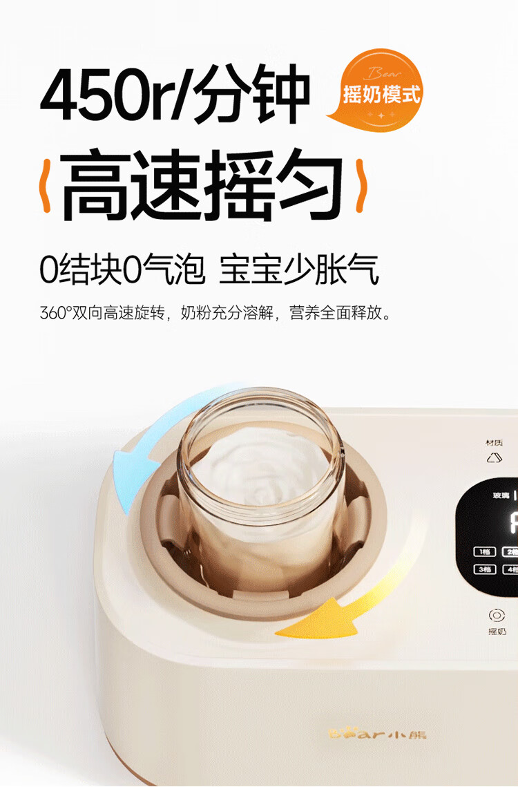 小熊(Bear)摇奶器 温奶器 暖奶一体 婴儿自动无水热奶/保温/解冻四合一