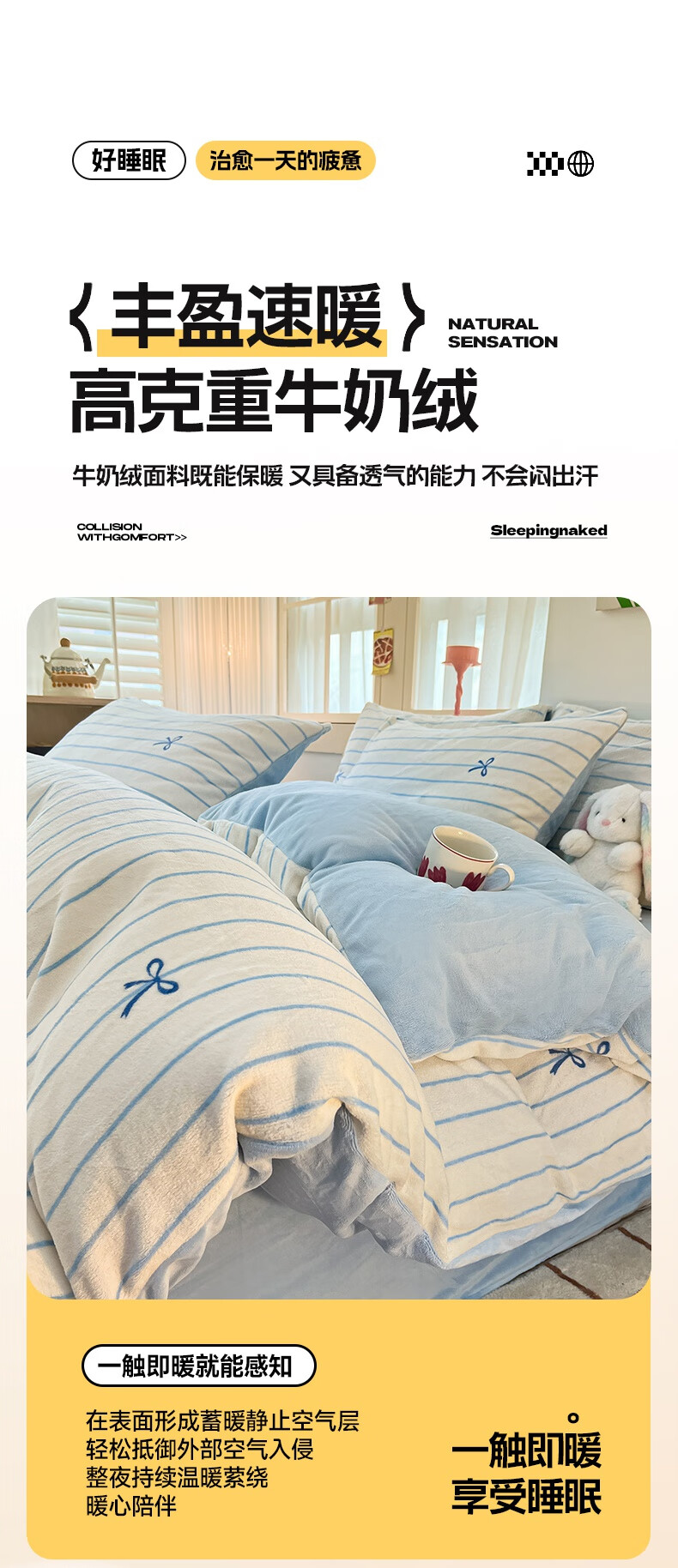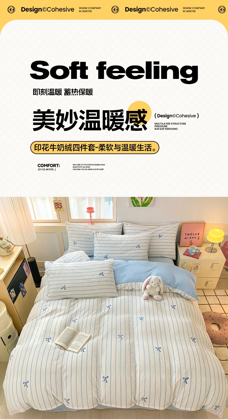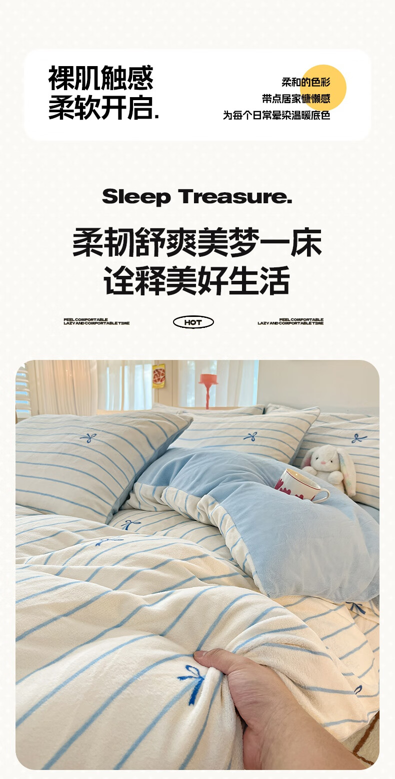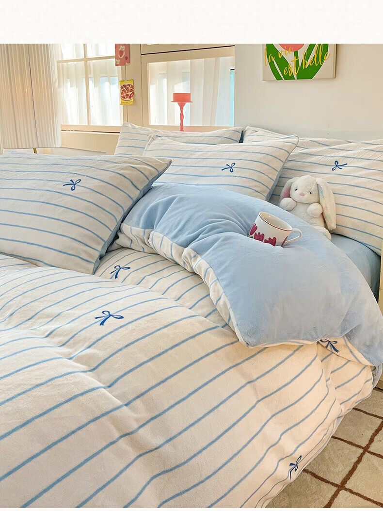 猫人(MiiOW)冬季加厚牛奶绒床上四件套2025新款加绒珊瑚绒床单被套床品三件套 浅灰蝴蝶结【双面加厚牛奶绒 加倍保暖】 床笠款 1.5m床四件套-适合200x230cm被芯