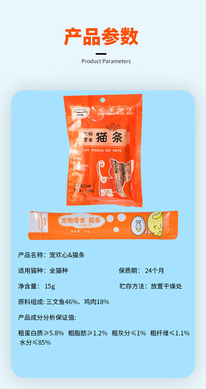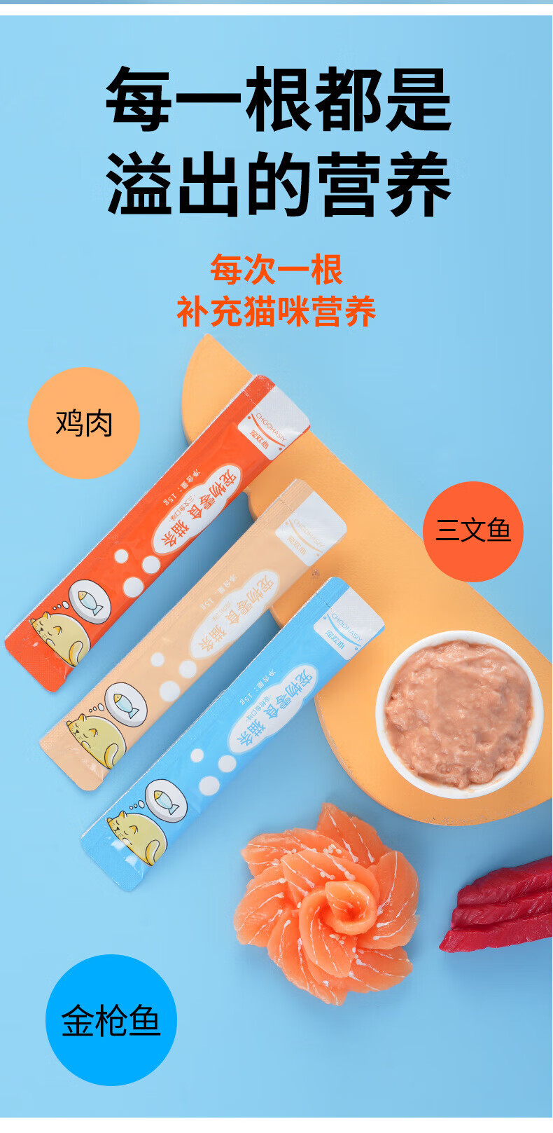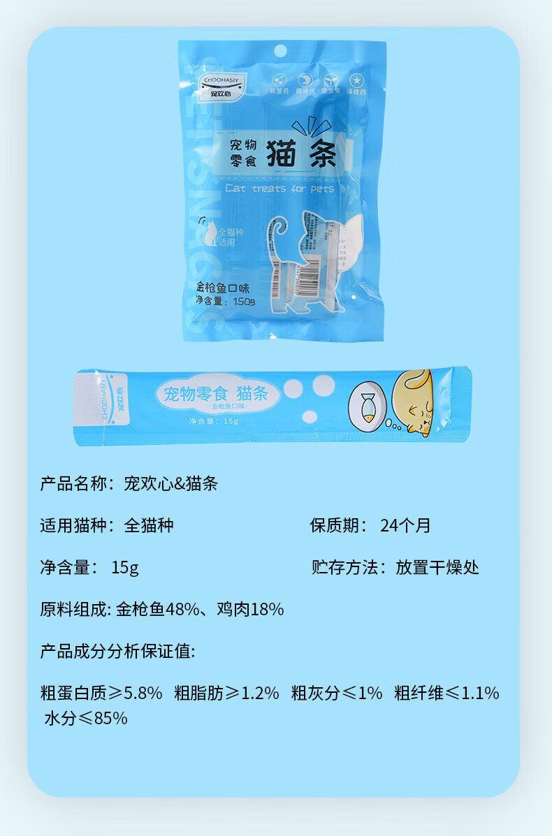 宠欢心(CHOOHASIY)猫条宠物零食15g/条 流质湿粮金枪鱼罐头增肥发腮 猫零食厂家批发 鸡肉味15克/支
