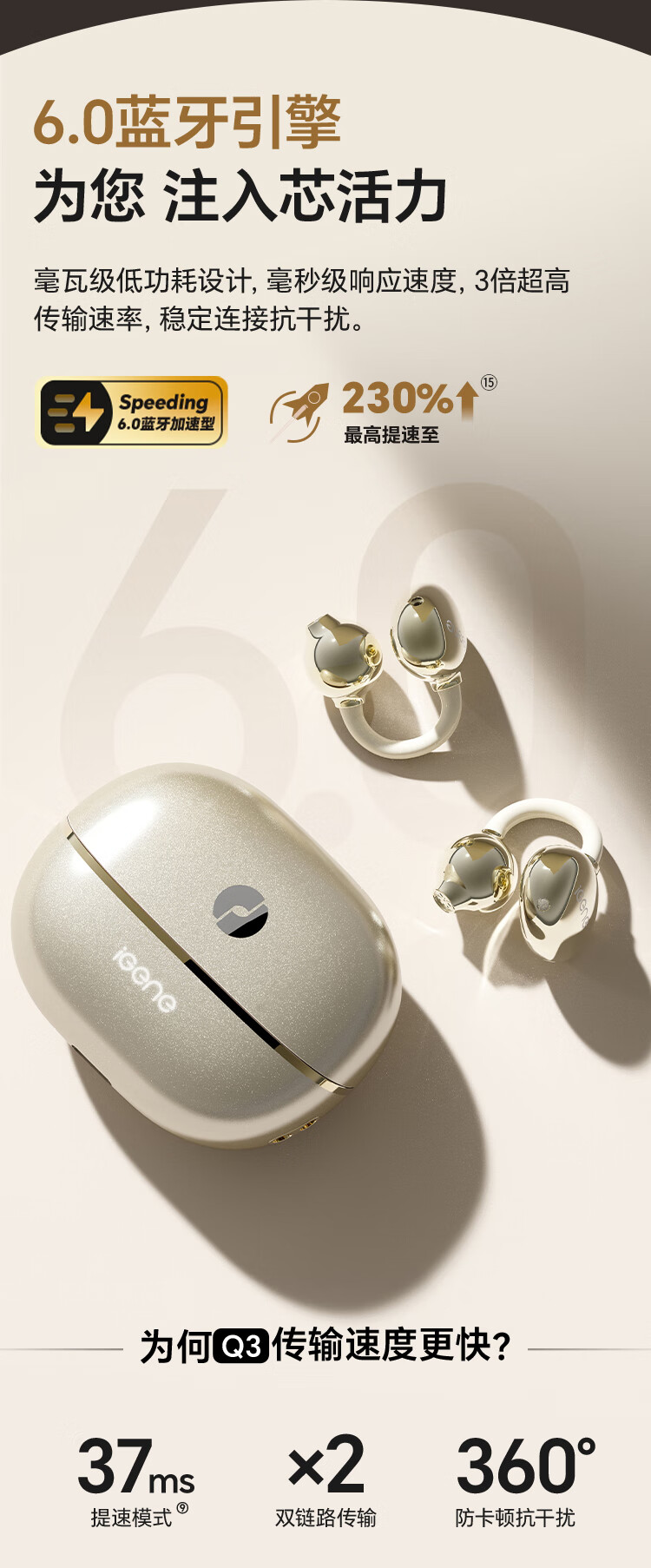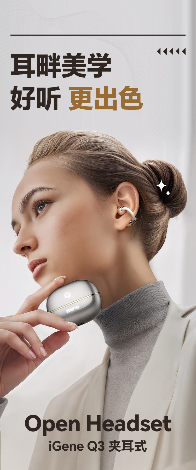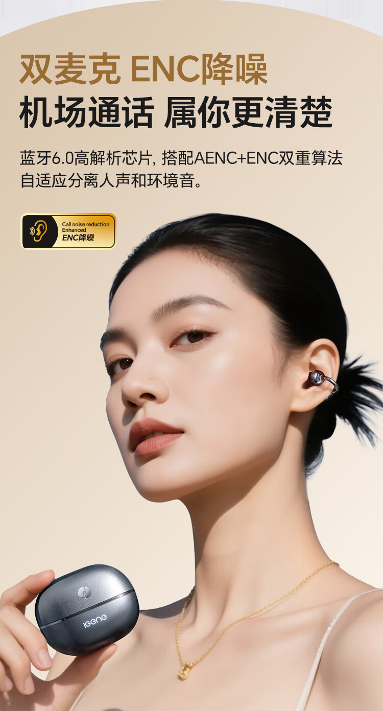 击音【颜值榜NO.1+超长续航】6.0蓝牙耳机耳夹式无线降噪不入耳骨传导概念适用华为oppo小米vivo苹果Q3