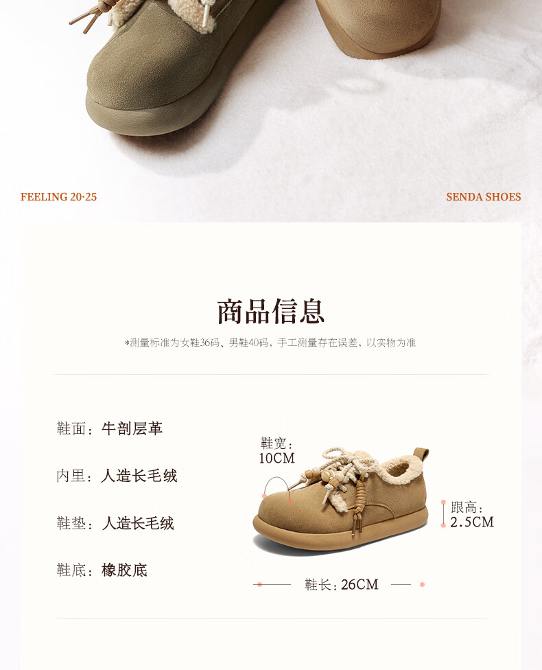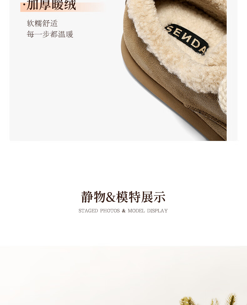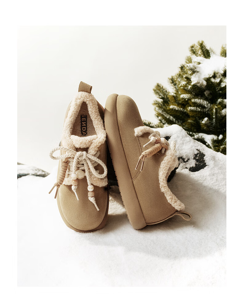 森达毛毛鞋女2025冬季新款舒适毛绒户外休闲鞋ZTI60DM5年新年礼物 棕色 37