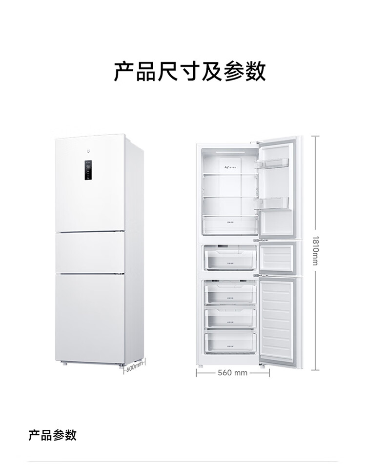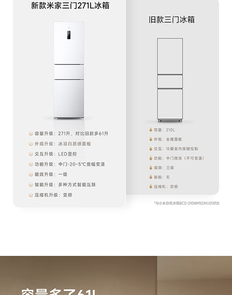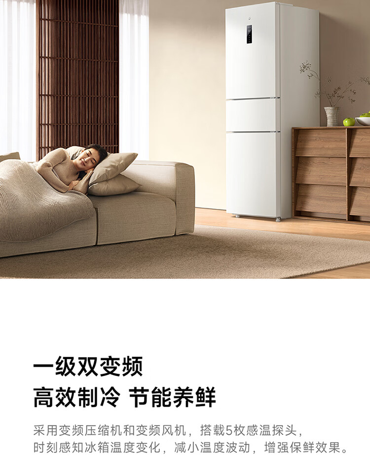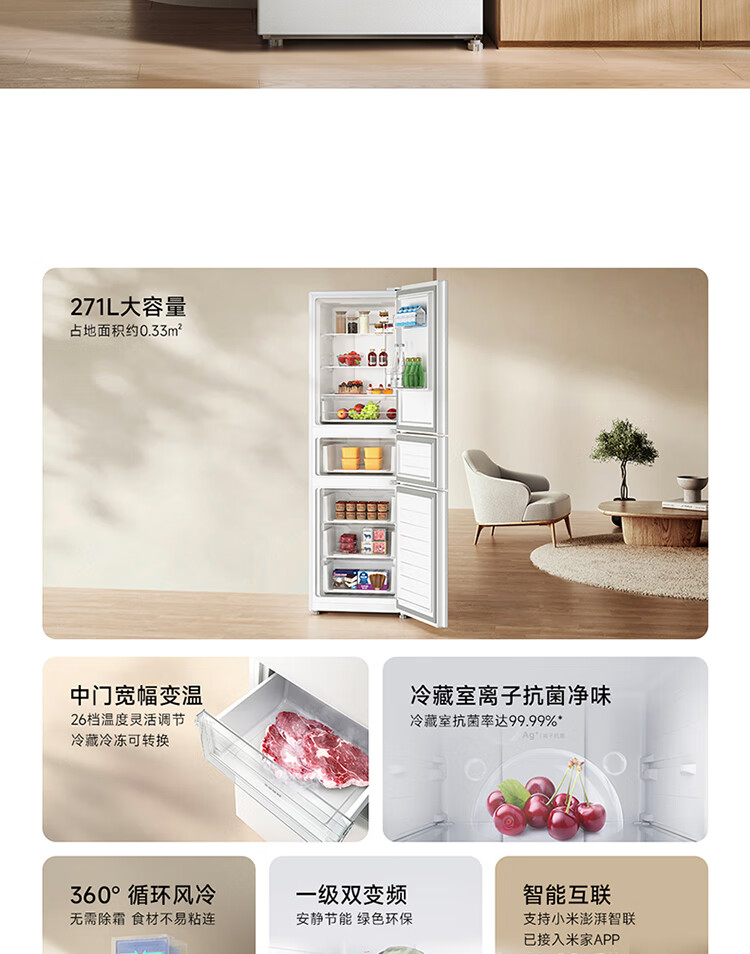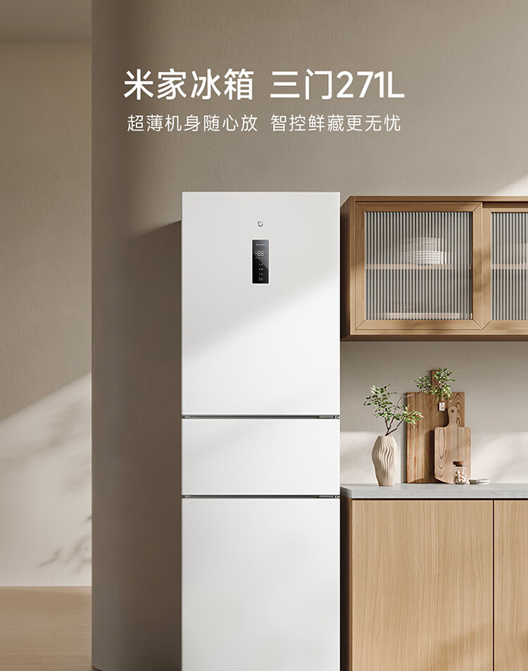 米家小米冰箱新品271L三门小型家用电冰箱风冷无霜双变频中门宽幅变温除菌净味一级能效BCD-271WTMP