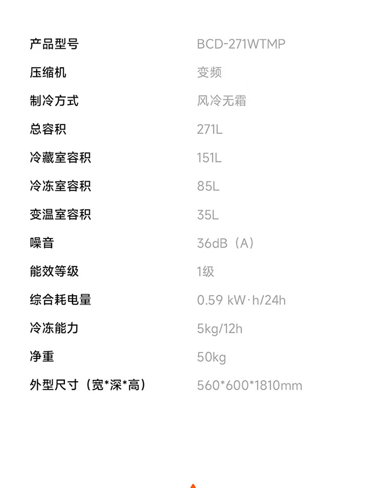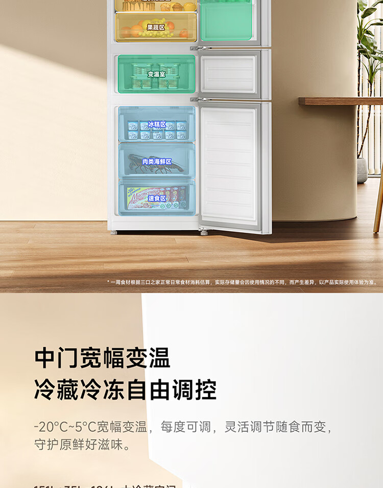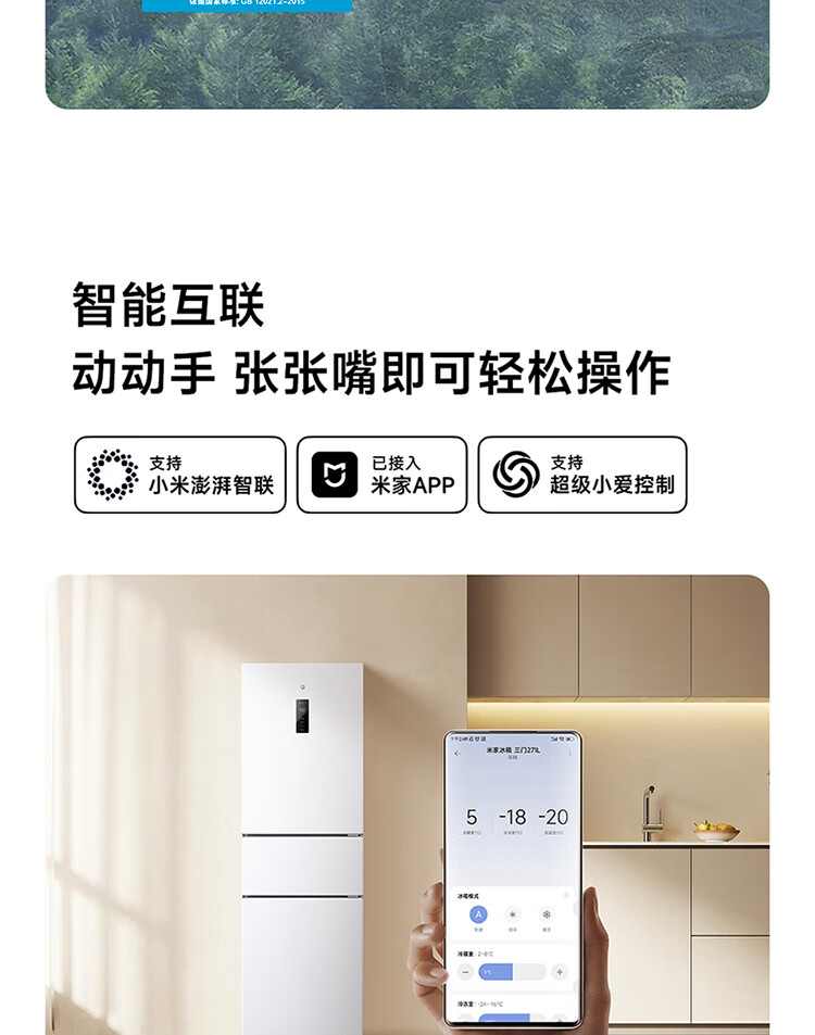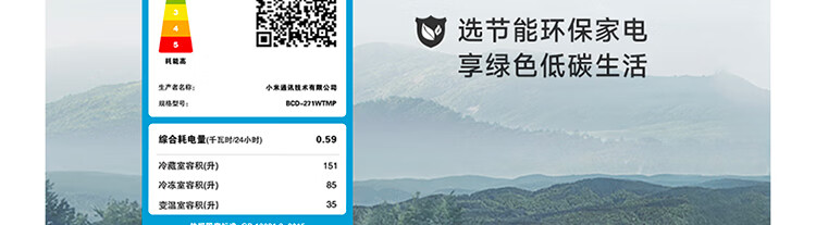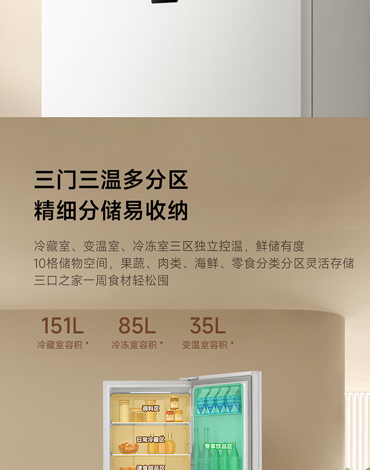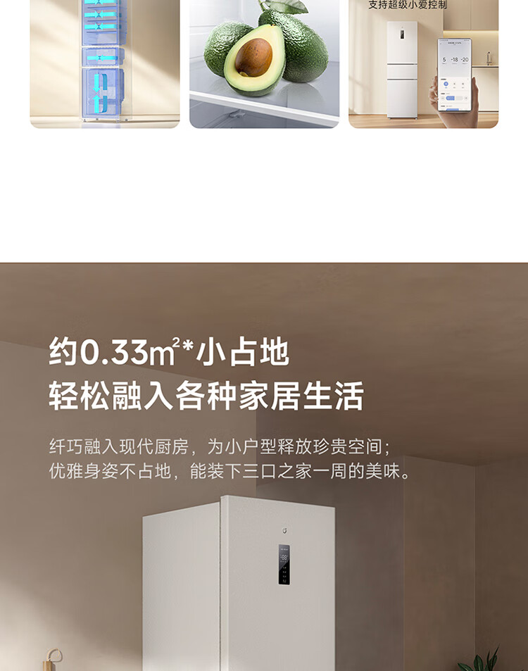 米家小米冰箱新品271L三门小型家用电冰箱风冷无霜双变频中门宽幅变温除菌净味一级能效BCD-271WTMP