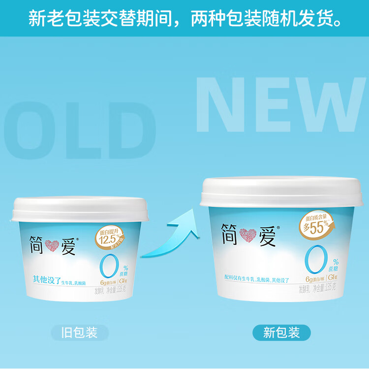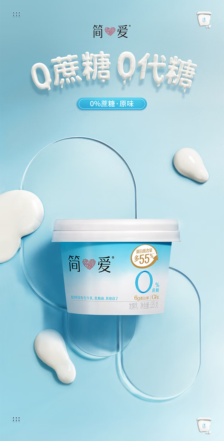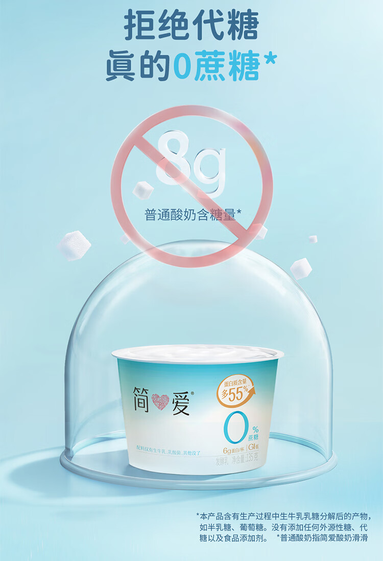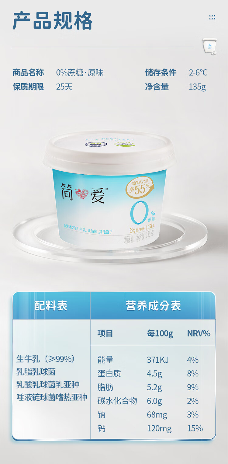 简爱 酸奶 0蔗糖 0代糖 天然乳蛋白健康儿童健身轻食低温酸奶 0%蔗糖原味135g*9杯